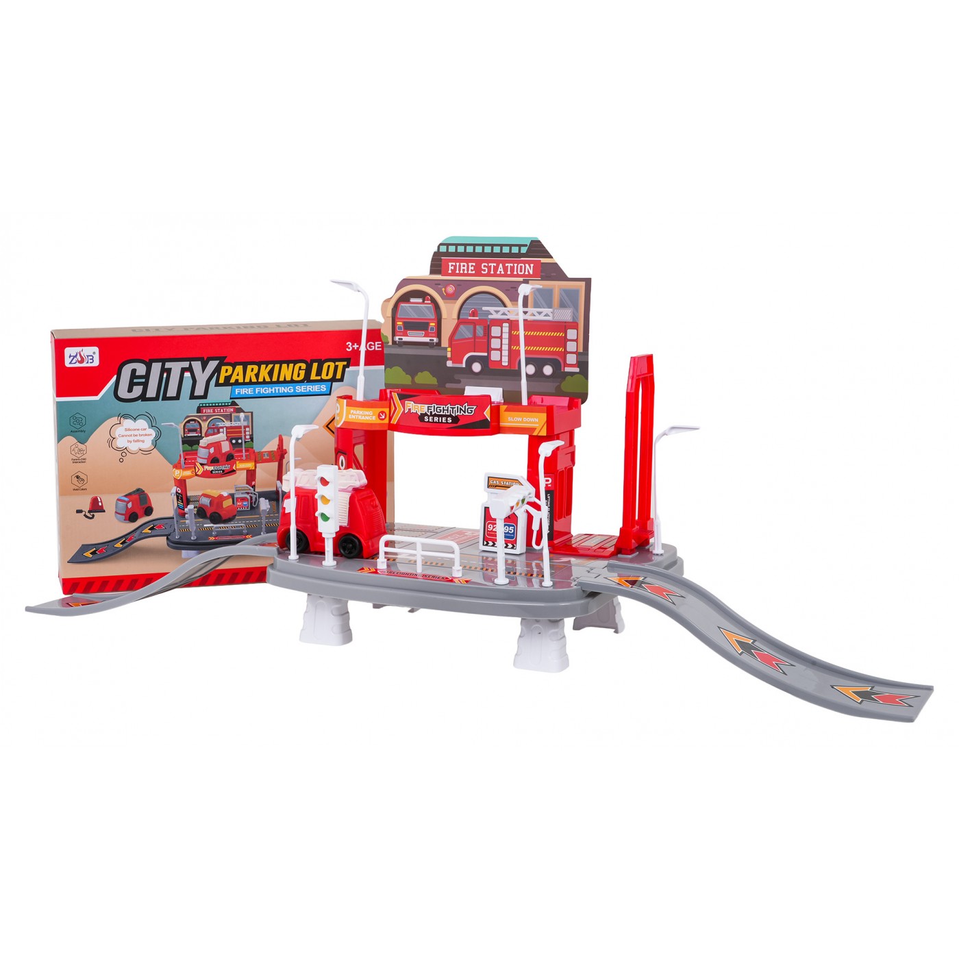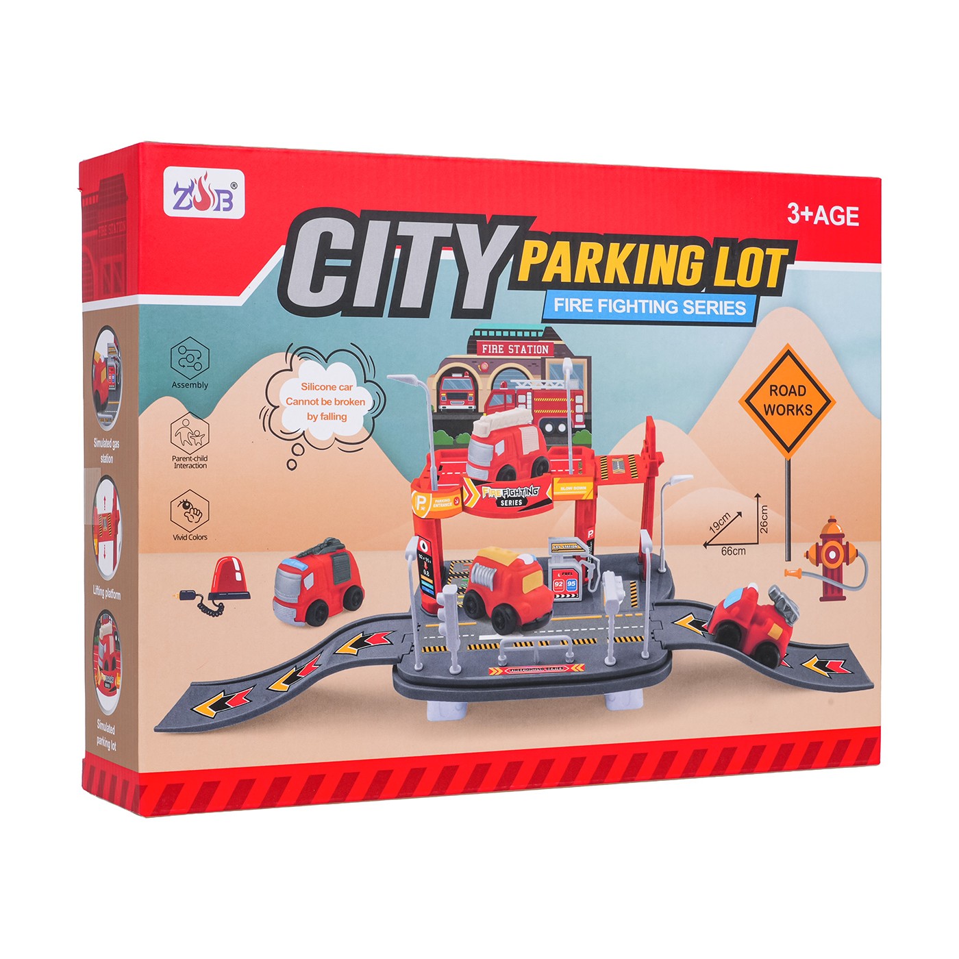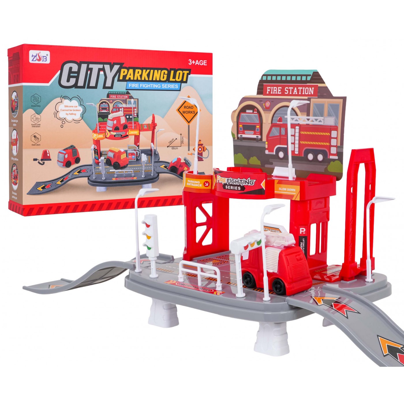 Súprava Parkovisko pre hasičov s hasičským autom je ideálna pre deti od troch rokov. Súprava sa skladá z 25 dielikov vyrobených z najkvalitnejších materiálov v žiarivých farbách. Auto je vyrobené zo silikónu. Parkovisko má dve poschodia, pričom na prvom poschodí sa nachádza parkovacia garáž, do ktorej sa dá dostať manuálne výťahom na prízemie. Na prízemí sa nachádza čerpacia stanica, cesta so značením a vjazd a výjazd v tvare šmykľavky. Táto súprava je ideálna pre mladých nadšencov hasičského zboru.