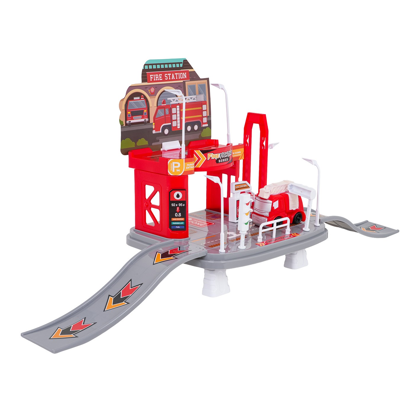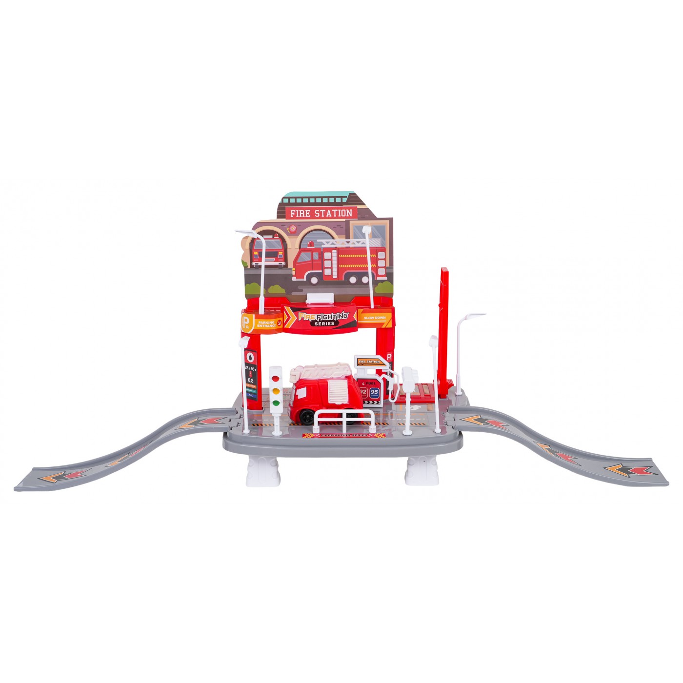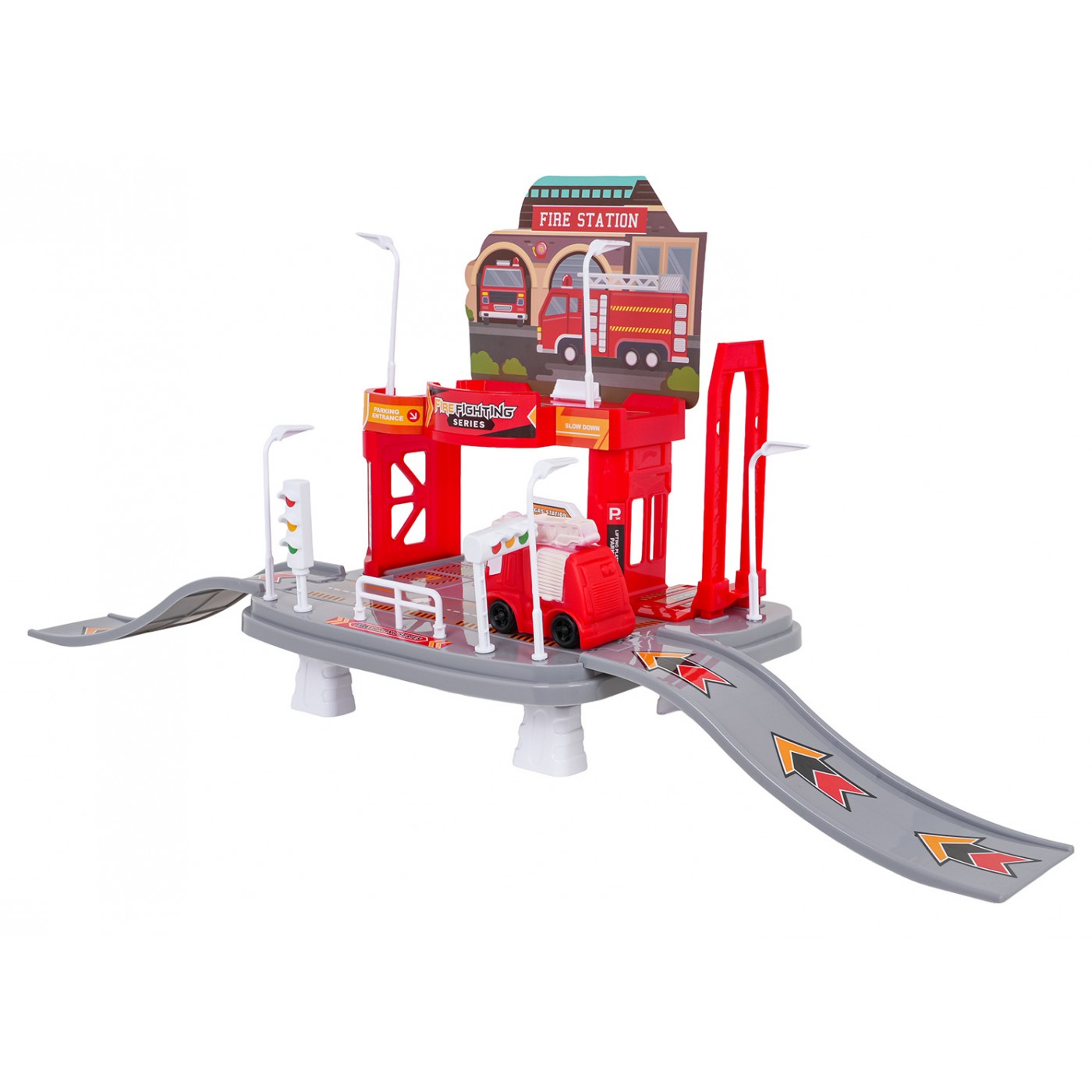 Súprava Parkovisko pre hasičov s hasičským autom je ideálna pre deti od troch rokov. Súprava sa skladá z 25 dielikov vyrobených z najkvalitnejších materiálov v žiarivých farbách. Auto je vyrobené zo silikónu. Parkovisko má dve poschodia, pričom na prvom poschodí sa nachádza parkovacia garáž, do ktorej sa dá dostať manuálne výťahom na prízemie. Na prízemí sa nachádza čerpacia stanica, cesta so značením a vjazd a výjazd v tvare šmykľavky. Táto súprava je ideálna pre mladých nadšencov hasičského zboru.