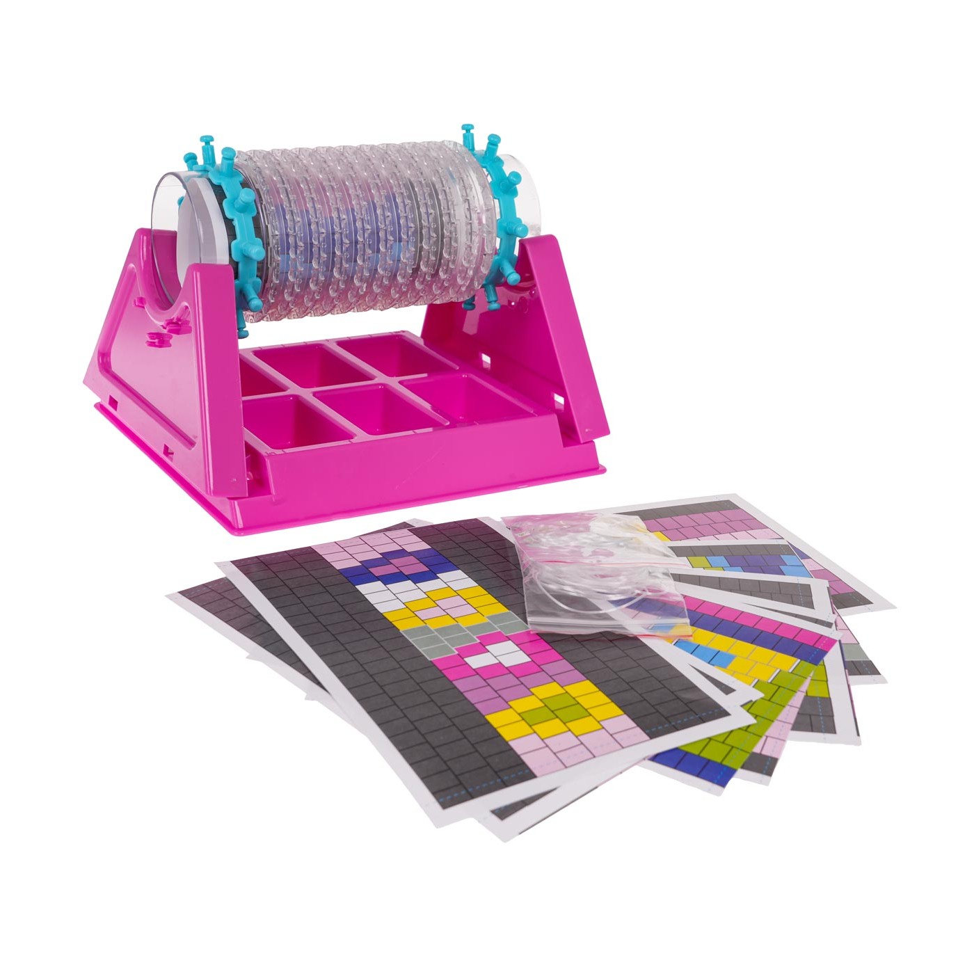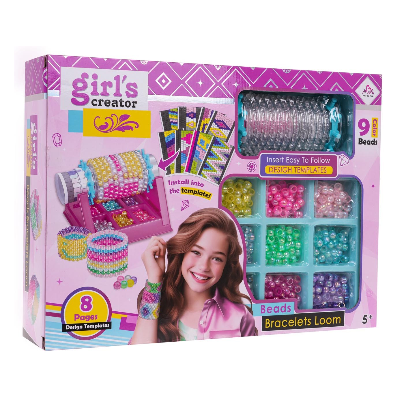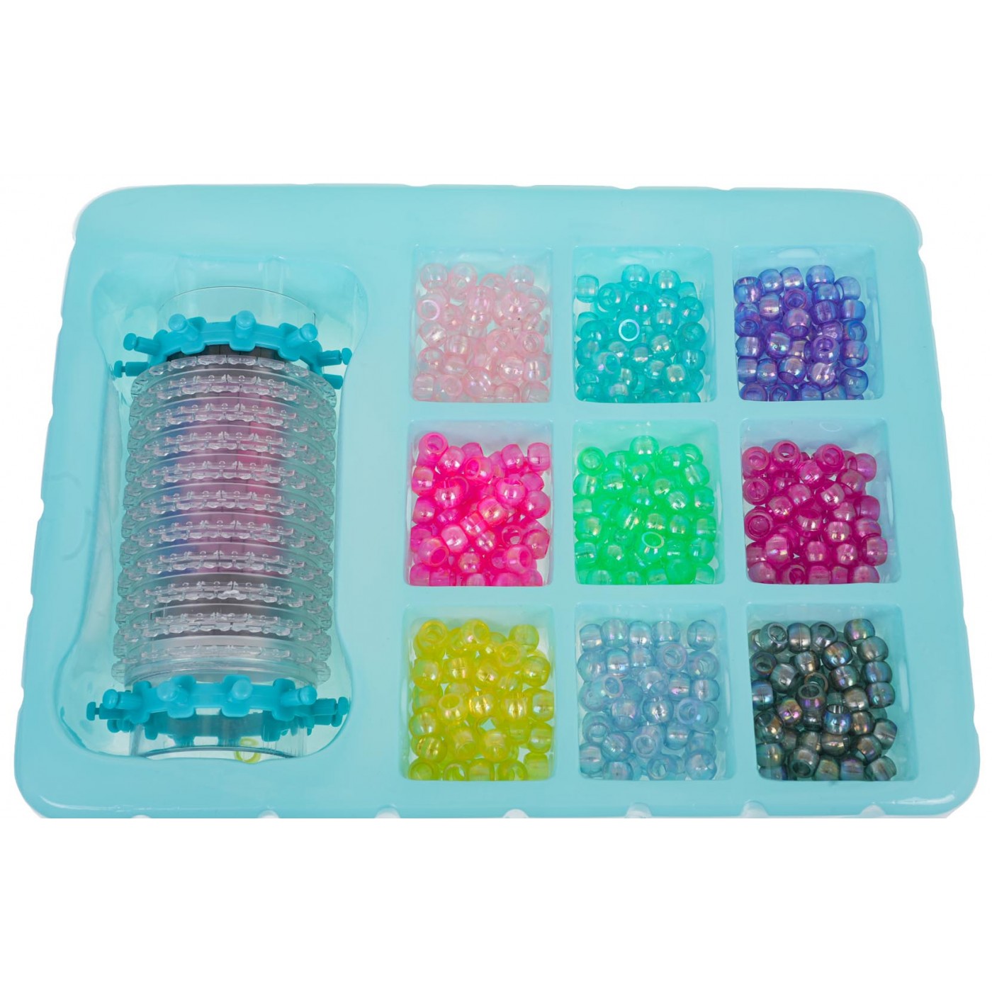 Sada na výrobu náramkov s tkáčskym stavom a doplnkami pre deti od 5 rokov. Sada obsahuje tkáčsky stav, 8 vzorov a 540 guličiek v 9 farbách. Použitie náramku je jednoduché, stačí pripevniť plastovú trubičku k stojanu. Pridajte korálky do základne, každá farba v samostatnom oddelení, aby to bolo jednoduchšie. Vzor, ktorý chceme vytvoriť si vyberieme zo šablóny alebo si vyrobíme náramok podľa vlastnej predstavy. Položíme korálky na rúrku a začneme tkať, začíname sprava a pohybujeme sa doľava. Niť navliekame striedavo hore a dole. Opakujeme kroky na všetkých radoch korálkov. Po dokončení tkania jemne vyberte náramok z tuby. Sada rozvíja manuálne zručnosti a kreativitu.