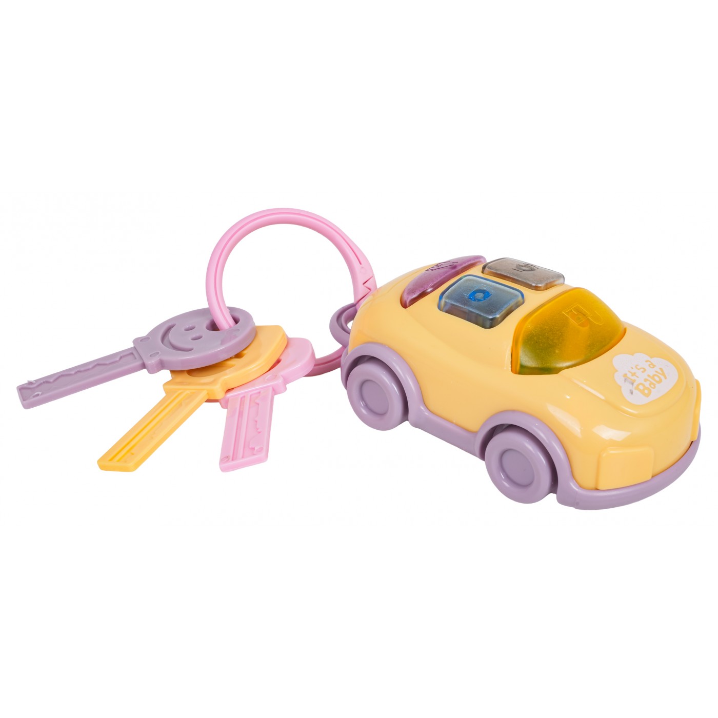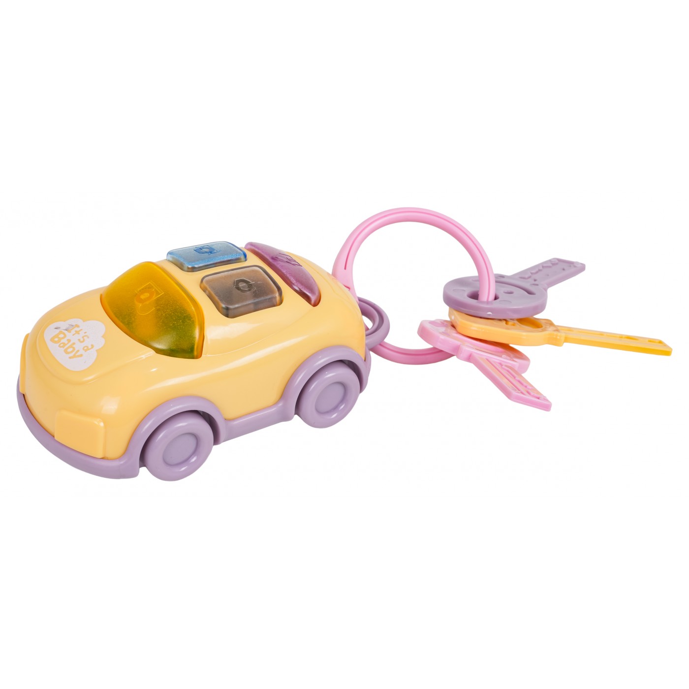 Interaktívna sada kľúčenky a kľúčov v tvare vozidla pre deti od osemnástich mesiacov. Hračka je vyrobená z materiálov bezpečných pre bábätká a nemá ostré hrany. Tlačidlá na streche auta aktivujú zvukové efekty: zvonček, zvuk štartovania, zvuk odomykania auta a klaksón. Svetlá tiež blikajú. Hračka je napájaná 2 x 1,5 V AAA batériami (nie sú súčasťou balenia). Vlastnosti: - sada vhodná pre deti od osemnástich mesiacov, - vyrobené z bezpečných materiálov, - zvukové efekty: zvuk zvončeka, zvuk štartovania vozidla, zvuk otvárania auta a pípanie, - blikajúce svetlá na streche vozidla. |