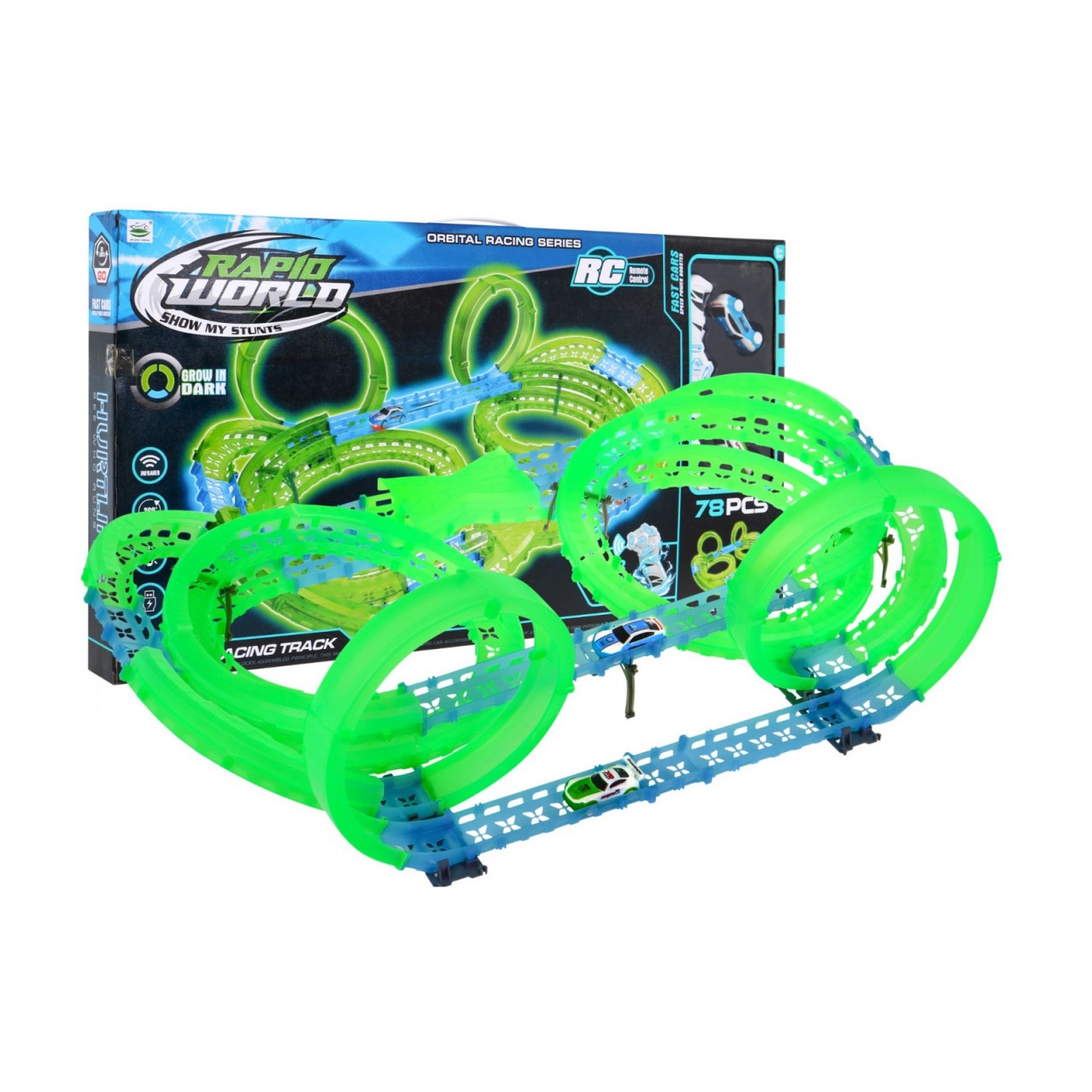 Svietiaci v tme závodný okruh pre deti 3+ Slučky 360 + 2 autíčka LED + 2 ovládače