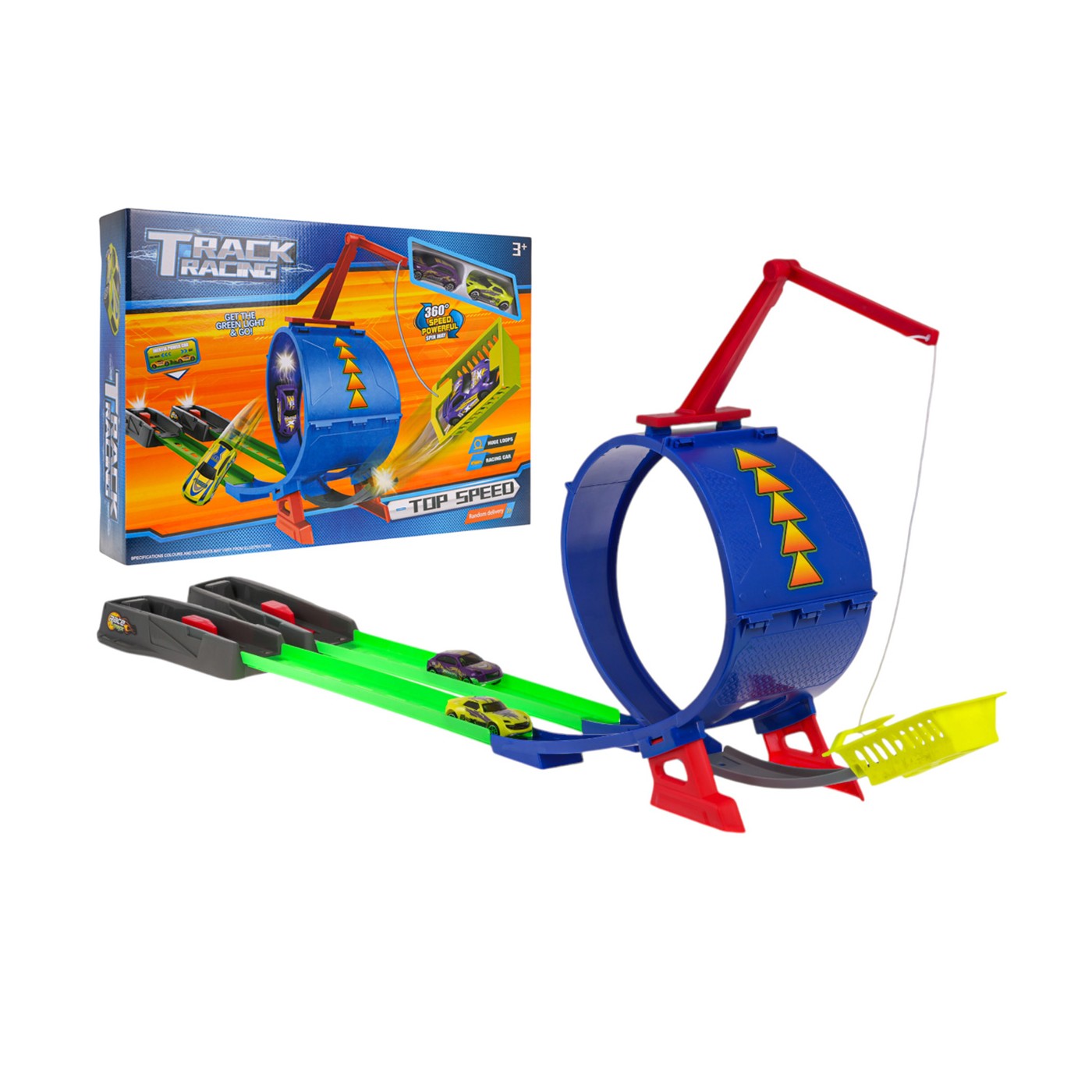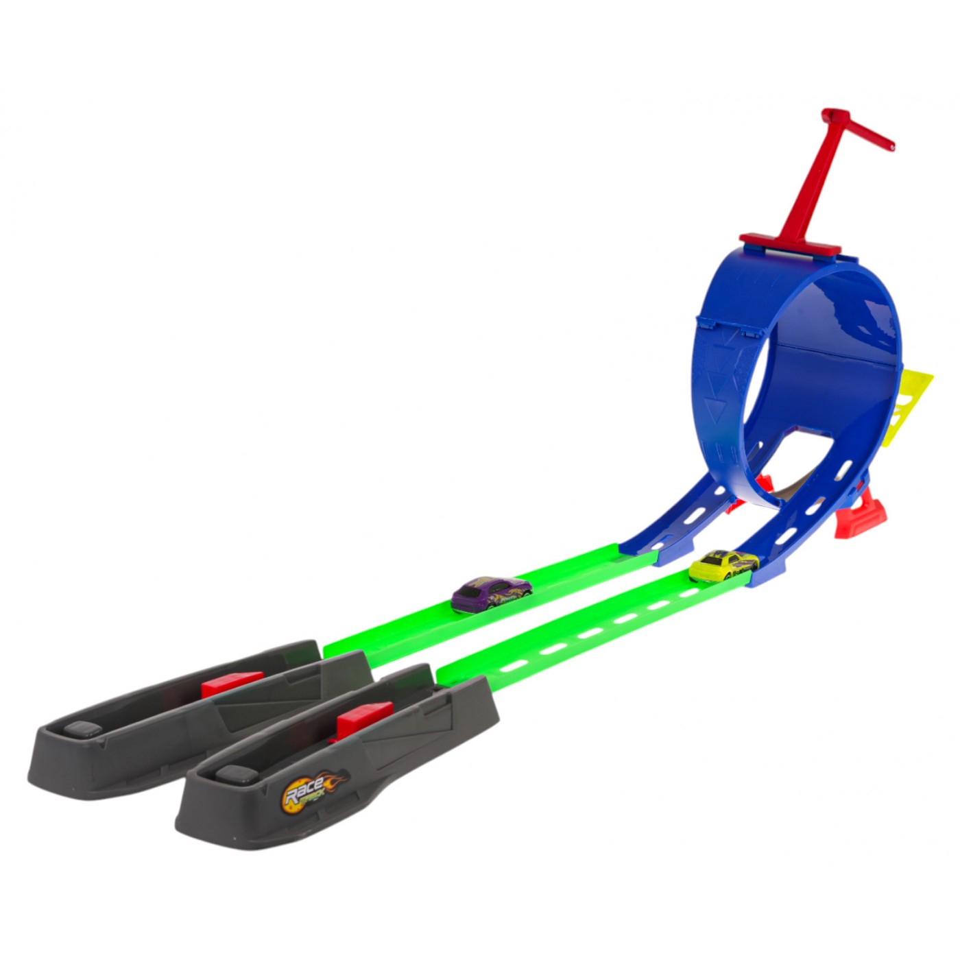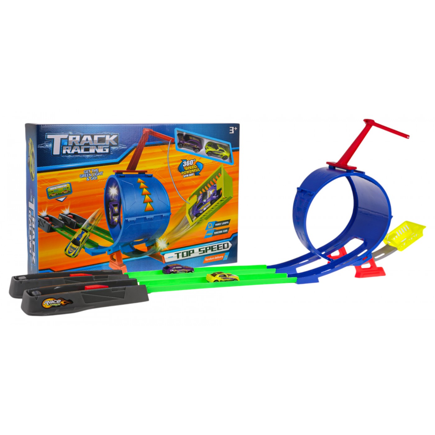 Pretekárska dráha s odpaľovačom pre deti od 3 rokov. Dráha je vyrobená z najkvalitnejšieho plastu v živých farbách. Dráha má odpaľovacie zariadenie, rovné úseky na zrýchlenie vozidla, 360-stupňovú slučku a dve vozidlá.