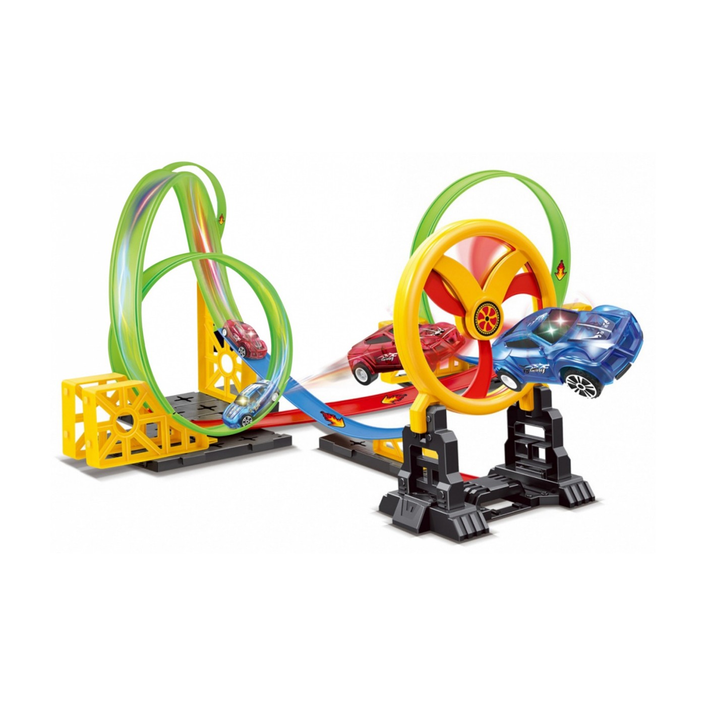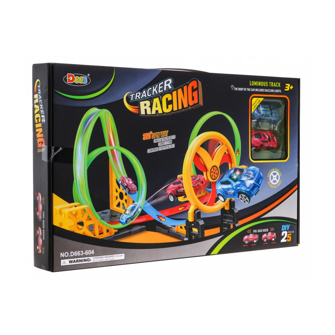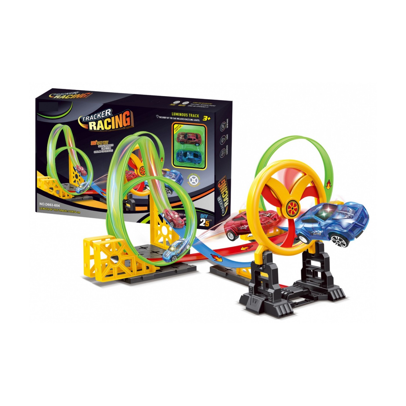 Závodná dráha pre deti 3+ Pohyblivý kruh + 2 Autíčka LED + 3 Služky 360 pre autíčka