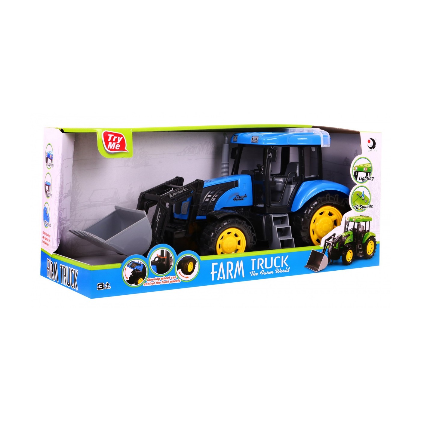 | | - ruchoma łyżka, - podnoszona maska, - skręty prawo/lewo, - jazda do przodu i do tyłu, - napęd na tylne koła, - duże koła, - tylni hak umożliwiający dopięcie przyczepki, - świecące i migające światła znajdujące się na dachu (zarówno z przodu jak i z tyłu), - pełna gama odgłosów dźwiękowych (klakson, dźwięki ostrzegawcze, odgłos zapłonu traktora, odgłosy zwierzaków – szczekanie pieska, rżenie konika, meczenie owieczki, pianie koguta, muczenie krówki, wesoła melodyjka, odgłos pracy silnika w traktorze) – 4 przyciski dźwiękowe zostały umieszczone na dachu pojazdu. |