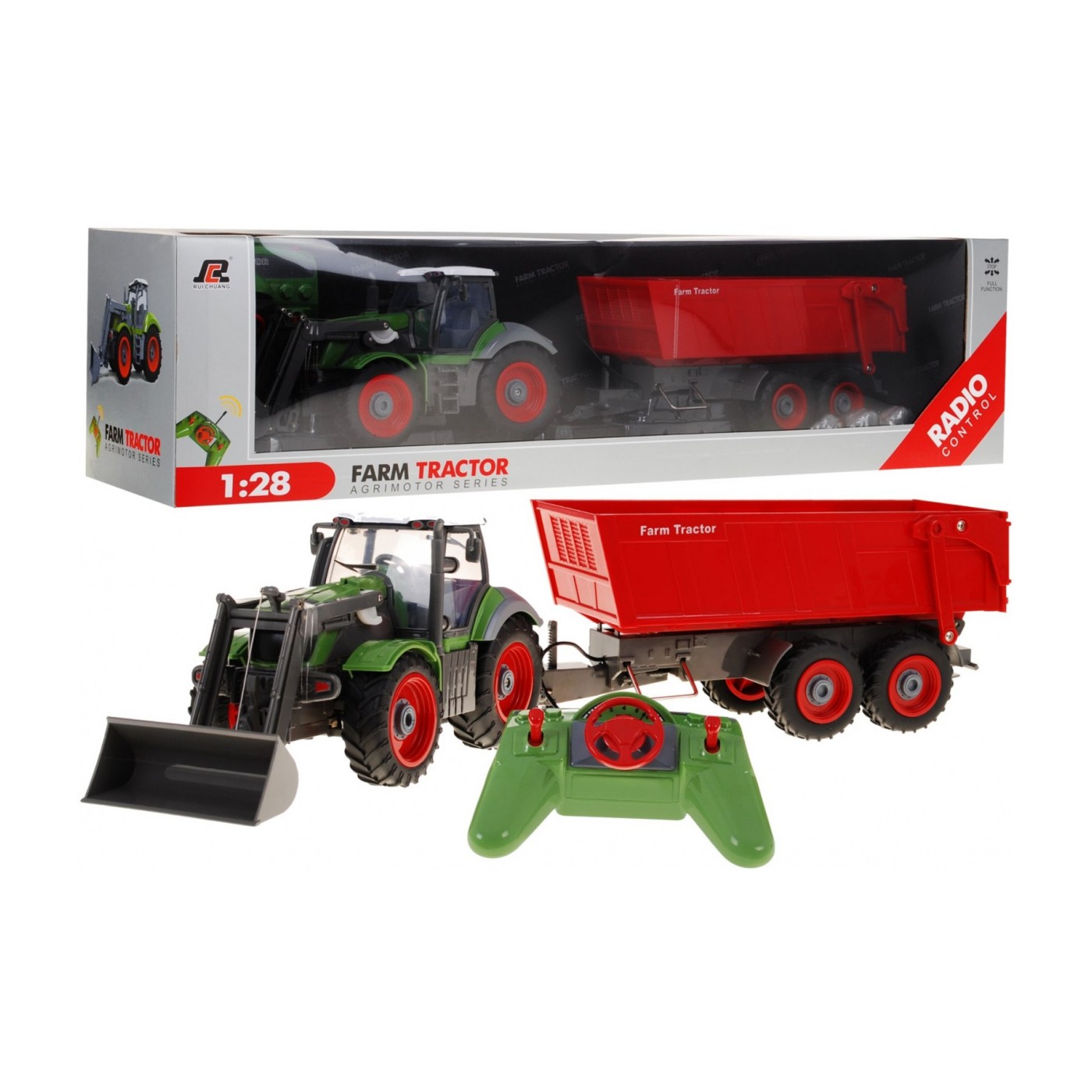 Traktor s bagrom a prívesom pre deti 3+ Diaľkovo ovládaný + Pohyblivé časti Zeleno-červený