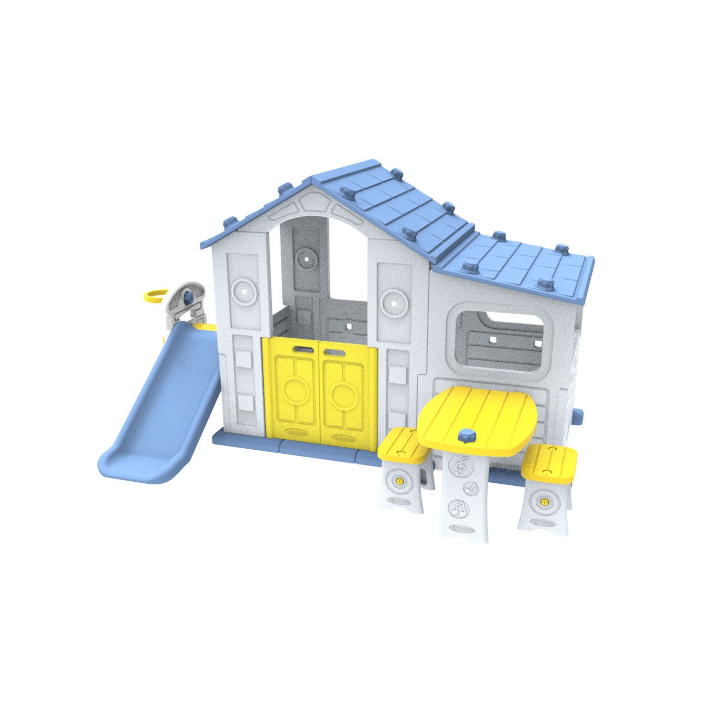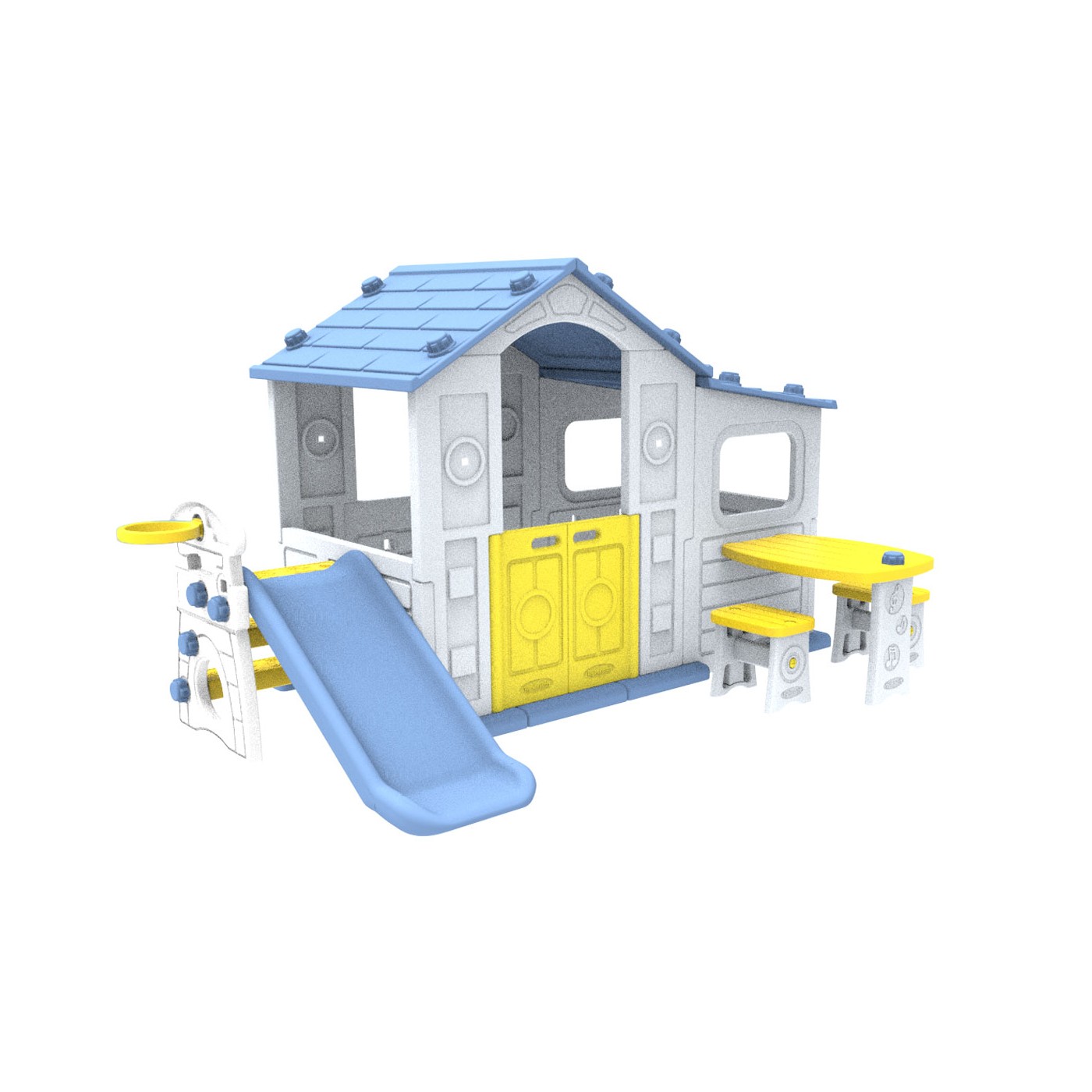 | Specyfikacja | Domek ogrodowy ze zjeżdżalnią, koszykówką oraz ze stolikiem |