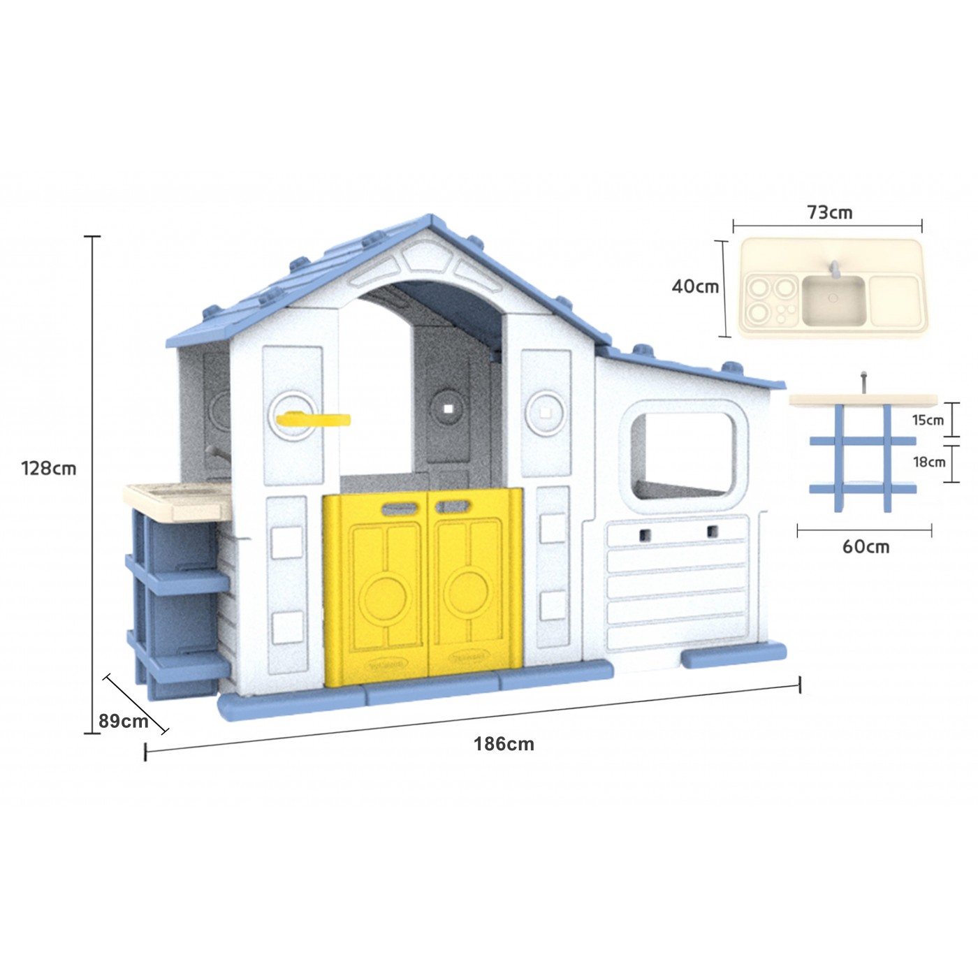 Všetky prvky domčeka sú vyrobené z kvalitného materiálu HDPE. Je to polyetylén s vysokou hustotou, v rozsahu od 0,942 do 0,965 g/cm3. HDPE je pružnejší materiál a odolnejší voči mechanickému poškodeniu v porovnaní s materiálmi používanými v iných takýchto štruktúrach. |