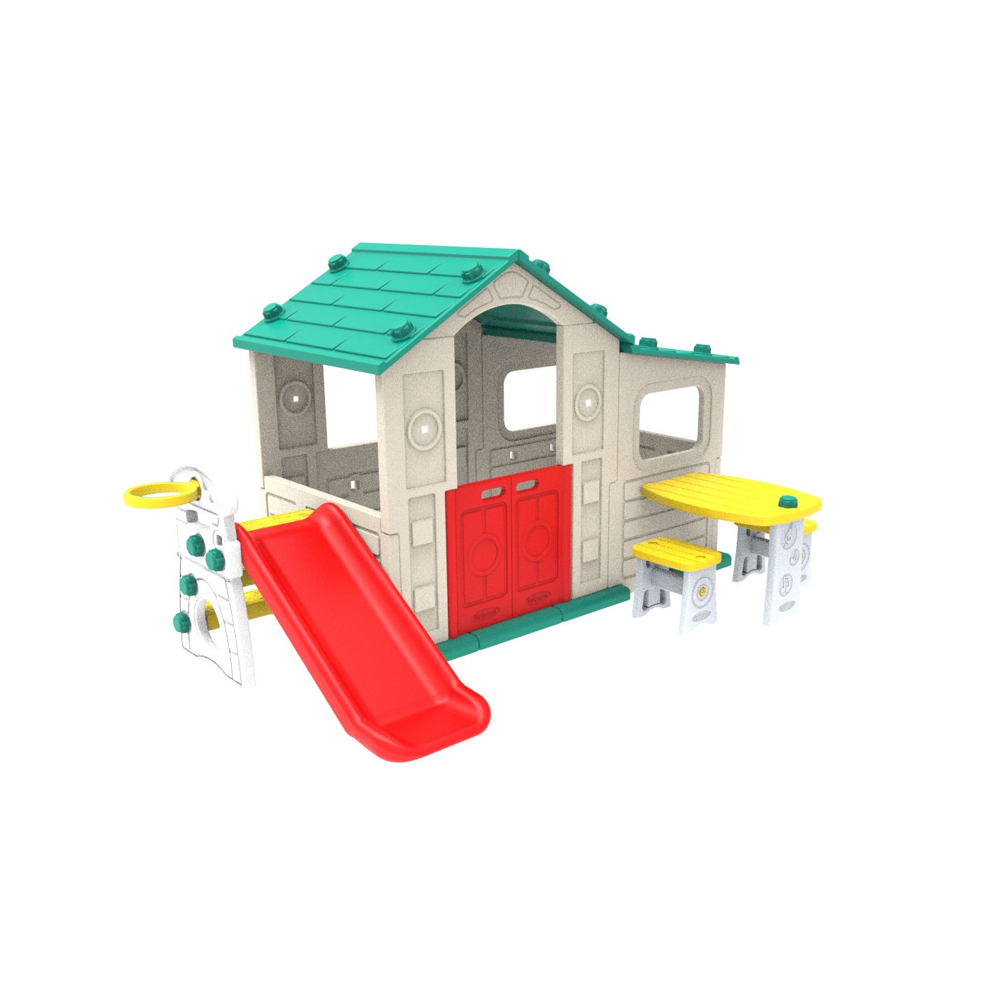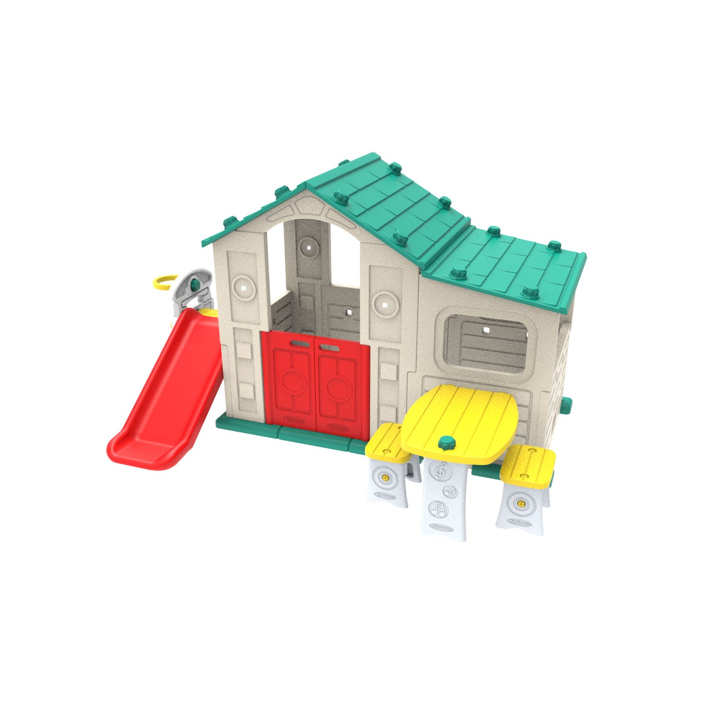 | Specyfikacja | Domek ogrodowy ze zjeżdżalnią, koszykówką oraz ze stolikiem |