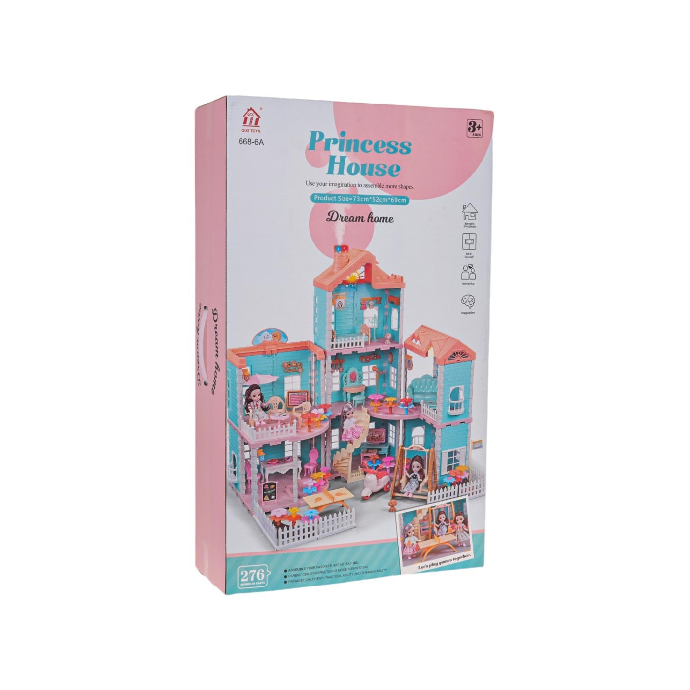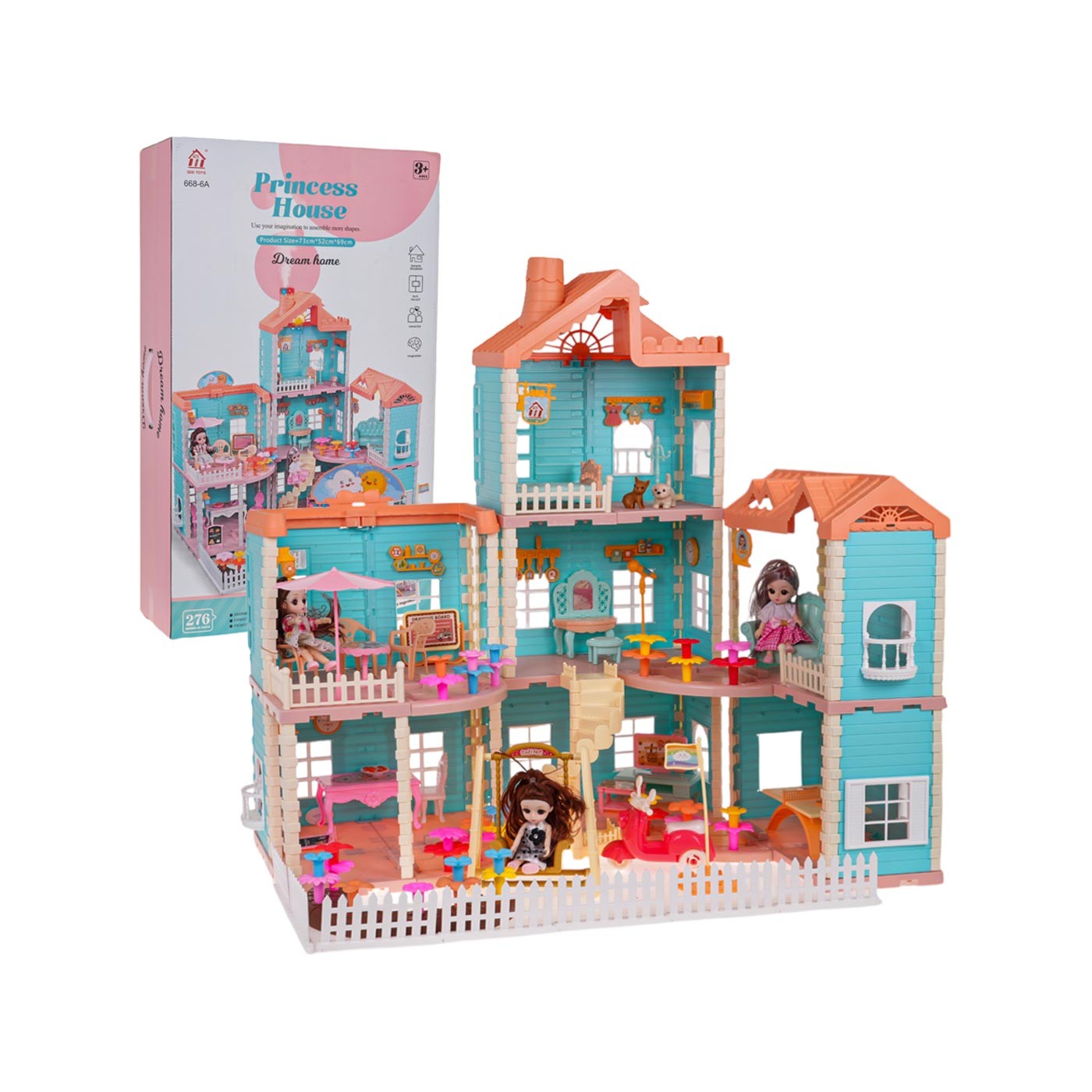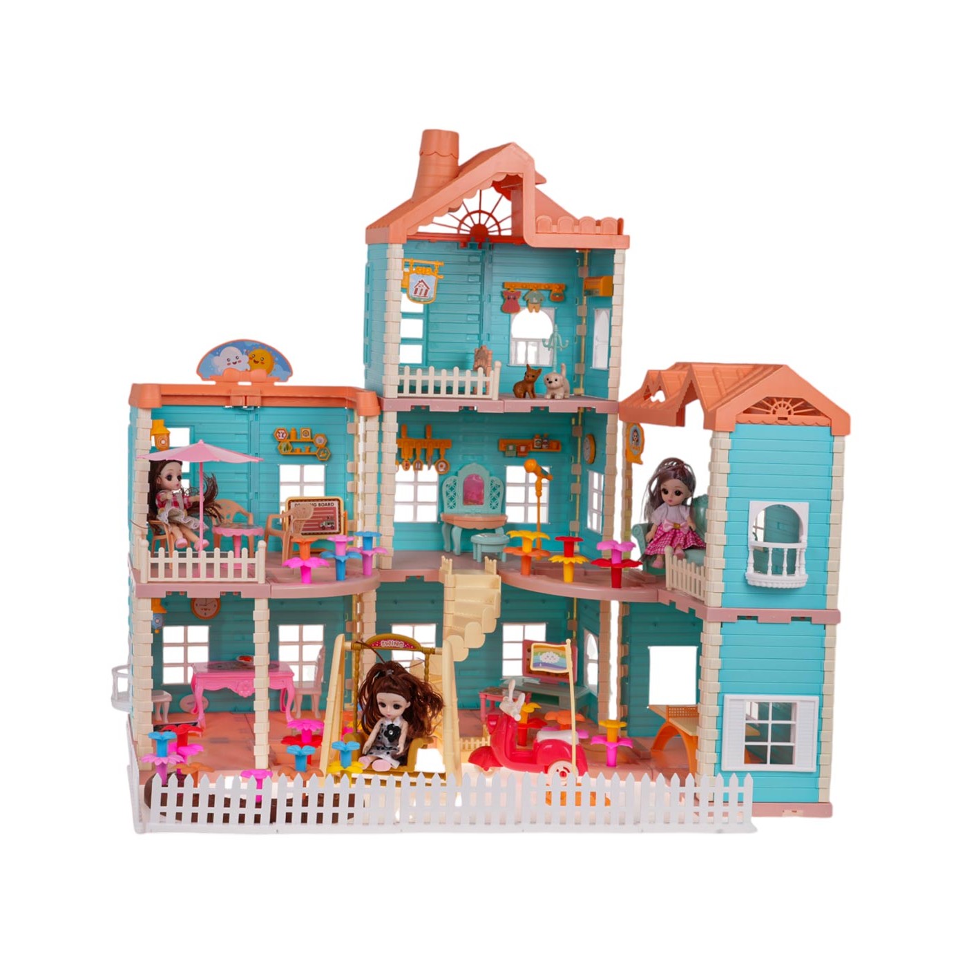 Krásny, veľký, interaktívny domček pre bábiky s plnou výbavou a tromi bábikami v súprave pre deti od 3 rokov. Domček má svetelnú funkciu (2 svietidlá svietia) a dymovú funkciu (z komína vychádza para pripomínajúca dym). Svietidlá sú napájané 3 x AG13 batériami (každá), batérie sú súčasťou sady, komín je napájaný 3 x AAA 1,5 V batériami (nie sú súčasťou). Dom pozostáva z 3 poschodí a miestností ako kuchyňa, spálňa, obývačka, hudobná miestnosť a terasa. Celý dom je vyzdobený množstvom kvetov. Vonku je tiež oddychová zóna s hojdačkou a biliardovým stolom. Hračka je vyrobená z najkvalitnejšieho plastu v živých farbách, ktoré upútajú pozornosť dieťaťa.
