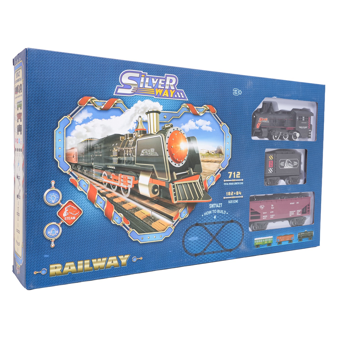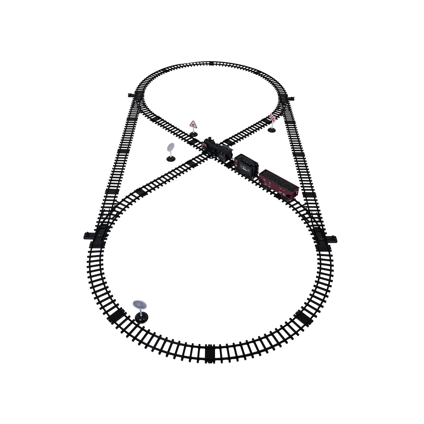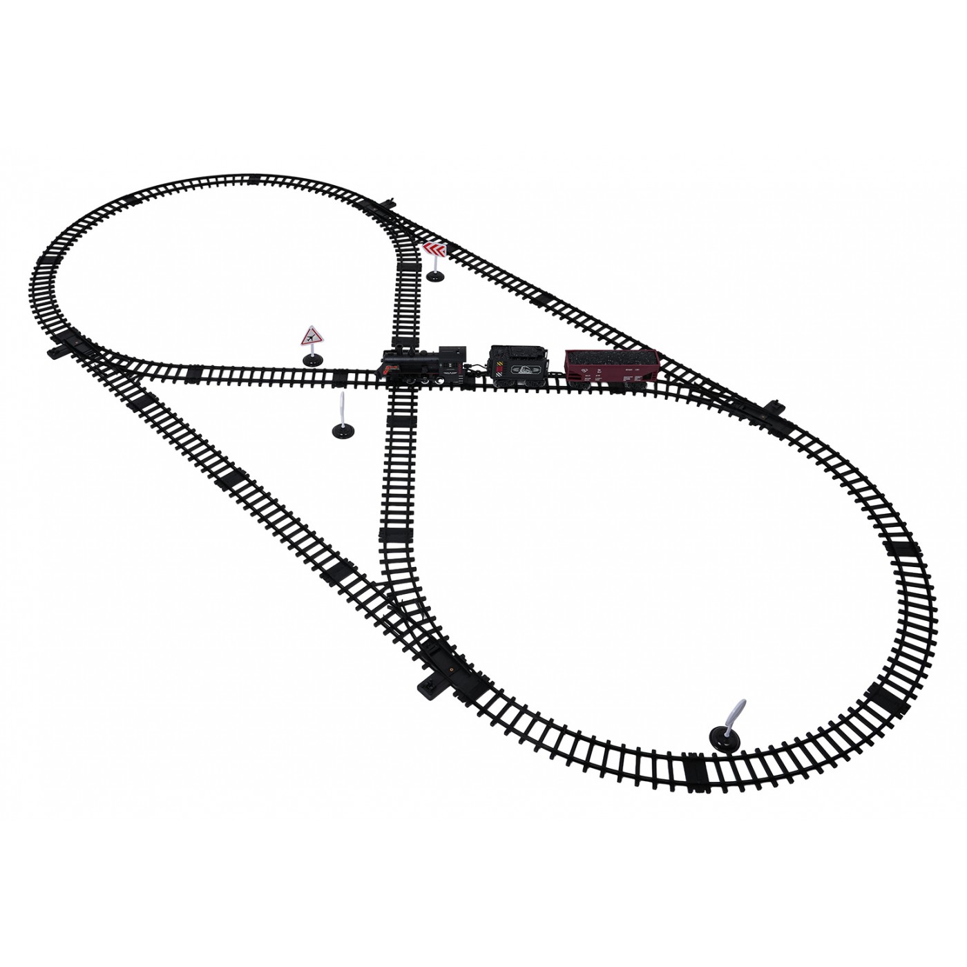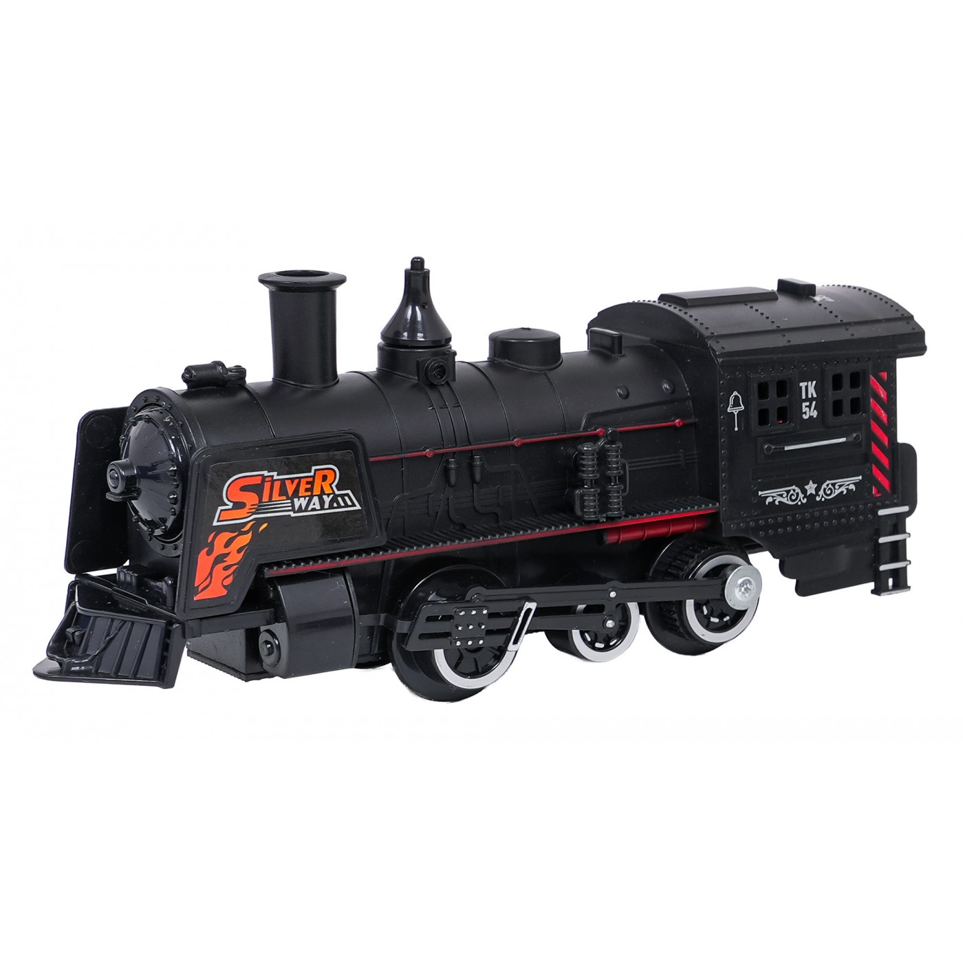 Táto retro vláčikodráha s dymovými, svetelnými a zvukovými prvkami je ideálna pre deti od troch rokov. Hračka je napájaná 4 x 1,5 V AA batériami (nie sú súčasťou balenia). Počas jazdy lokomotíva vypúšťa z komína dym. Po doplnení vody (pipeta na vodu je súčasťou balenia) sa rozsvieti predné svetlomety a budete počuť zvuky vláčika. Koľajnice sú odolné, bezpečné a ľahko sa spájajú.