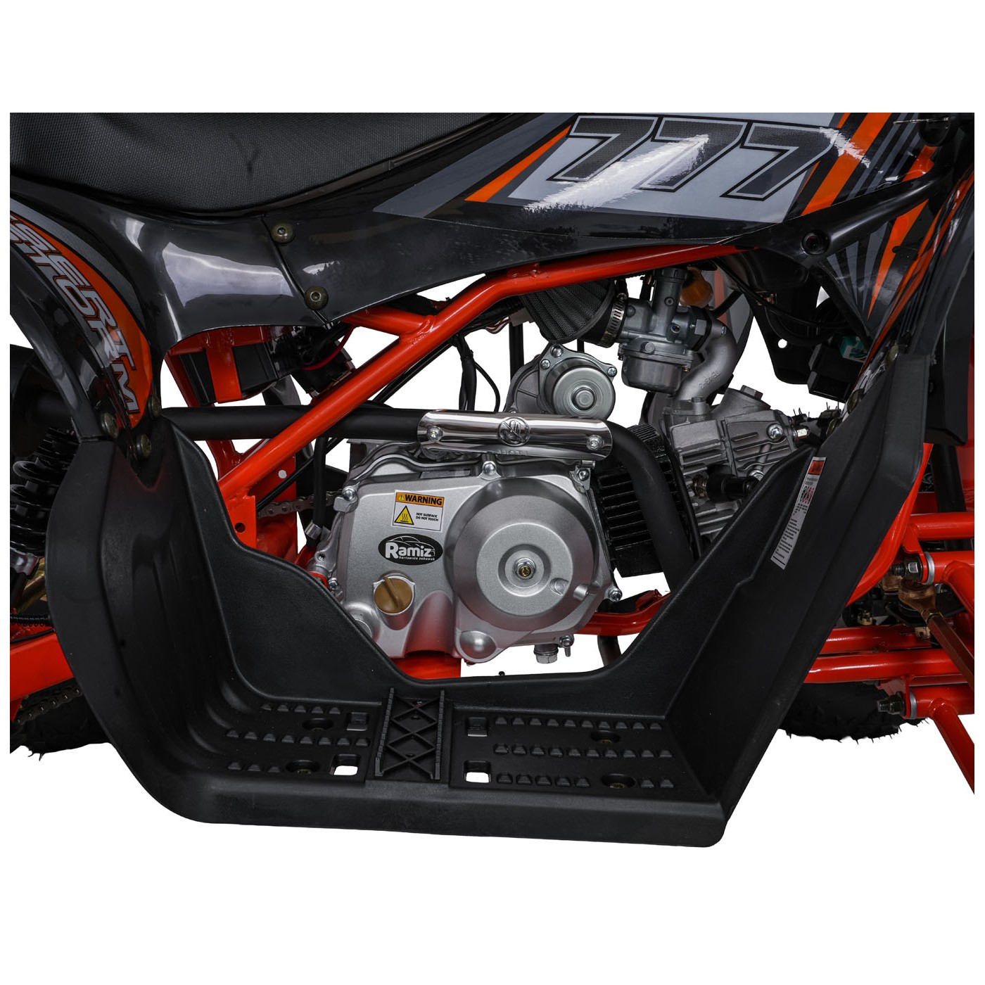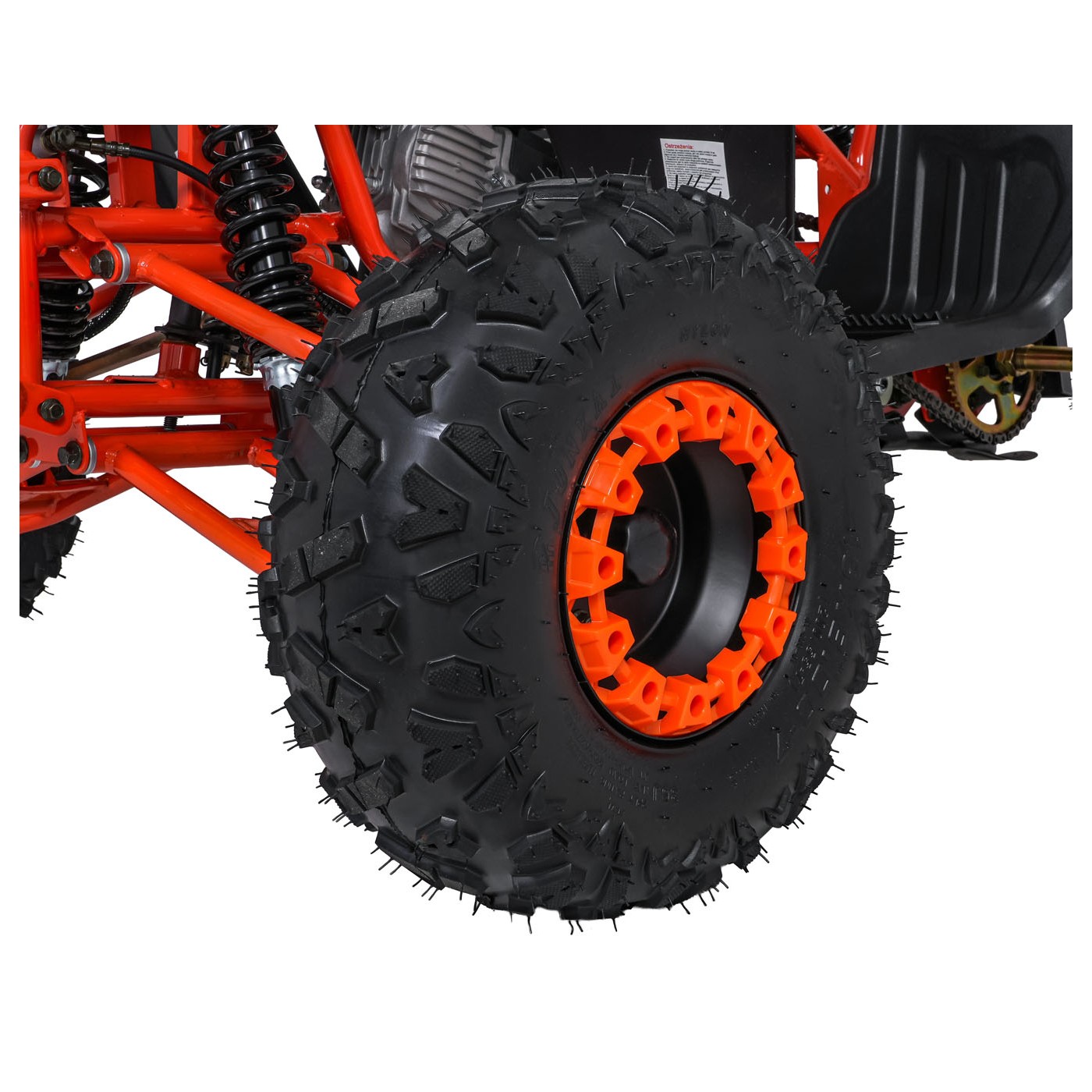 Vozidlo so spaľovacou štvorkolkou v oranžovej farbe