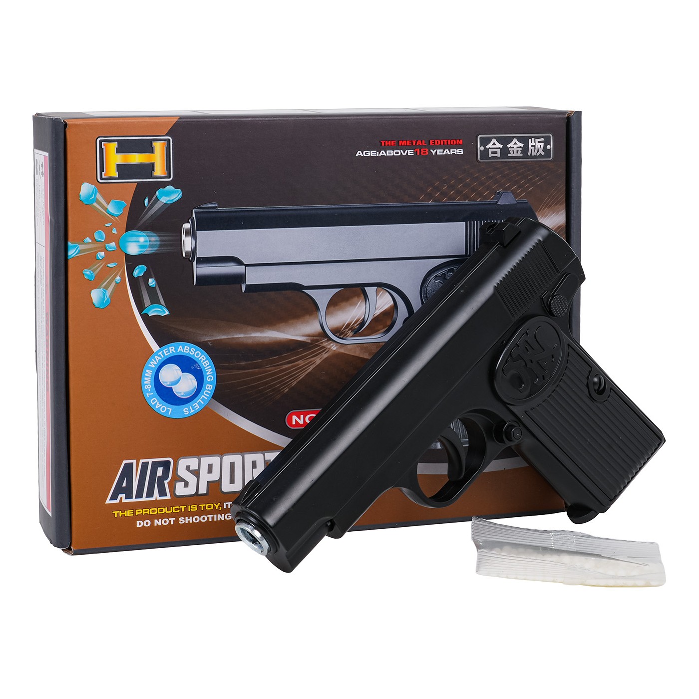 Vodná diabolská pištoľ AIR GUN je určená pre deti od troch rokov. Pištoľ sa ľahko používa a používa špeciálne hydrogélové pelety, ktoré pri náraze praskajú. Tento model používa pelety s priemerom 7-8 mm. Sada obsahuje vrecko s neupravenými peletami. Pelety sa pripravujú zaliatím vodou a nechaním lúhovať približne 4-6 hodín. Táto pištoľ je ideálna na aktívne hranie vonku.
