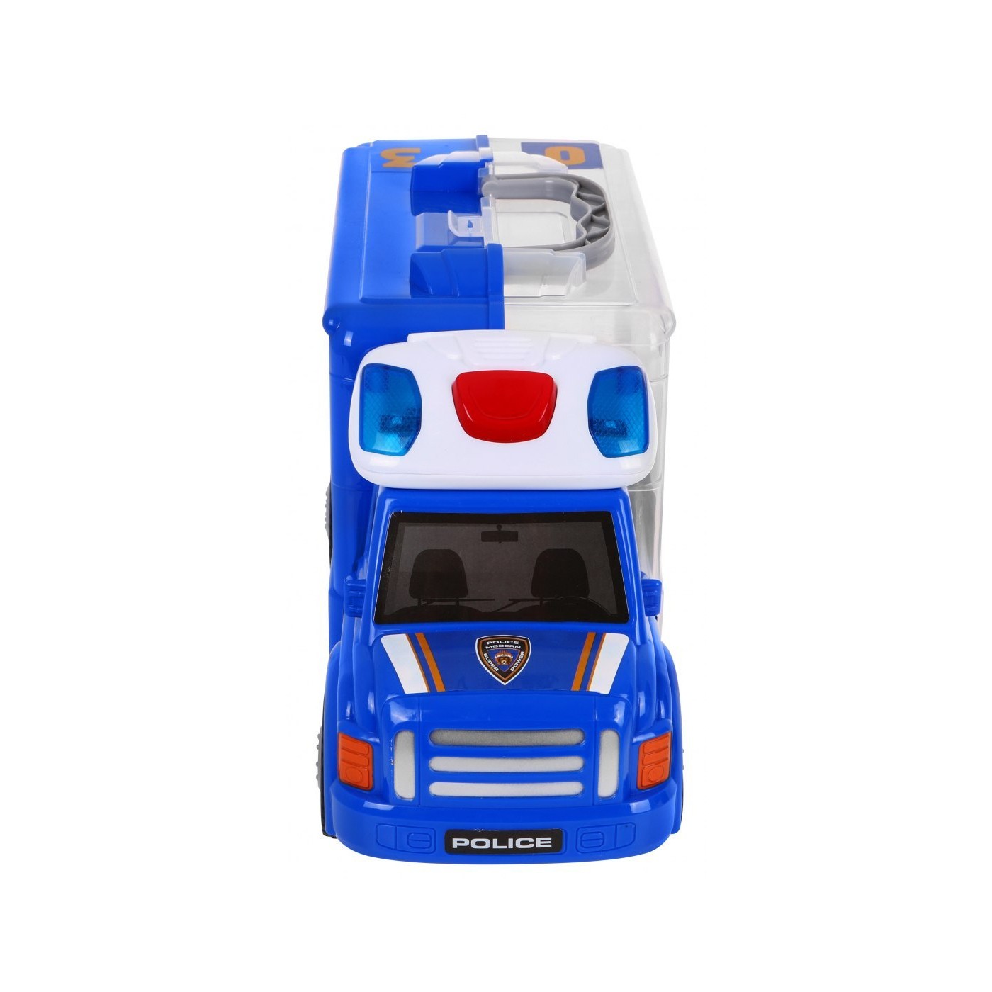 | | Duży interaktywny policyjny pojazd z zamykanym pojemnikiem z akcesoriami niezbędnymi dla każdego przyszłego policjanta. Z pewnością spodoba się każdemu małemu chłopcu. Na autku, czerwony przycisk uruchamia sygnały świetlne i dźwiękowe. Walizka posiada rączkę do przenoszenia. Żywe kolory, estetyczne wykonanie. Zabawka zasilana bateriami 4 x AG w zestawie. Efekty dźwiękowe i świetlne. Dla dzieci od 3 roku życia, posiada certyfikat CE. |