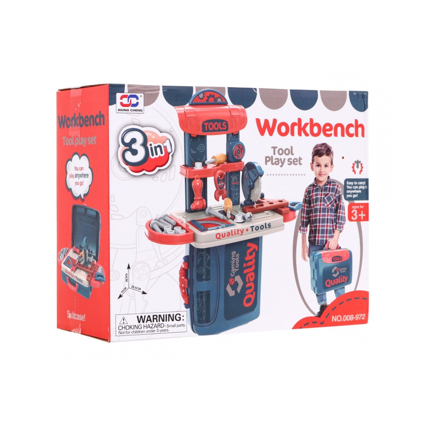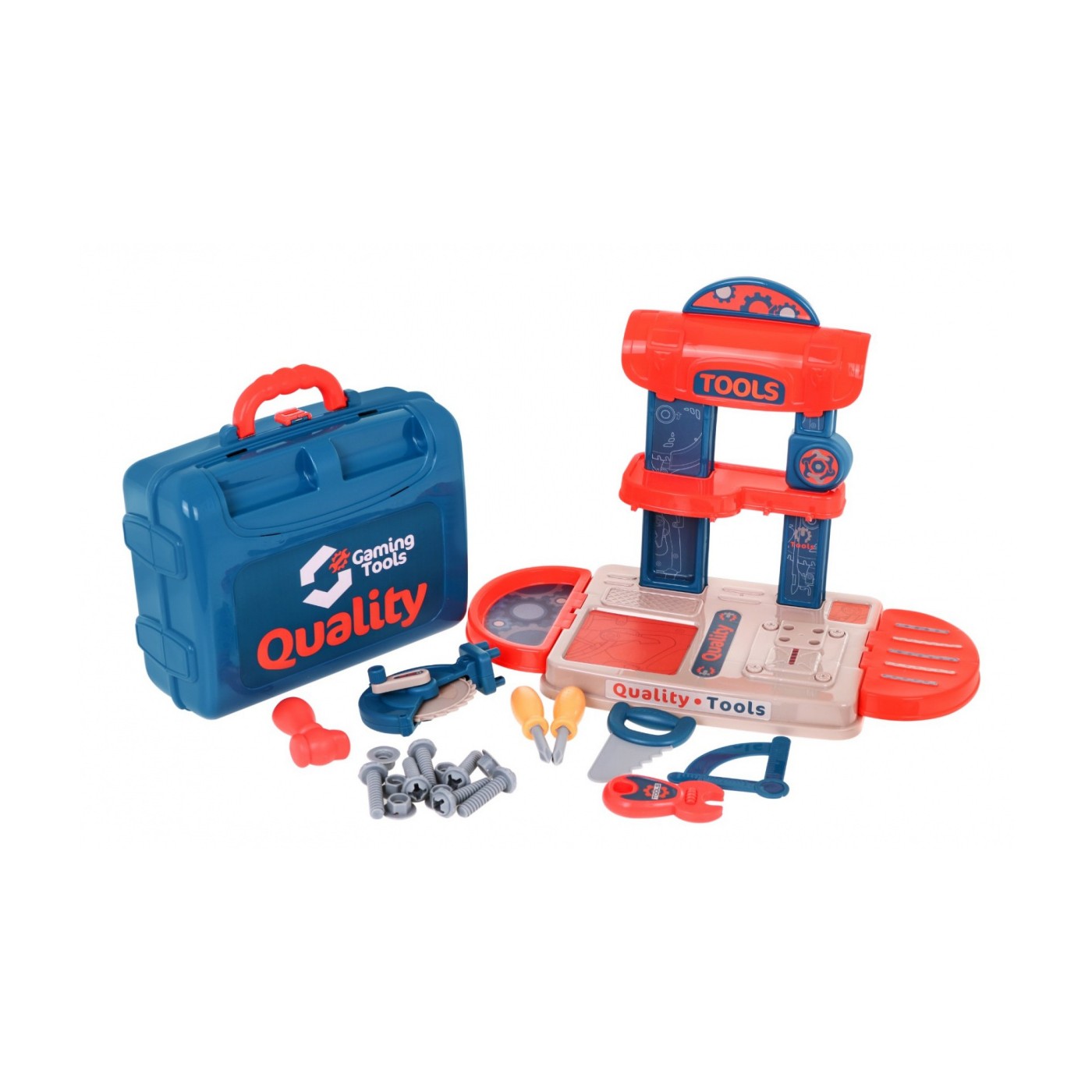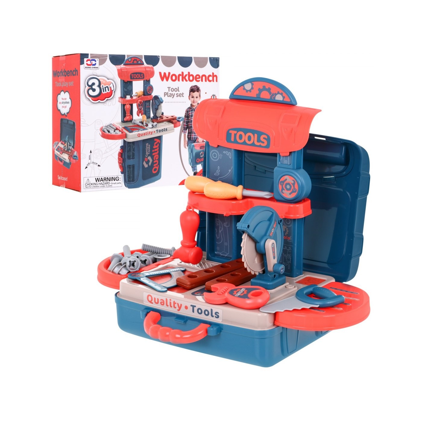 Dielňa 3v1 pre deti 3+ Kufor + Doska + Stolík + Náradie Príslušenstvo 21 ks