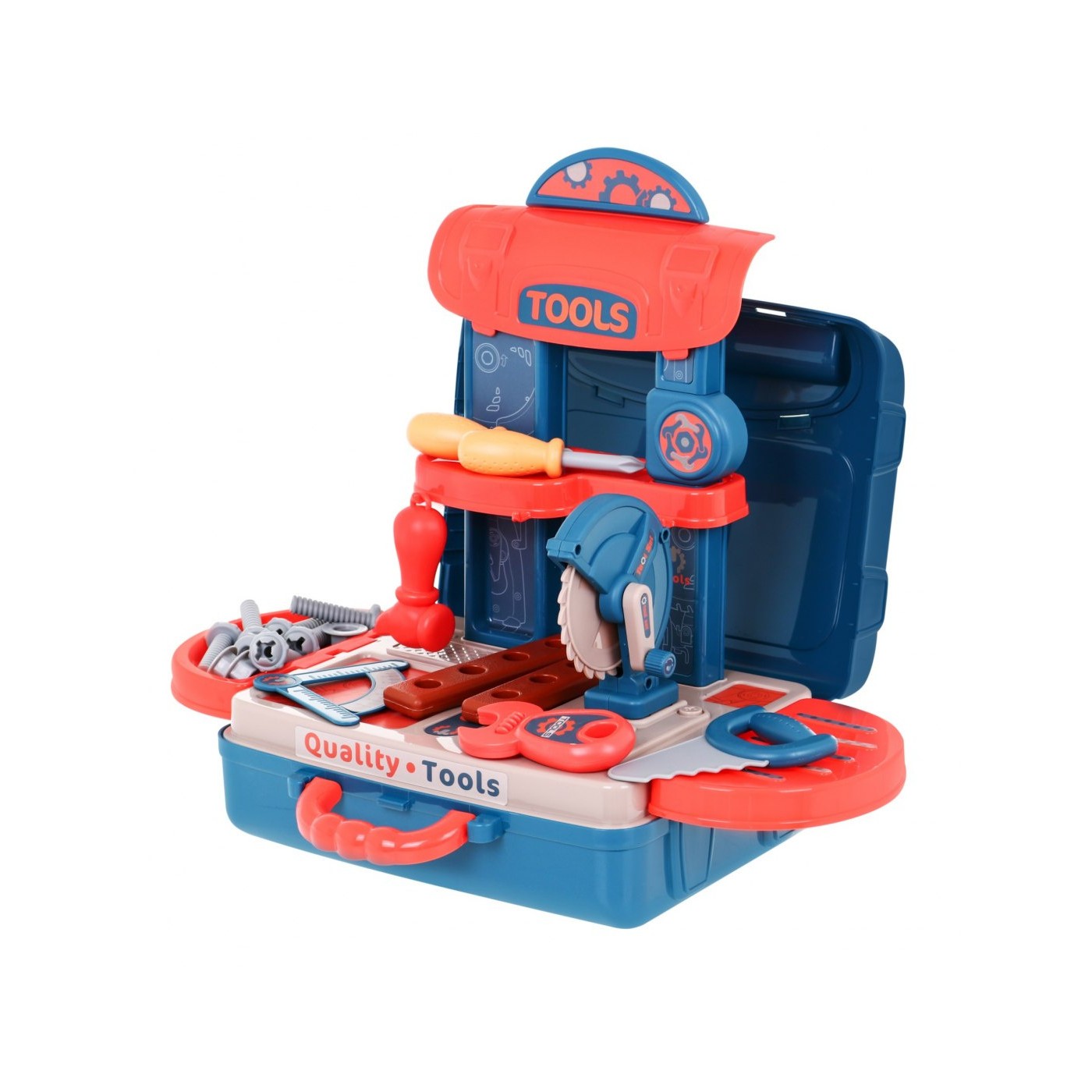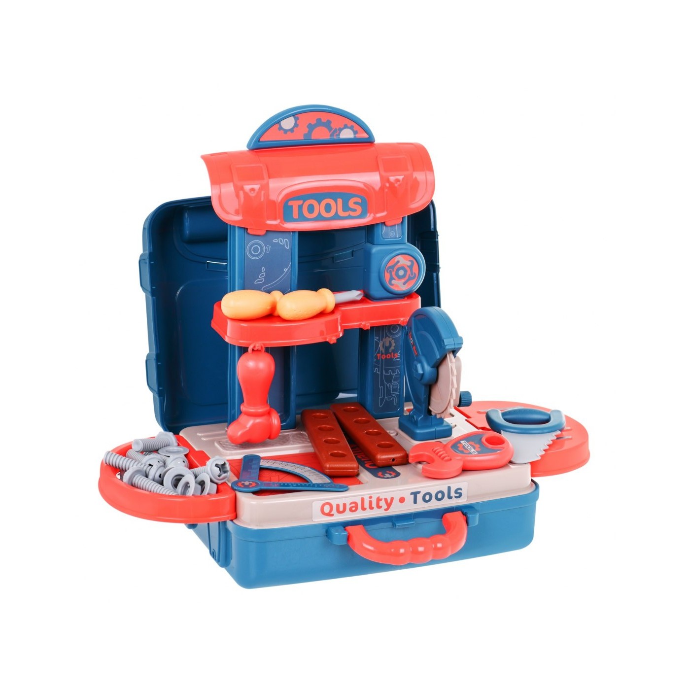| | Zestaw narzędzi z walizką to zabawka dla dzieci powyżej 3 – go roku życia. Praktyczna walizka posiada wygodną rączkę do przenoszenia, jest za razem podstawą pod warsztat. Blat warsztatu można ułożyć na walizce położonej pionowo lub otwartej położonej na płasko. Warsztat posiada wszystko co niezbędne małemu mechanikowi. Wszystkie jego części składowe, po skończonej zabawie można włożyć do walizki i zabrać ją wszędzie ze sobą. |