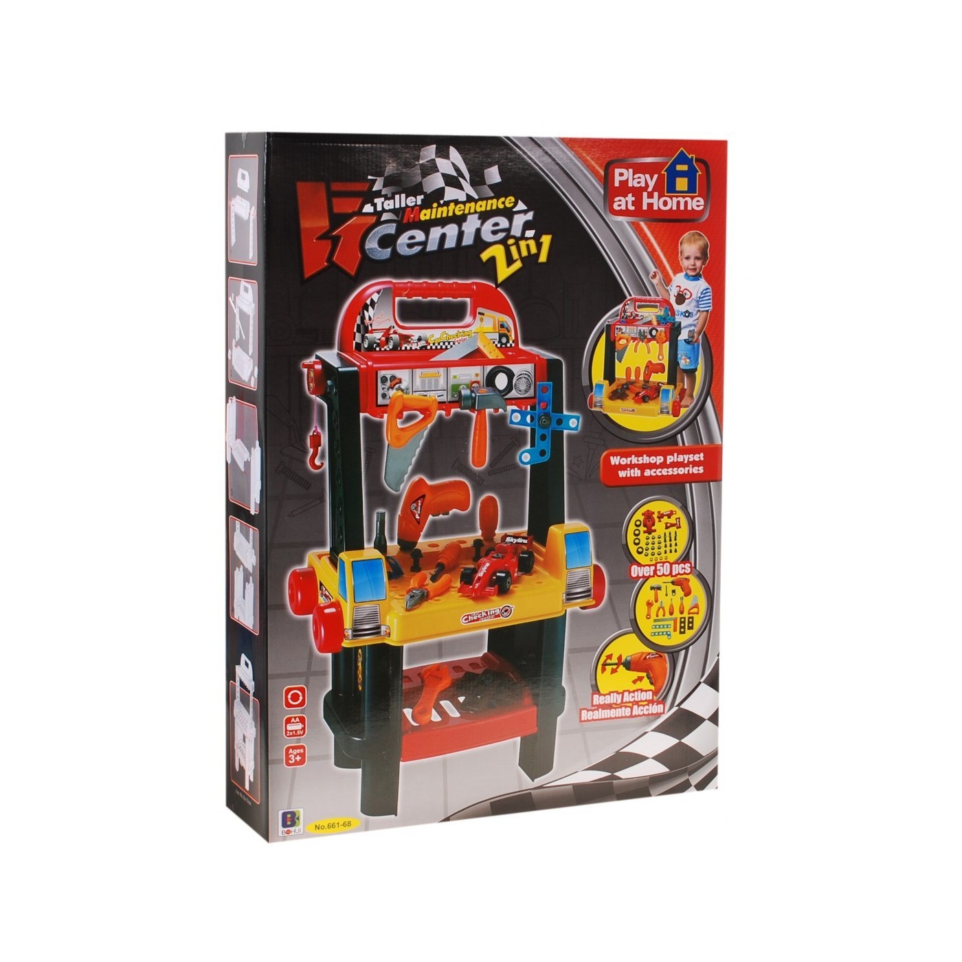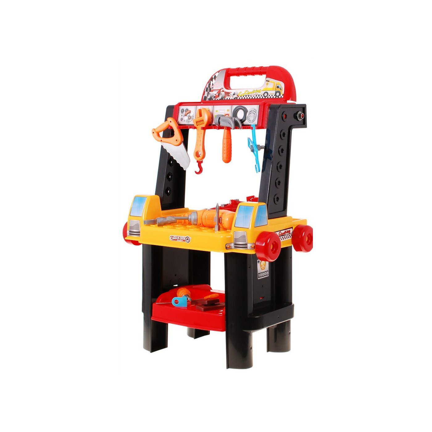 | | - zestaw 42 narzędzi dla małych majsterkowiczów – Tool Set, - opisywany zestaw to propozycja dla przyszłych majsterkowiczów, - poszczególne elementy warsztatu można z łatwością zmontować, - na wygodnym stojaku możemy zawiesić różne narzędzia, - do zestawu dołączone jest autko wyścigowe do samodzielnego montażu, - zabawka zasilana jest 2 bateriami typu AA (2x1,5V) - brak w zestawie. |