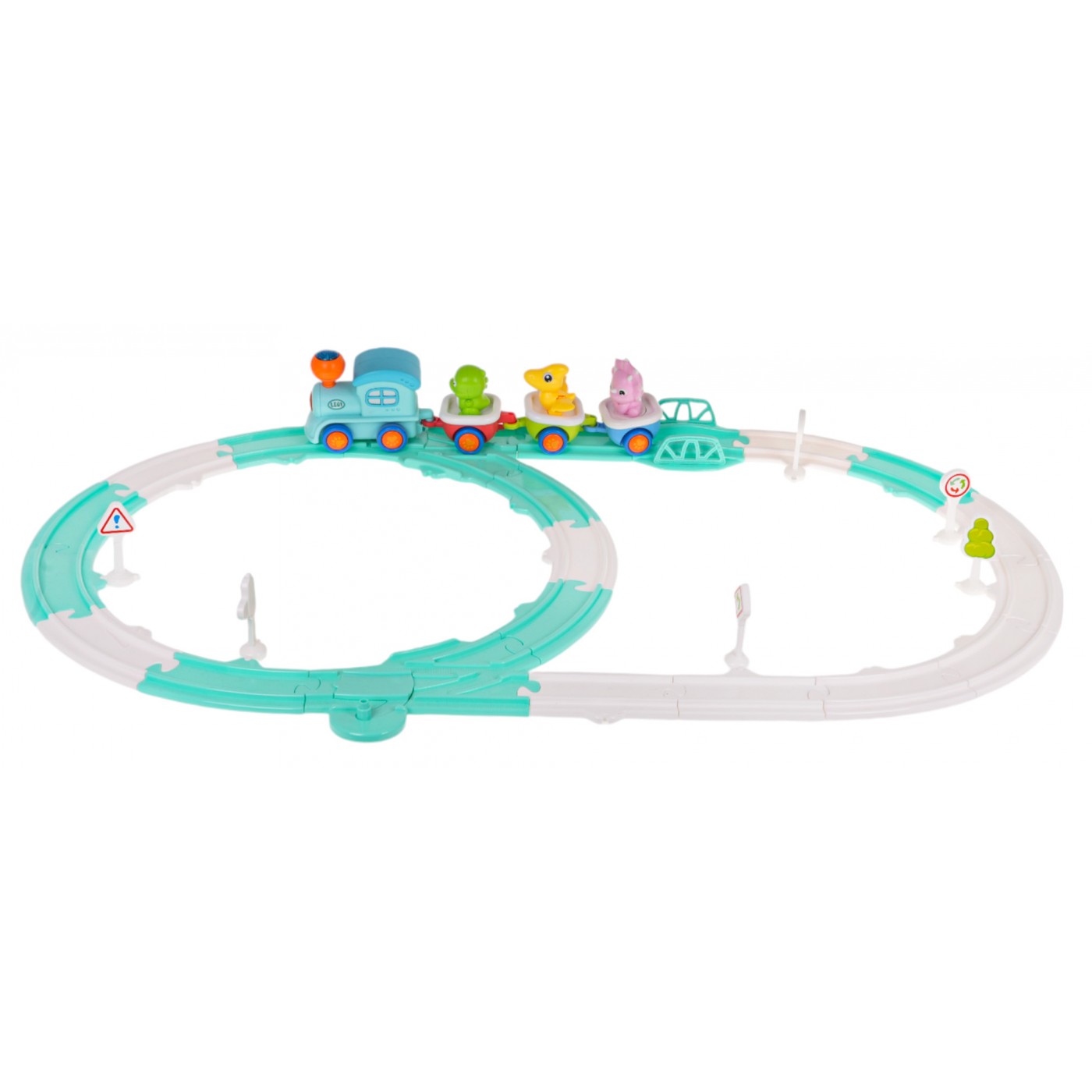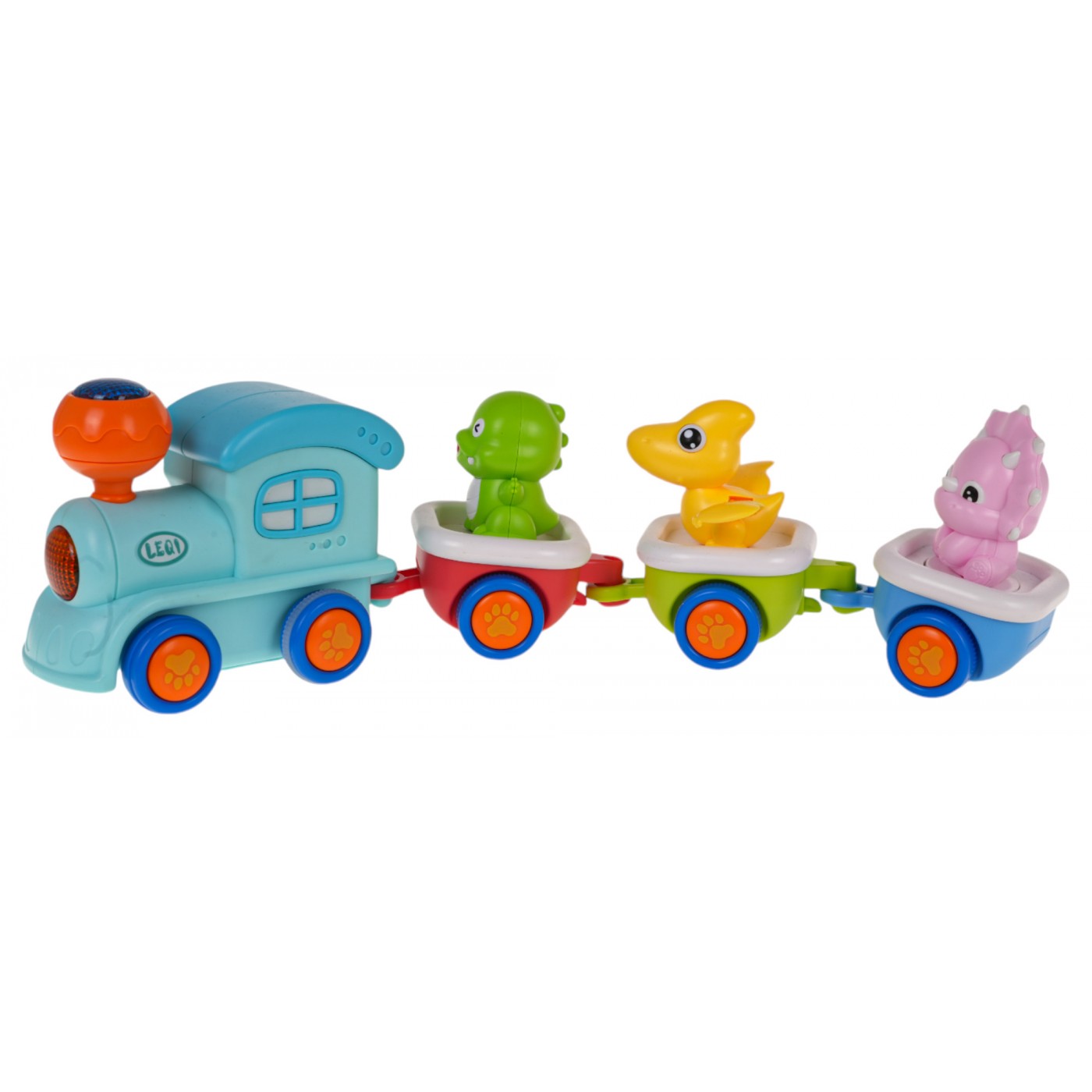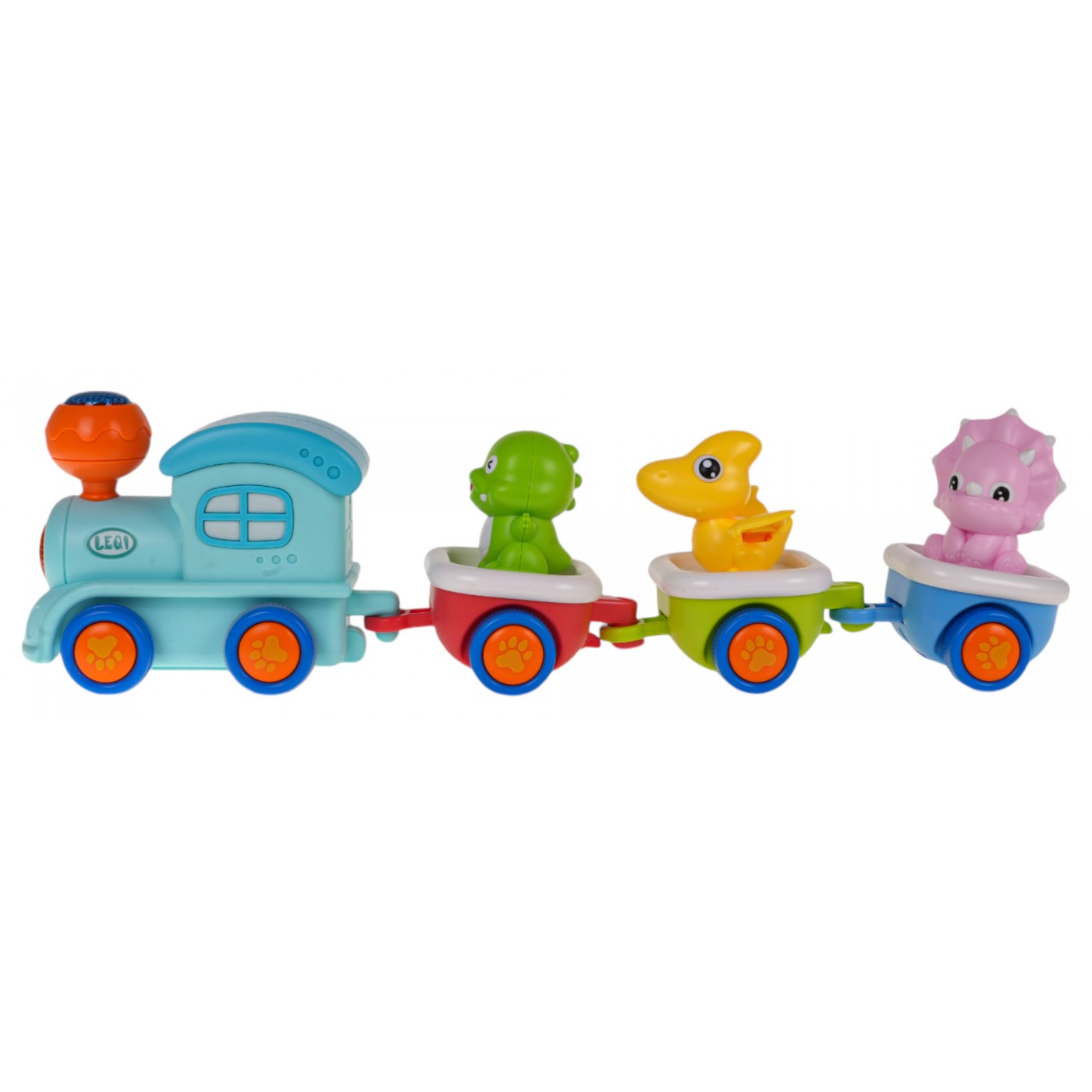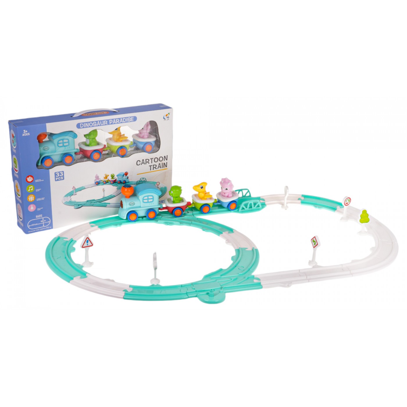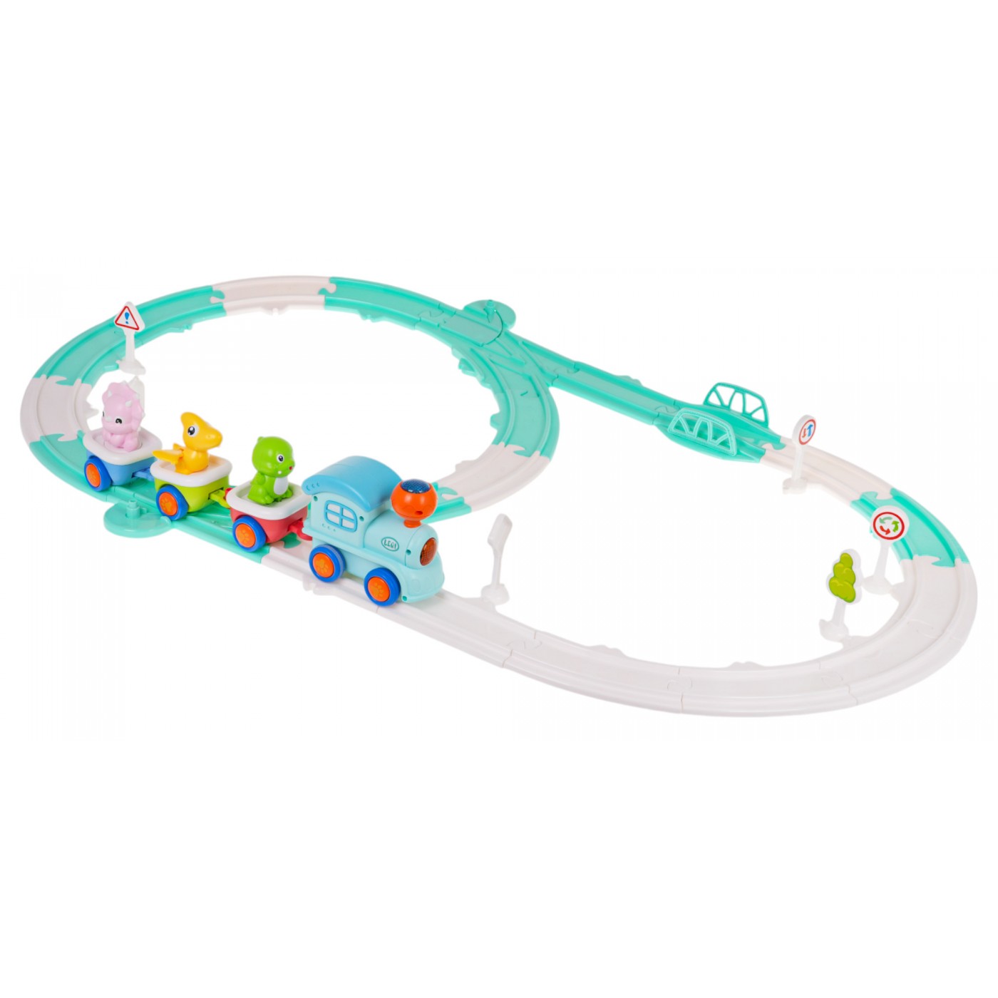 Interaktívny vláčik Dinuś s dráhami, pre deti od 3 rokov. Súprava je vyrobená z najkvalitnejšieho plastu v živých farbách, ktoré podnecujú dieťa k hre a obsahuje 33 prvkov. Lokomotíva je napájaná 2 x AA 1,5 V batériami (nie sú súčasťou balenia). Má 3 pripojené dinosaurie vagóny. Vlak vydáva zábavné zvuky a bliká svetielkami, keď sa rúti po koľajniciach. Každý vozík sa dá odpojiť a každý dinosaurus sa dá z vozíka vybrať. Sada obsahuje aj dopravné značky.