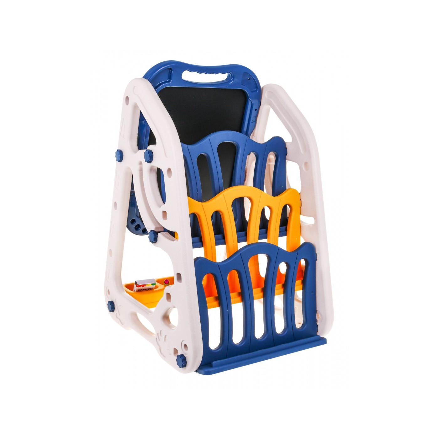 | Duży wielofunkcyjny zestaw składający się z dwustronnej tablica i półeczek na książeczki to propozycja dla dzieci od 3-go roku życia. Tablica z jednej stronny jest biała magnetyczna a z drugiej kredowa. Na stronie białej można pisać pisakami lub przyczepiać kolorowe magnesy. Na stronie czarnej można malować kredą. Do zestawu załączono specjalny uchwyt do trzymania kredy, który sprawia, że rączki naszych maluchów pozostają czyste. Po drugiej stronie od tablicy znajdują się półeczki na książki malucha. Zestaw jest bezpieczny, wszystkie kanty są zaokrąglone co zapewnia bezpieczeństwo użytkowania. Łatwo się go montuje i demontuje, instrukcja złożenia na opakowaniu. Dzięki tablicy dziecko bawiąc się może pobudzić jednocześnie wyobraźnię, koncentrację i zdolności manualne | |