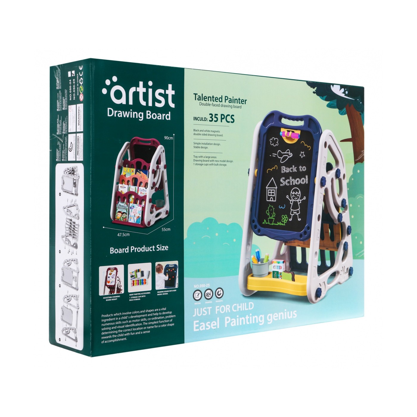 Obojstranná Kriedová magnetická tabuľa pre deti 3+ Nastavenie výšky + Police na knihy + Príslušenstvo