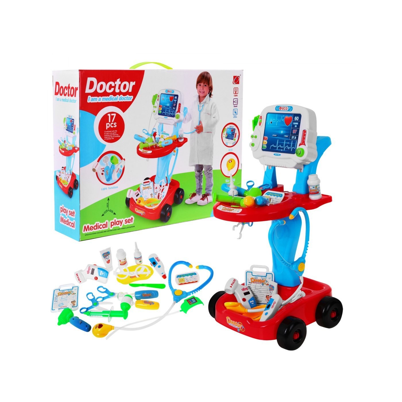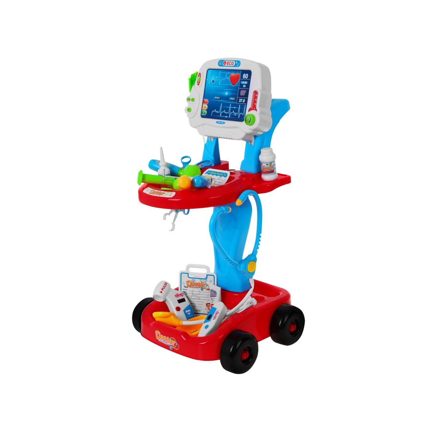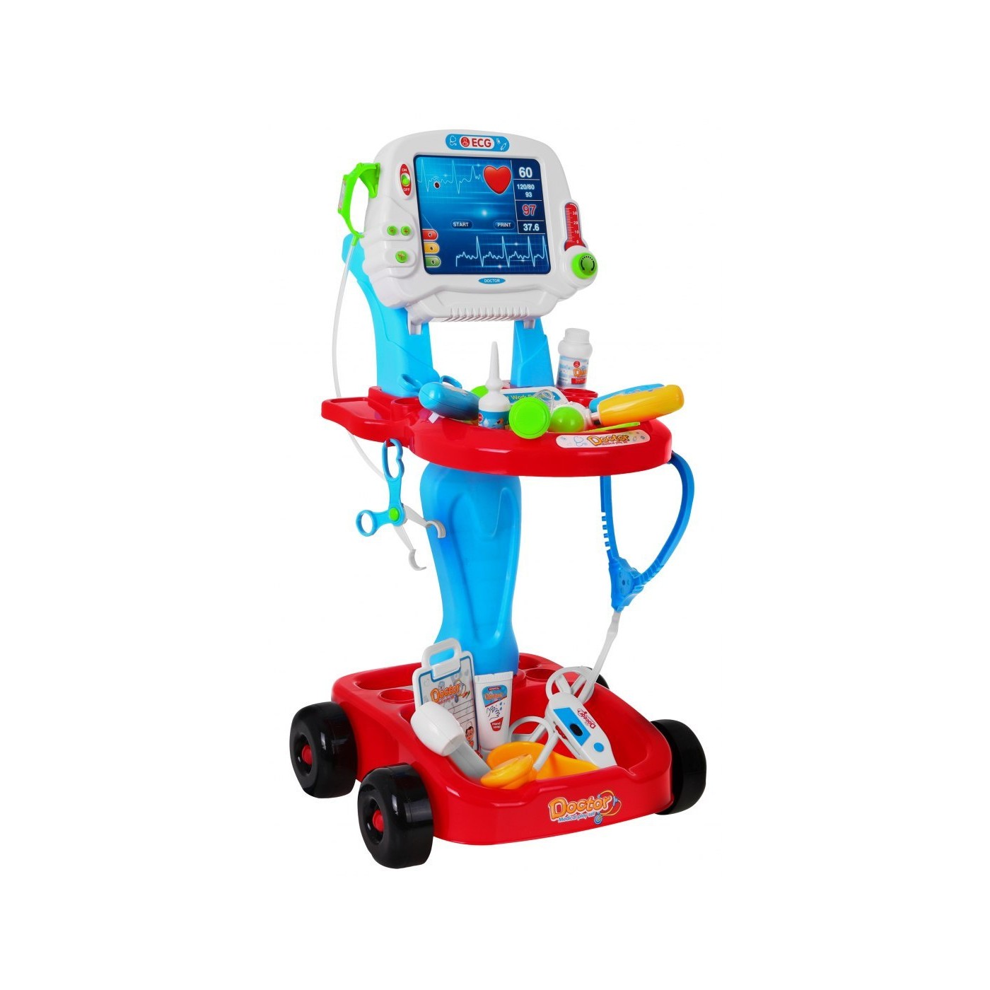 Vozík malého lekára s EKG pre deti 3+ Panel EKG + Stetoskop + Teplomer + 17 ks. Zvuky Svetlá