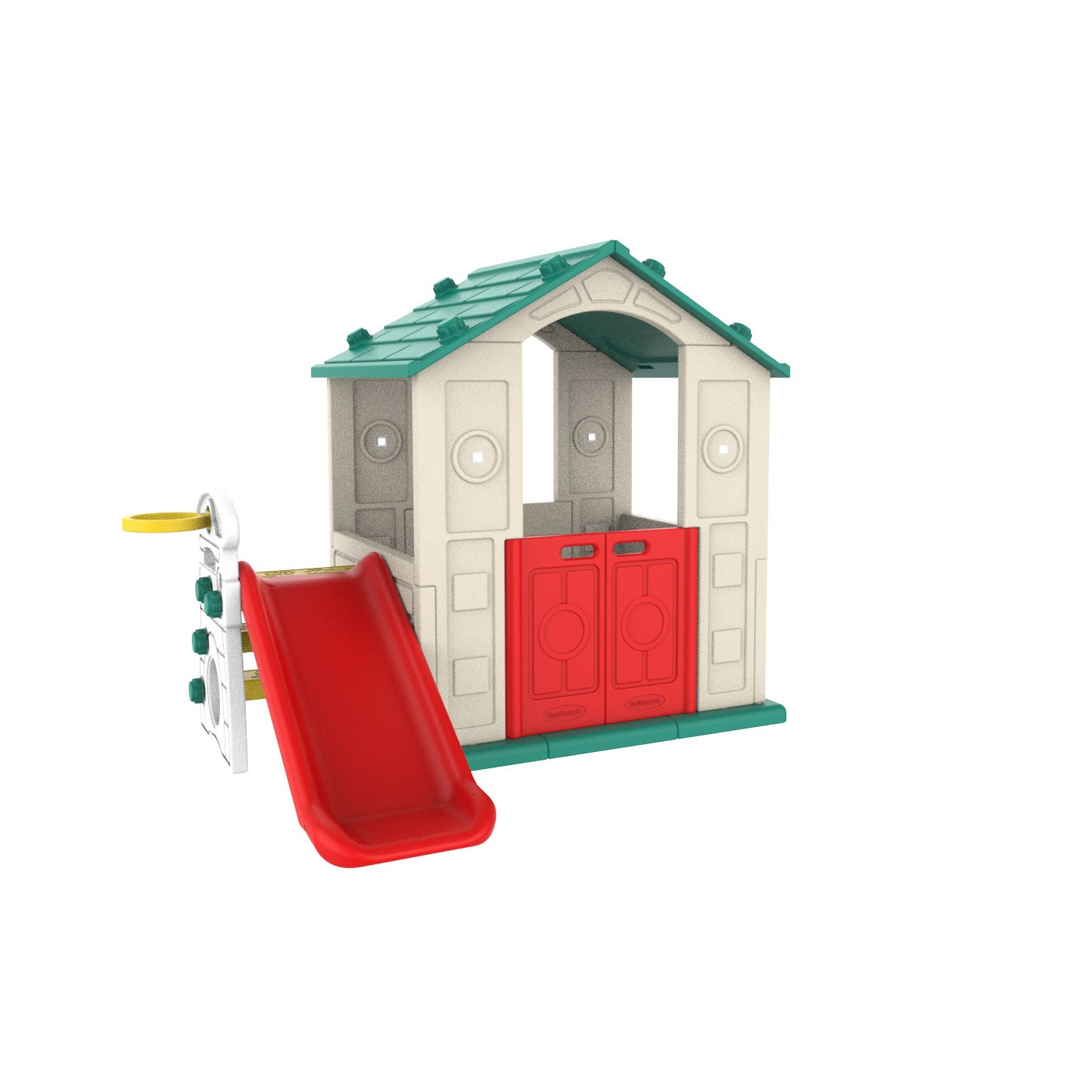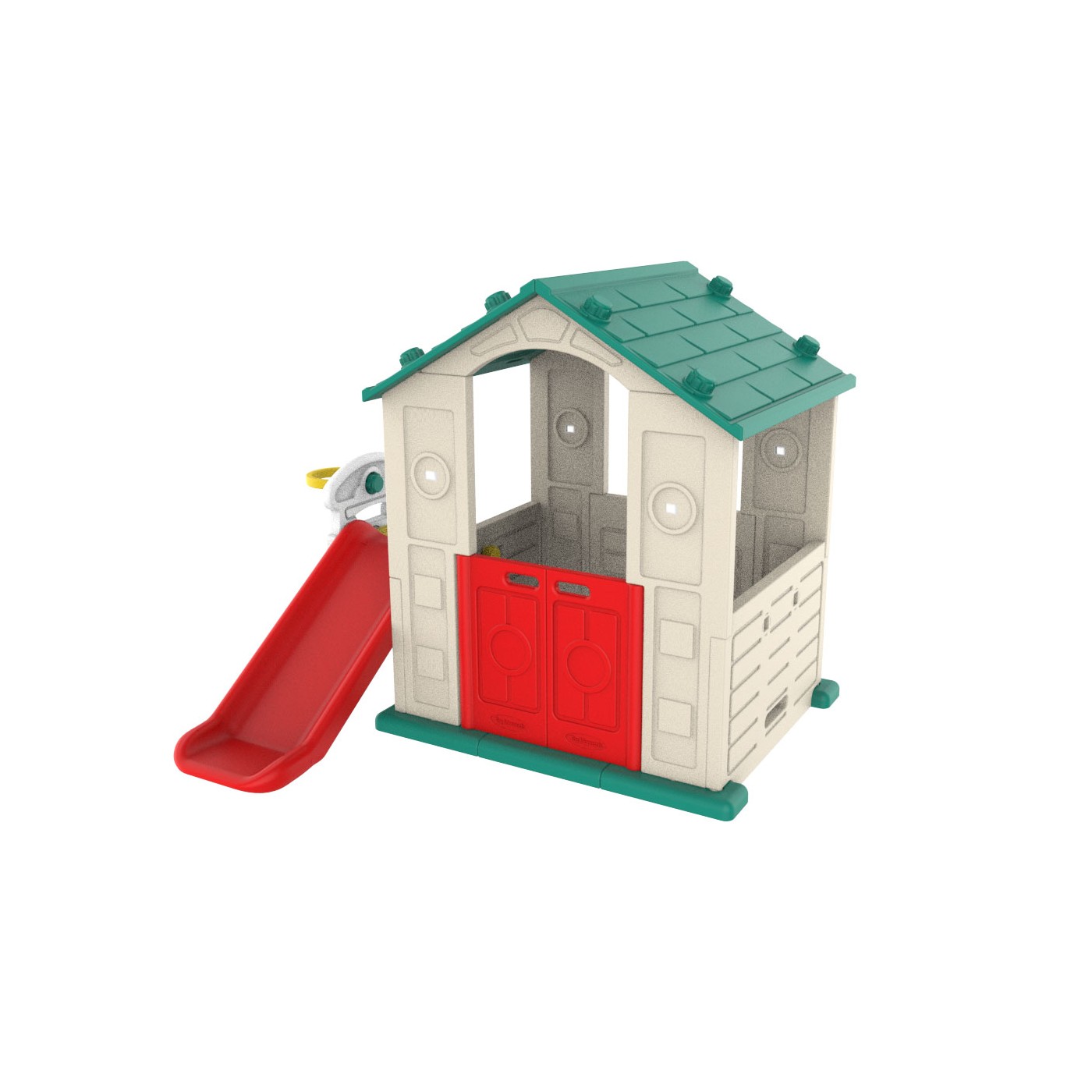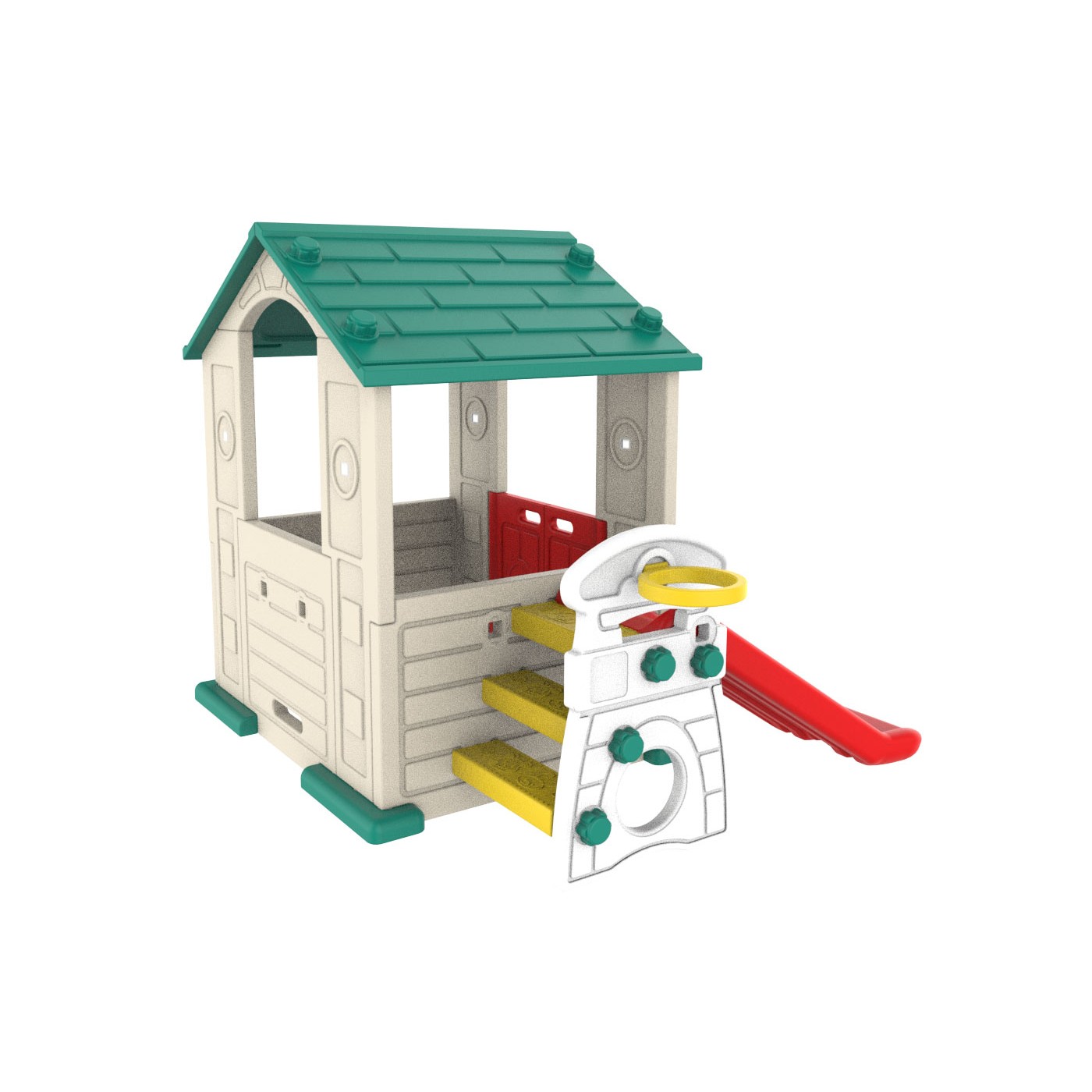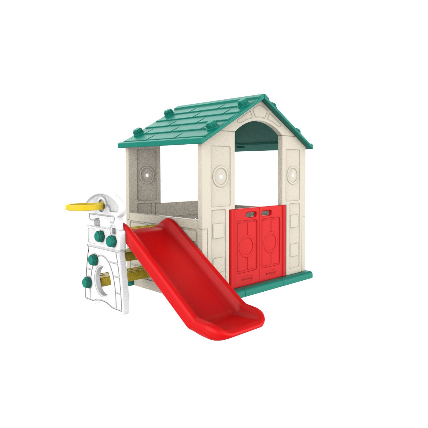 Záhradný domček 3v1 pre deti Zelená strecha + šmykľavka + basketbal