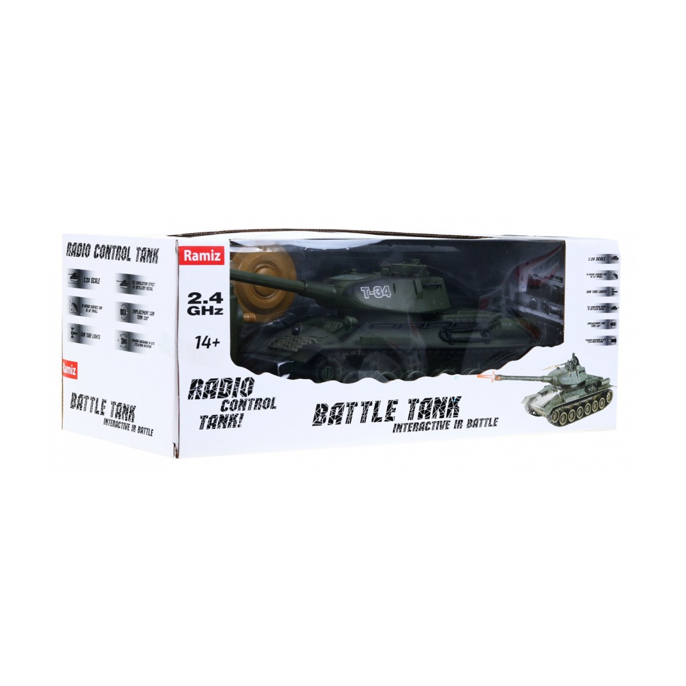 | Specyfikacja | - zasięg do ok. 40 metrów, - czas ładowania ok. 4 godziny, - maksymalna prędkość poruszania do ok. 6 km/h, - czołg może obracać się o 360 stopni, dodatkowo wieżyczka sterowana z pilota obraca się maksymalnie o 320 stopni. - lufa, która umieszczona jest w górnej części czołgu, porusza się w górę i w dół. |
