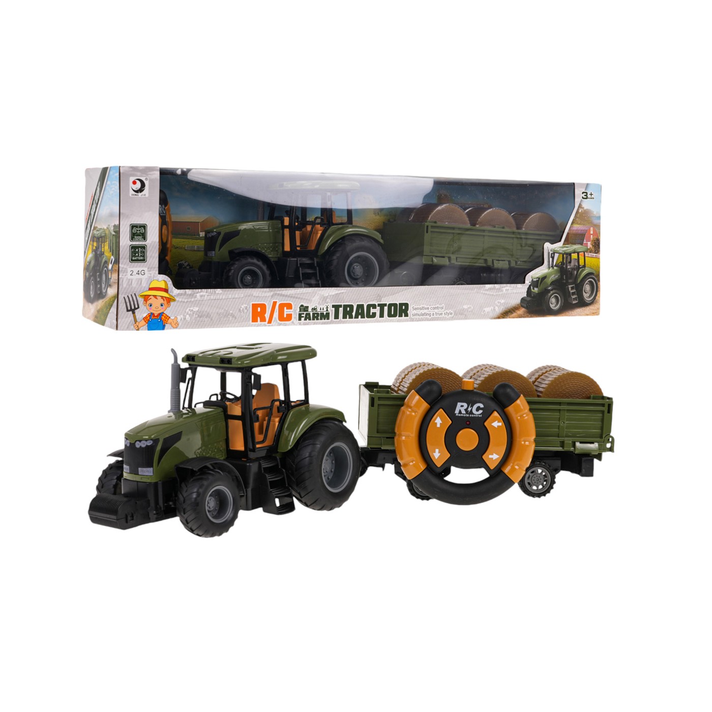 Traktor na diaľkové ovládanie pre deti od 3 rokov. Traktor je vyrobený z najkvalitnejšieho plastu, má gumené kolesá s dezénom a odnímateľný príves. Pohybuje sa všetkými smermi, dopredu, dozadu, doprava a doľava. Realistický vzhľad a detaily podporujú hru. Traktor je napájaný 3 x AA 1,5 V batériami (nie sú súčasťou), diaľkové ovládanie je napájané 2 x AA 1,5 V batériami (nie sú súčasťou).