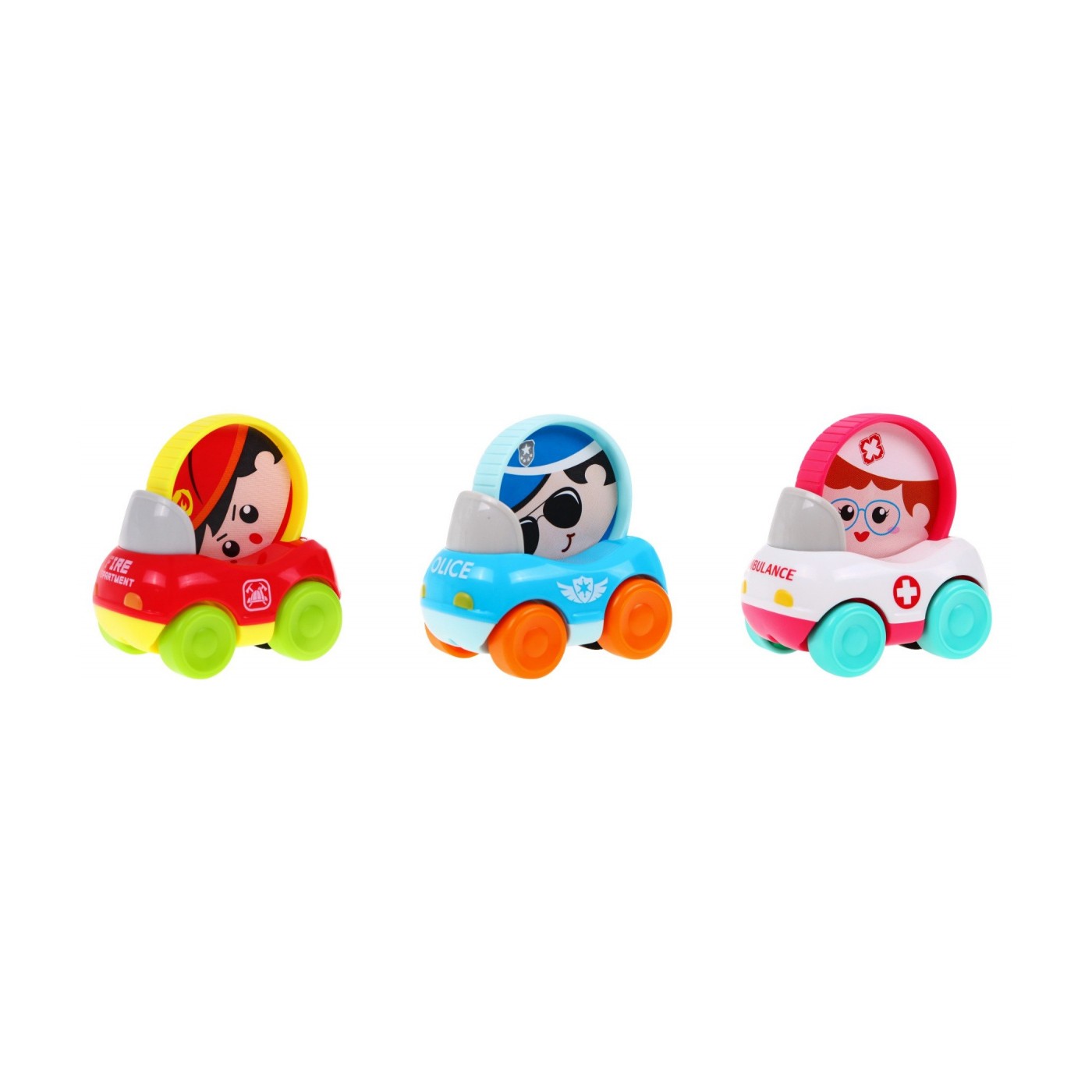 | Specyfikacja | Zestaw 3 kolorowych uprzywilejowanych pojazdów STRAŻ, KARETKA, POLICJA |