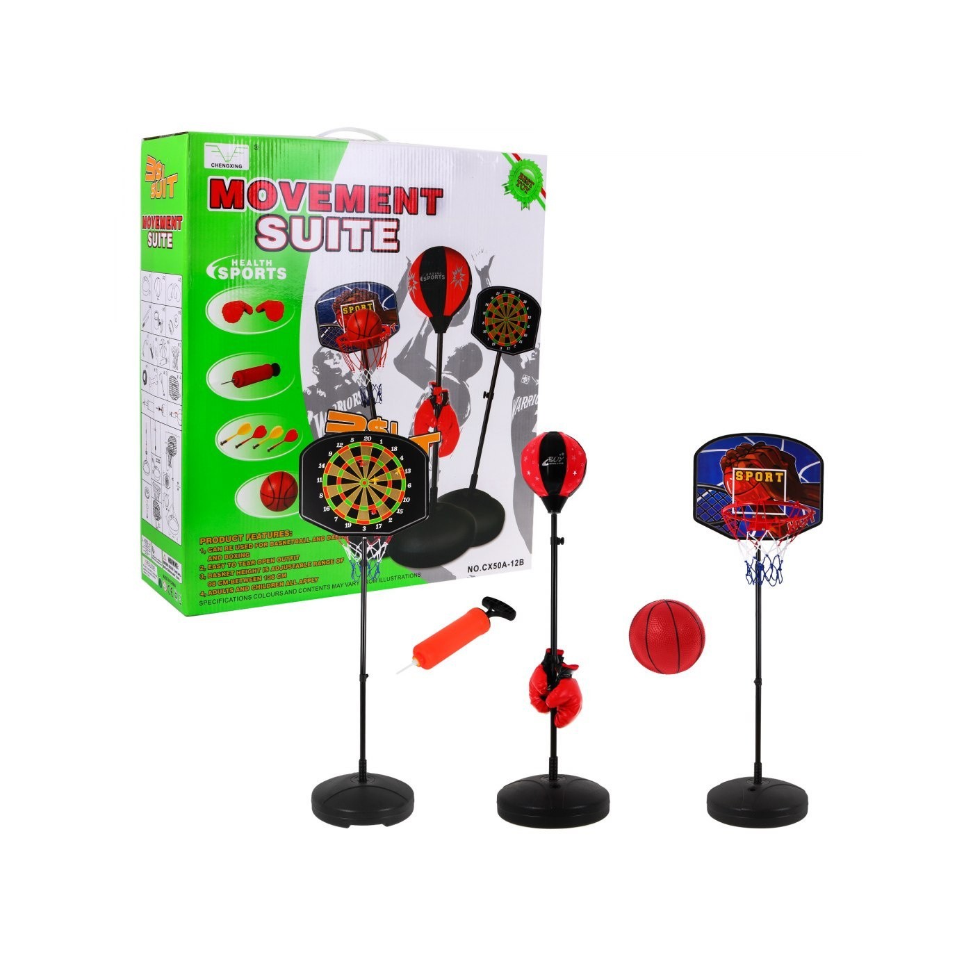 | Opis | ZESTAW 3W1 BOKS, DART, KOSZYKÓWKA (CX50A-12B) |