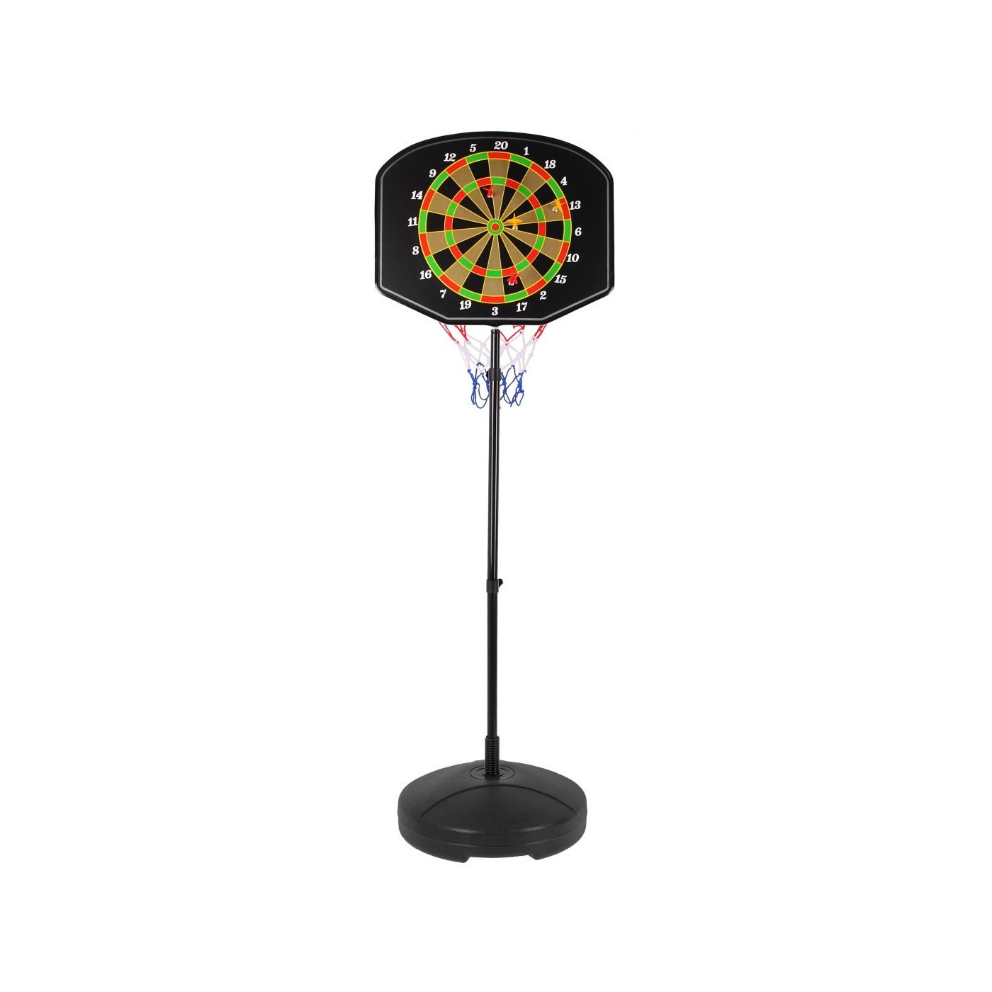 | - tablica do koszykówki z obręczą i siatką, - piłka do koszykówki, - pompka do pompowania piłki i gruszki do boksu, - tarcza do gry w dart, - 4 lotki magnetyczne, - gruszka bokserska, - stojak z podstawą i niezbędnymi śrubkami, - rękawice bokserskie. | |