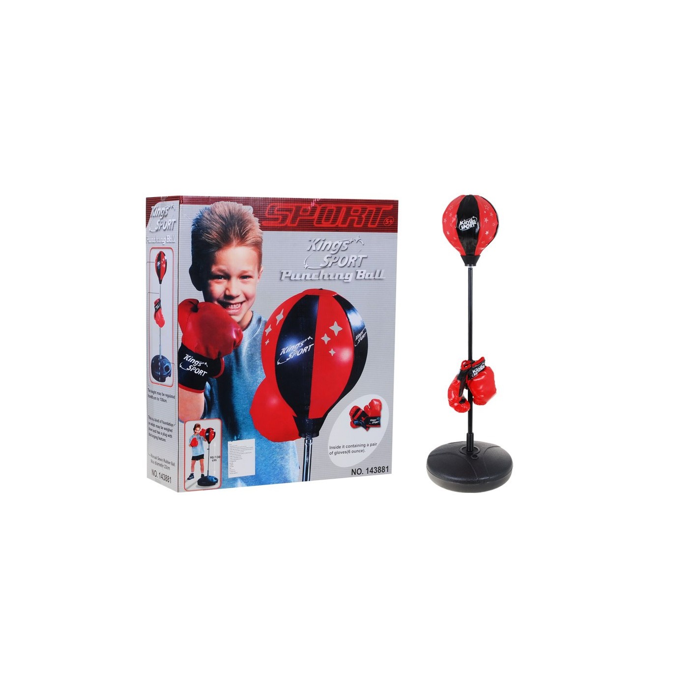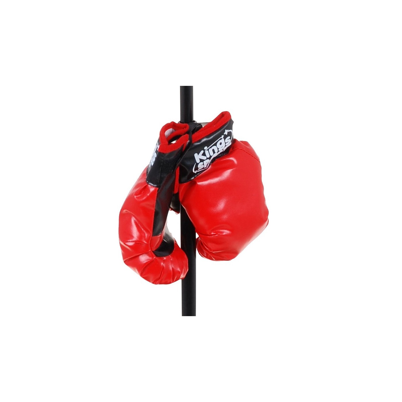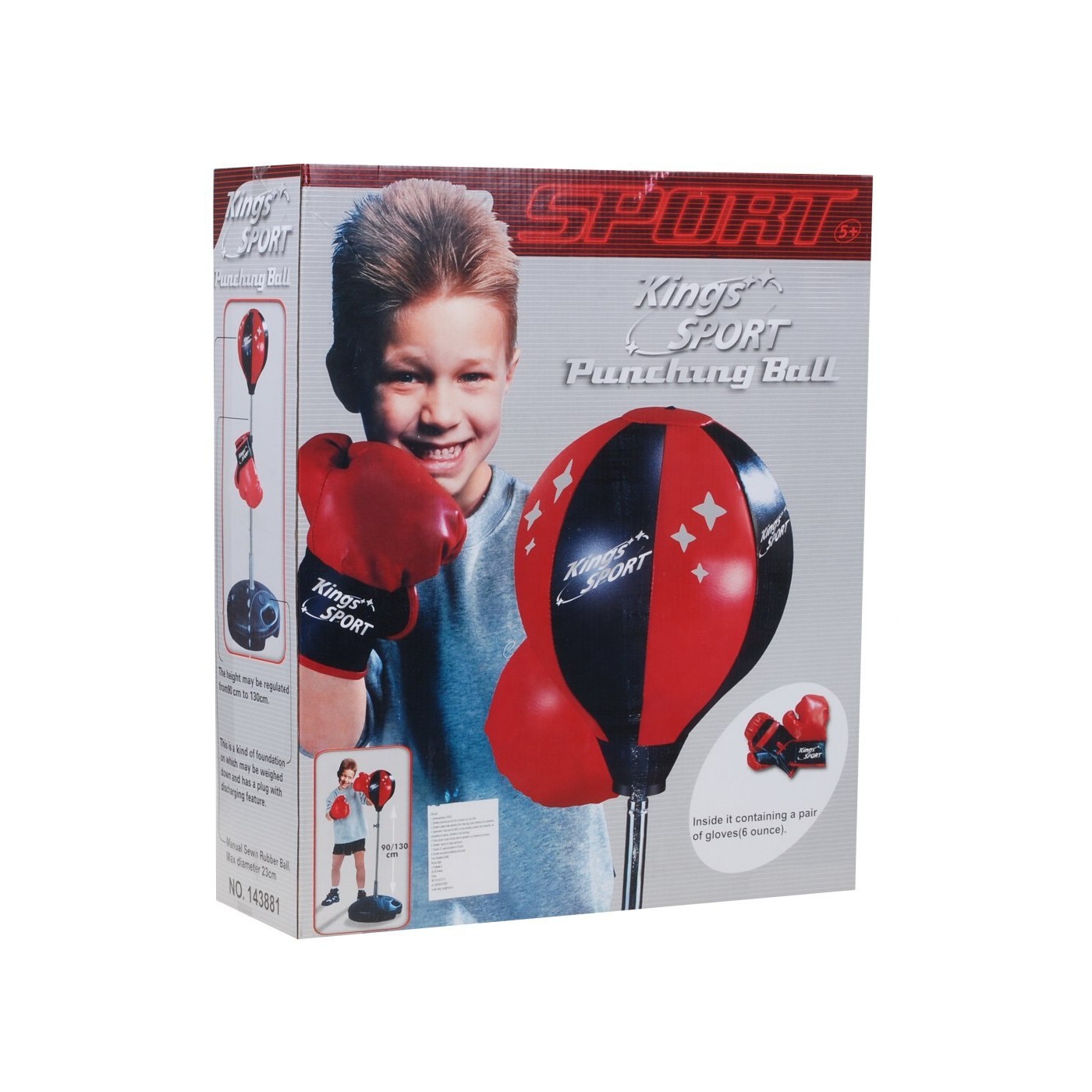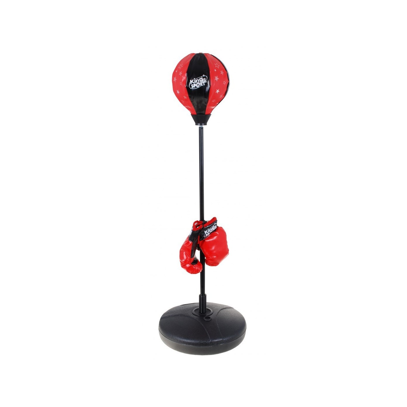| Znakomicie sprawdza się podczas zabaw sprawnościowych na salach gimnastycznych, jak i na świeżym powietrzu. W skład zestawu treningowego do boksowania wchodzi gruszka bokserska na sprężynie, stelaż z możliwością regulacji wysokości oraz rękawice bokserskie. Gruszka jest umocowana na metalowym wysięgniku z możliwością regulacji w zakresie 90 – 115 cm wysokości. Dodatkowo podstawę można wypełnić wodą lub piaskiem. Podstawa ma średnicę ok. 36 cm. Dołączone do zestawu rękawice są w rozmiarze uniwersalnym, pasujące na dziecięcą rękę, dodatkowo zapinane rzepami. Zewnętrzna część rękawic została dodatkowo wzmocniona, aby zapewnić jak najlepszą amortyzację. Gruszka do boksowania jest pompowana. Wymiary pudełka ok. 48 cm x 41 cm x 13 cm. | |