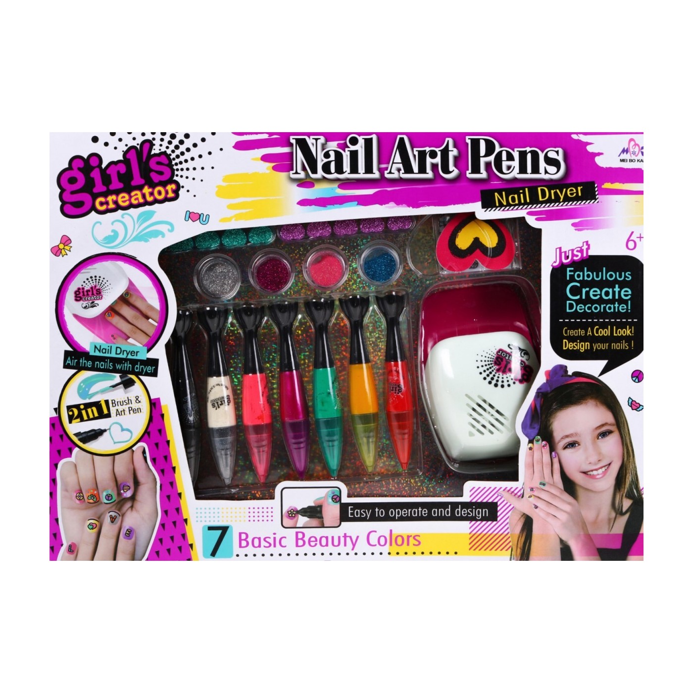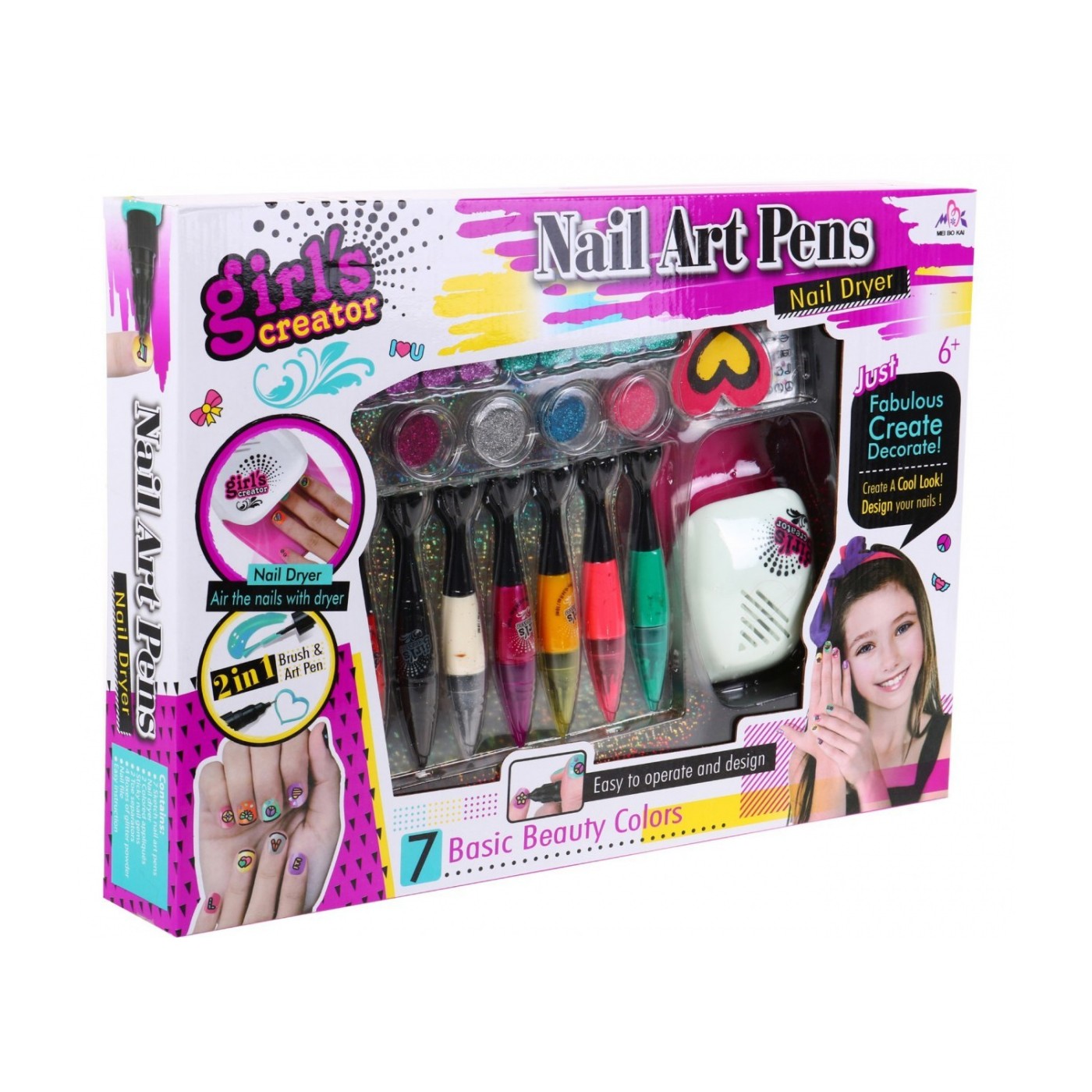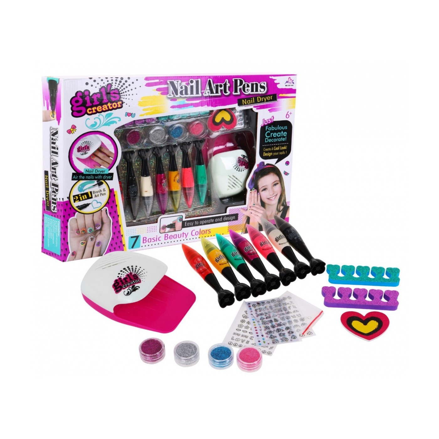 Súprava na robienie úpravu nechtov pre dievčatá 6+ Sušička + fixky na maľovanie + príslušenstvo