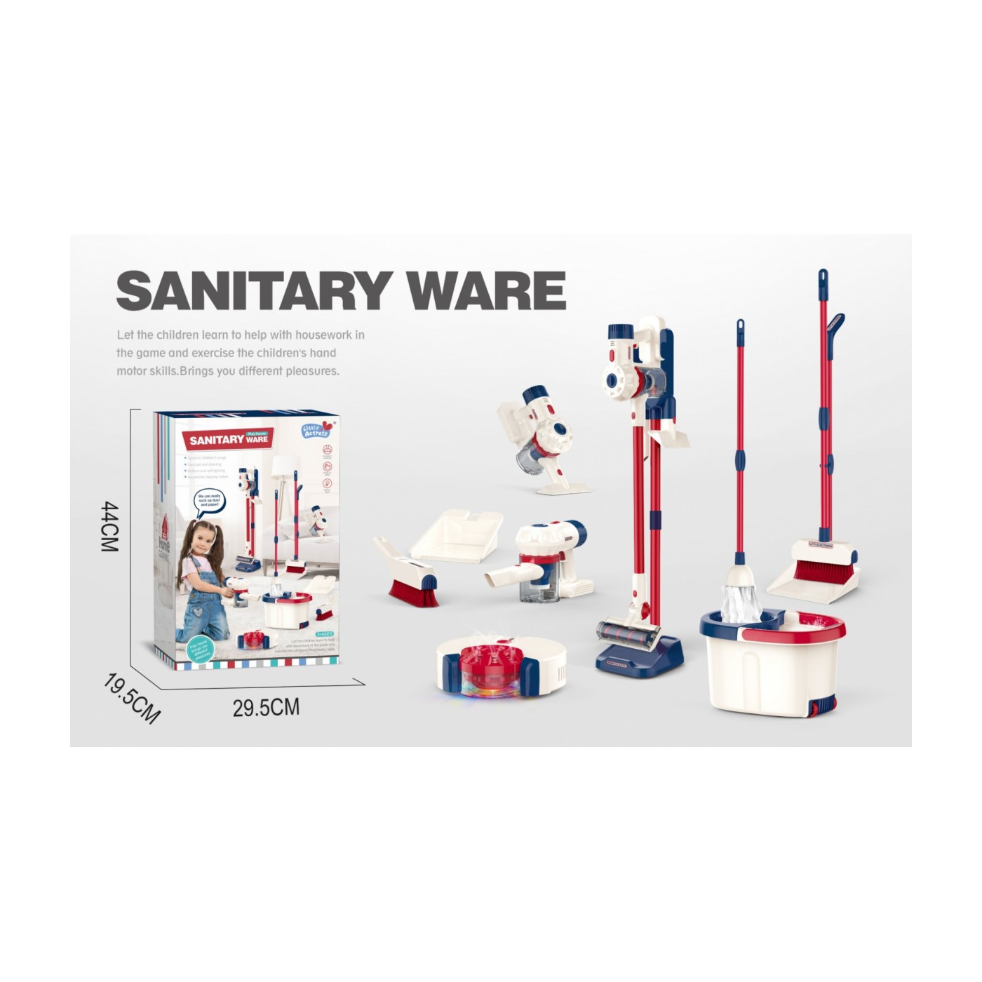Sada na upratovanie 6v1 pre deti 3+ Interaktívne AGD vysávač robot mop metla lopatky