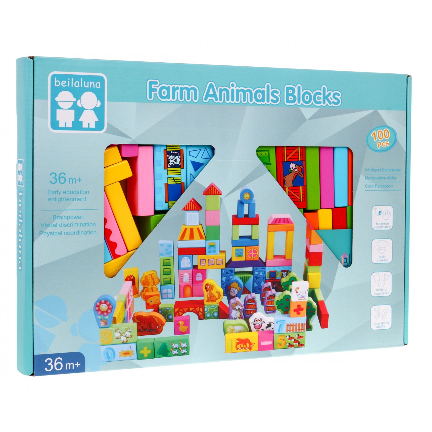 Sada drevených kociek "Hospodárstvo" pre deti 3+ Hra na stavbu 100 ks.