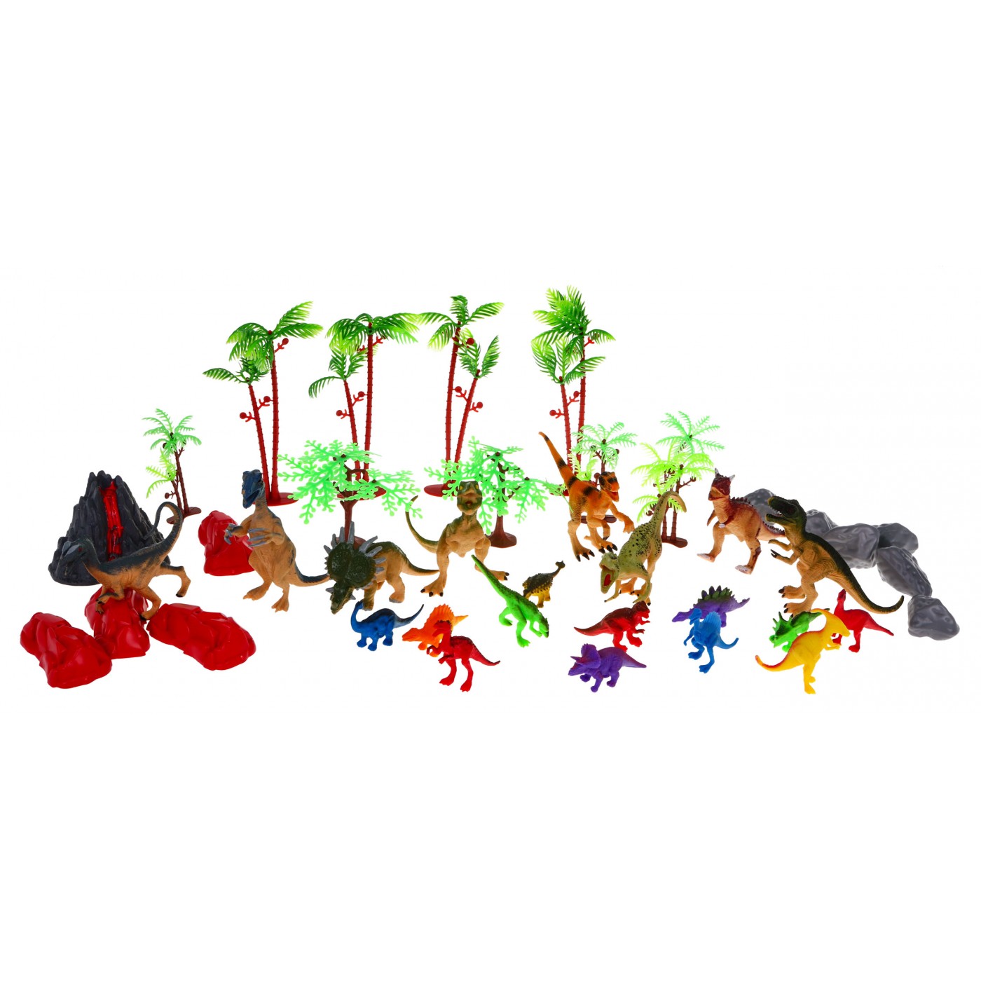 | | - 20 gumowych figurek dinozaurów różnej wielkości, - 10 drzewek różnej wielkości, - 4 skały, - 6 kamieni, - wulkan, - filcowa mata z parkiem rozrywki, - duża głowa dinozaura. |