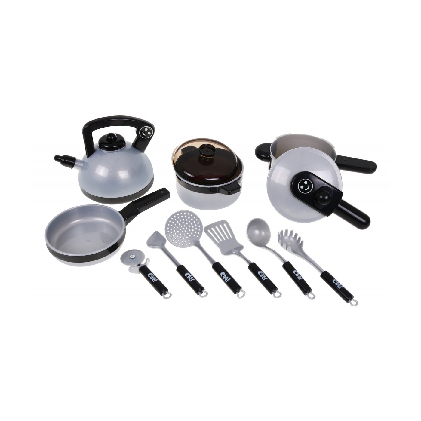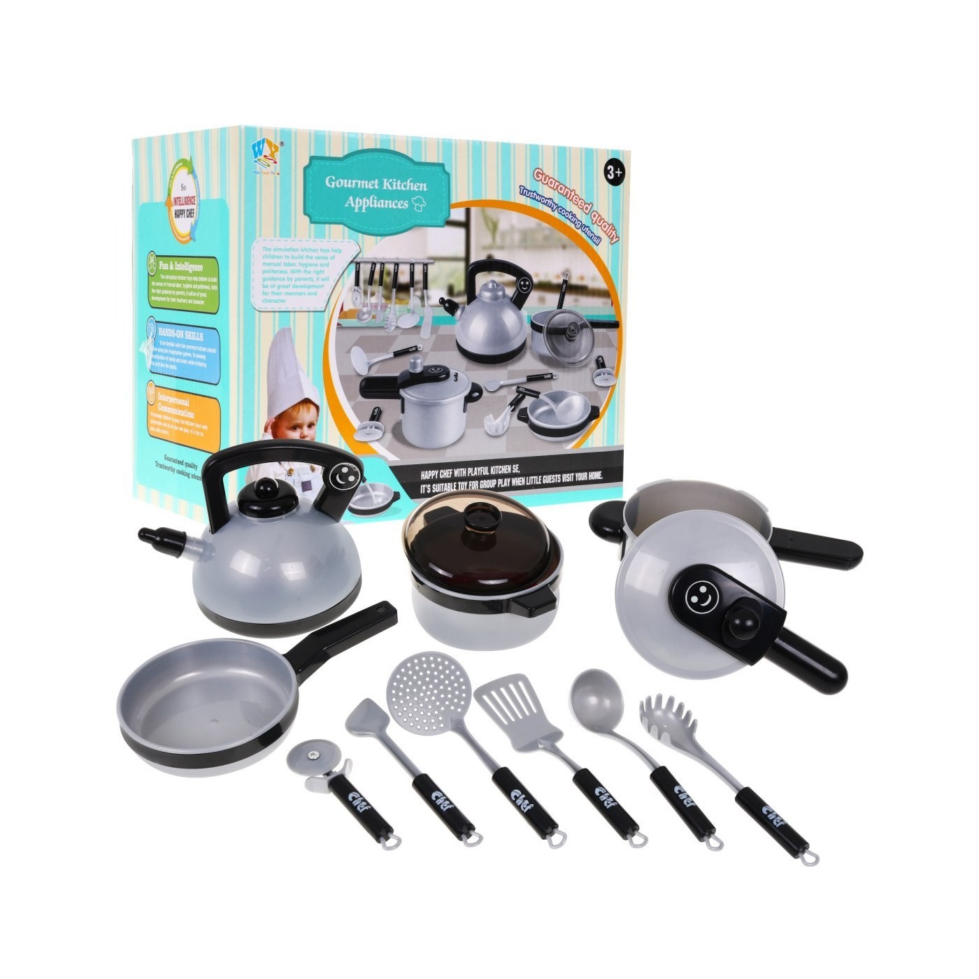 | - czajnik ok. 19 cm x 6 cm, - szybkowar ok. 23 cm x 13 cm, - garnek ok. 16 cm x 6 cm, - patelnia ok. 21,5 cm x 5 cm, - pokrywka do patelni lub garnka ok. 13 cm x 3 cm, - nóż do pizzy ok. 12 cm x 4 cm, - chochelka ok. 16,5 cm x 5 cm, - łopatka ok. 18 cm x 4,5 cm, - cedzak ok. 18 cm x 6 cm, - łyżka z otworami ok. 17,5 cm x 3,5 cm, - łyżka ozdobna ok. 17 cm x 3 cm. Wymiary opakowania ok. 22 cm x 15 cm x 27 cm |