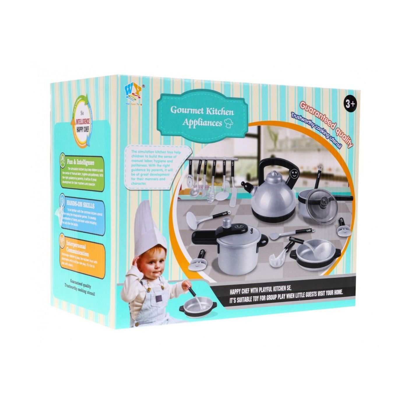 | Niesamowity zestaw garnków dla małych kucharzy. W zestawie znajduje się 11 elementów, garnki i akcesoria kuchenne. Produkt rozwija wyobraźnię i zdolności manualne, zapewnia wielogodzinną radosną zabawę. Zabawka przeznaczona jest dla dzieci powyżej 3- go roku życia. | |
