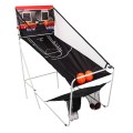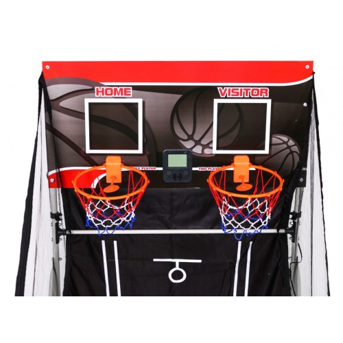 | Tryb pierwszy Tryb dla jednej osoby, gracz musi zdobywać punkty tylko na obręczy Home (Gospodarza). Punkty są liczone podwójnie za każdy szczał, maksymalny wynik 100 punktów, czas w tym trybie jest nieograniczony. Tryb drugi Tryb dla jednej osoby, gracz musi zdobywać punkty na obręczy Gospodarza lub VISITOR (Gość). Punkty są liczone podwójnie za każdy szczał, maksymalny wynik 100 punktów, czas w tym trybie jest nieograniczony. Tryb trzeci Tryb dla jednej osoby, gracz musi zdobywać punkty na obręczy Gospodarza i Gościa naprzemiennie. Punkty są liczone podwójnie za każdy szczał, maksymalny wynik 100 punktów, czas w tym trybie jest nieograniczony. Tryb czwarty Tryb dla dwóch graczy, każdy z graczy musi zdobywać punkty na własnej obręczy Gospodarz lub Gość. Punkty są liczone podwójnie za każdy strzał. Czas w tym trybie jest ustawiony na 1 minutę. Zwycięzcą zostaje gracz, który zdobędzie najwięcej punktów w ciągu 1 minuty na własnej obręczy. Tryb piąty Tryb dla dwóch graczy, każdy z graczy musi zdobywać punkty na własnej obręczy Gospodarz lub Gość. Punkty są liczone podwójnie za każdy strzał. Nie ma limitu czasu. Każdy z graczy zaczyna z 20 punktami i za każdy strzał we własną obręcz są odejmowane 2 punkty. Zwycięzcą zostaje gracz, który jako pierwszy dotrze do zera lub strzeli 10 strzałów. Tryb szósty (mecz) Tryb dla dwóch graczy, w meczu jest 20 gier, każda gra trwa 5 sekund. Każdy z graczy musi zdobyć punkty na własnej obręczy Gospodarz lub Gość. Gracz, który zdobędzie pierwsze punkty na własnej obręczy podczas każdej 5-sekundowej gry, otrzymuje 2 punkty. Tylko jeden wynik jest liczony na każde 5 sekund gry. Zwycięzcą zostaje gracz, który zdobędzie najwięcej punktów na koniec meczu. Tryb siódmy (mecz) Tryb dla dwóch graczy, w meczu jest 12 gier, każda trwa 5 sekund. Każdy z graczy musi zdobyć punkty na własnej obręczy Gospodarz lub Gość. W grach 1-3 i 7-9 gracz, który jako pierwszy zdobędzie własną bramkę, otrzymuje 2 punkty. Tylko jeden wynik jest liczony na mecz. W grach 4-6 i 10-12 gracz, który jako pierwszy zdobędzie własną bramkę, otrzymuje 3 punkty. Tylko jeden wynik jest liczony na mecz. Zwycięzcą zostaje gracz, który zdobędzie najwięcej punktów na koniec 12 meczu. Tryb ósmy Tryb dla dwóch graczy, 10 punktów w 99 sekund. Limit czasu wynosi 99 sekund. Maksymalny wynik to 10 punktów. Każdy gracz zdobywa 2 punkty na obręczy Gospodarza lub Gościa. Pierwszy gracz gra, dopóki nie zostanie zdobytych 10 punktów lub nie upłynie 99 sekund, a następnie drugi gracz rozpoczyna grę. Gracz, który zdobył jak najszybciej 10 punktów, jest zwycięzcą. | |