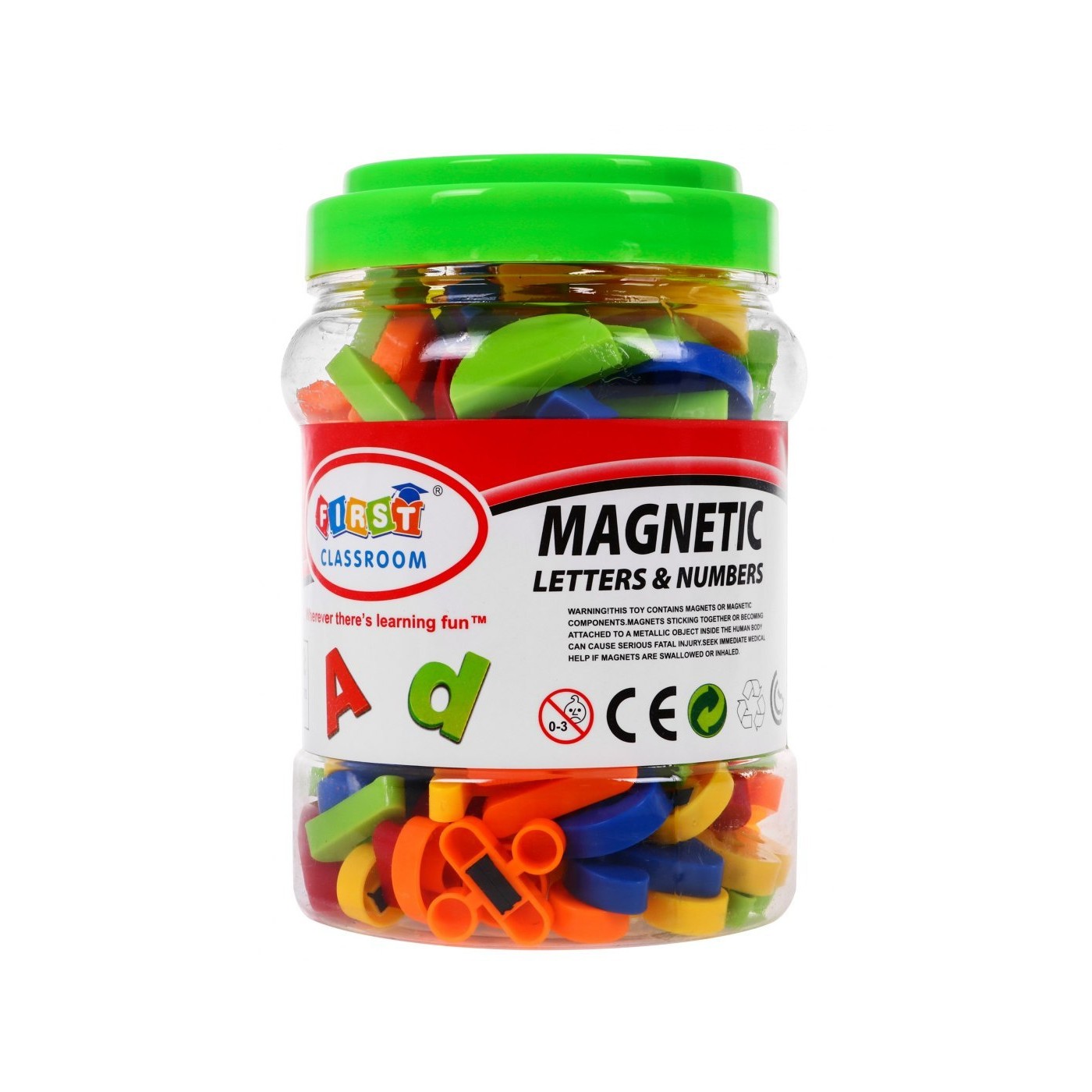 | W poręcznym słoiczku z uchwytem mieści się 128 elementów. Znajdziemy tu wielobarwne literki, cyferki, figury geometryczne oraz symbole matematyczne. Zestaw jest znakomitym przykładem niezwykłej zabawy edukacyjnej. Różnokolorowe elementy znakomicie uatrakcyjnią zabawę, a wiadomo, że dzieci najszybciej uczą się w trakcie miło spędzonych chwil. Niech wyobraźnia podpowie Wam, co tym razem chcecie stworzyć. Prezentowany zestaw to idealny dodatek do wszelkiego rodzaju tablic magnetycznych, w których prawie zawsze brakuje literek do ułożenia słowa czy zdania. Zestaw zaprojektowano w ten sposób aby pobudzać rozwój dziecka na kilku płaszczyznach równocześnie. Ta wielofunkcyjna zabawka jednocześnie rozwija wyobraźnię, koncentrację i koordynację ruchową malucha. Poprzez zabawę maluch uczy się logicznego myślenia, rozpoznawania kolorów i kształtów. Ćwiczy zdolności manualne, uczy się łączenia kolorów, poznaje litery, cyfry oraz symbole matematyczne. W prosty sposób można też uczyć dziecka prostych działań matematycznych. Z prezentowanych figur geometrycznych można ułożyć przeróżne postacie, domki czy buźki. Każdy klocek posiada magnes, dzięki czemu można przyczepić go większość metalowych płaszczyzn, zwłaszcza do tablic magnetycznych. Poszczególne figury mogą służyć jako magnes, np. do przyczepienia na lodówkę. | |