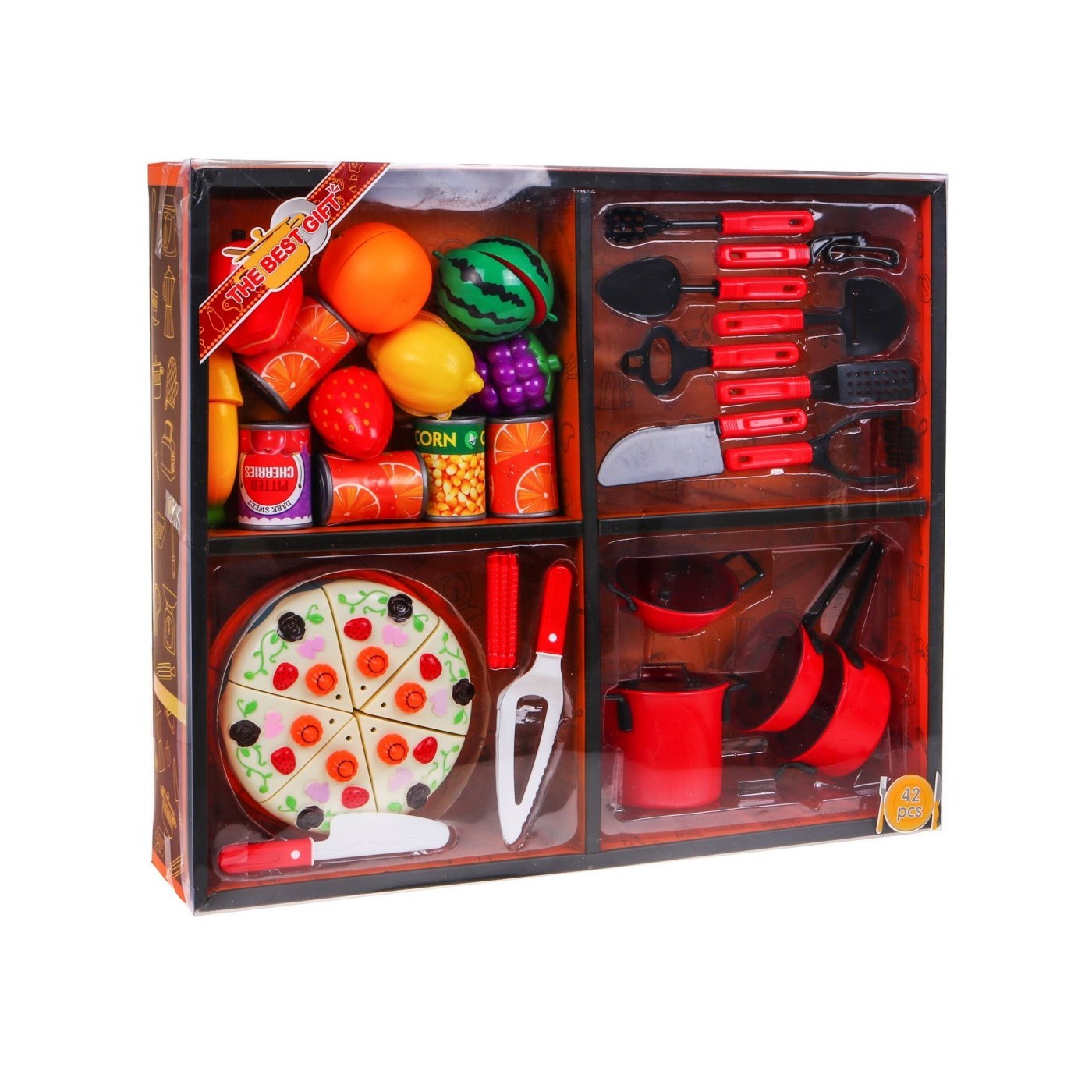 | - duży garnek z pokrywką ok. 8 cm x 12 cm, - garnek z pokrywką ok. 17 cm x 4 cm, - garnek z pokrywką ok. 15 cm x 4 cm, - garnek z pokrywką ok. 11 cm x 4 cm - łyżka do mięsa ok. 13 cm x 2,5 cm, - tłuczek ok. 13 cm x 4,5 cm, - nóż, tasak ok. 14,5 cm x 3,5 cm, - nóż ok. 13,5 cm x 2,5 cm, - chochelka ok. 14 cm x 2,5 cm, - łyżka ozdobna ok. 14 cm x 3,5 cm, - łopatka ok. 13 cm x 5 cm, - łopatka do tortu ok. 17 cm x 4 cm, - obieraczka ok. 12 cm x 2 cm, - otwieracz ok. 12,5 cm x 4,5 cm, - 6 x świeczka do tortu ok. 6,5 cm x 0,5 cm, - tort na rzepy ok. 15 cm x 5 cm, - 3 x puszka soku pomarańczowego ok. 5,5 cm x 4 cm, - puszka soku wiśniowego ok. 5,5 cm x 4 cm, - puszka kukurydzy ok. 5,5 cm x 4 cm, - winogrono na rzepy ok. 8 cm x 5 cm, - pomarańcza na rzepy ok. 6 cm x 7 cm, - banan na rzepy ok. 12 cm x 3 cm, - jabłko na rzepy ok. 6,5 cm x 6 cm, - cytryna na rzepy ok. 8 cm x 5 cm, - truskawka na rzepy ok. 7 cm x 5 cm, - arbuz na rzepy ok. 7 cm x 6,5 cm. | |