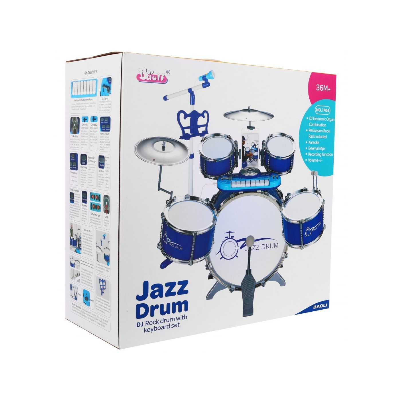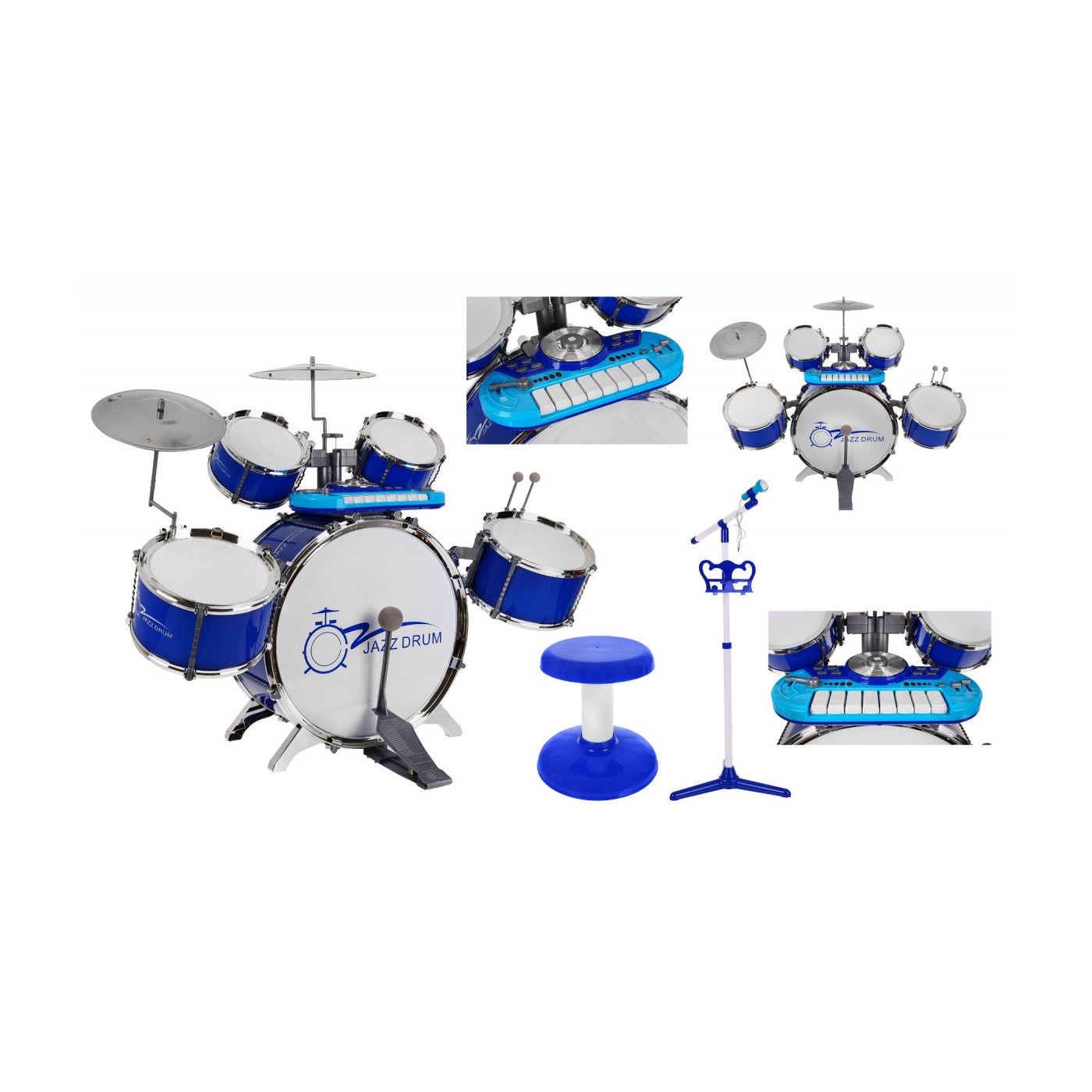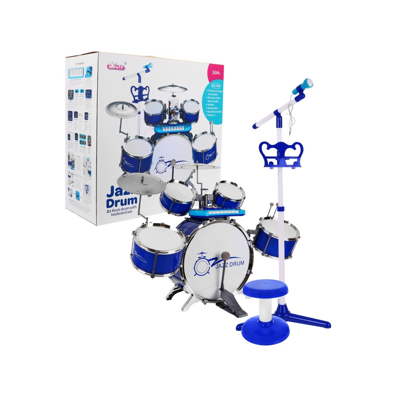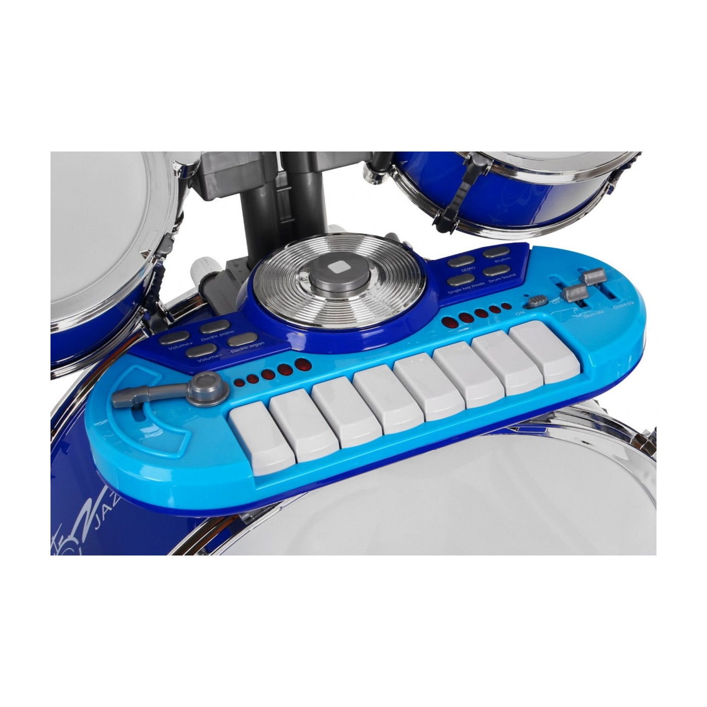 Hudobný súbor Bicie + Klávesnica + Mikrofón pre deti 3+ modrý Zvuky Svetlá