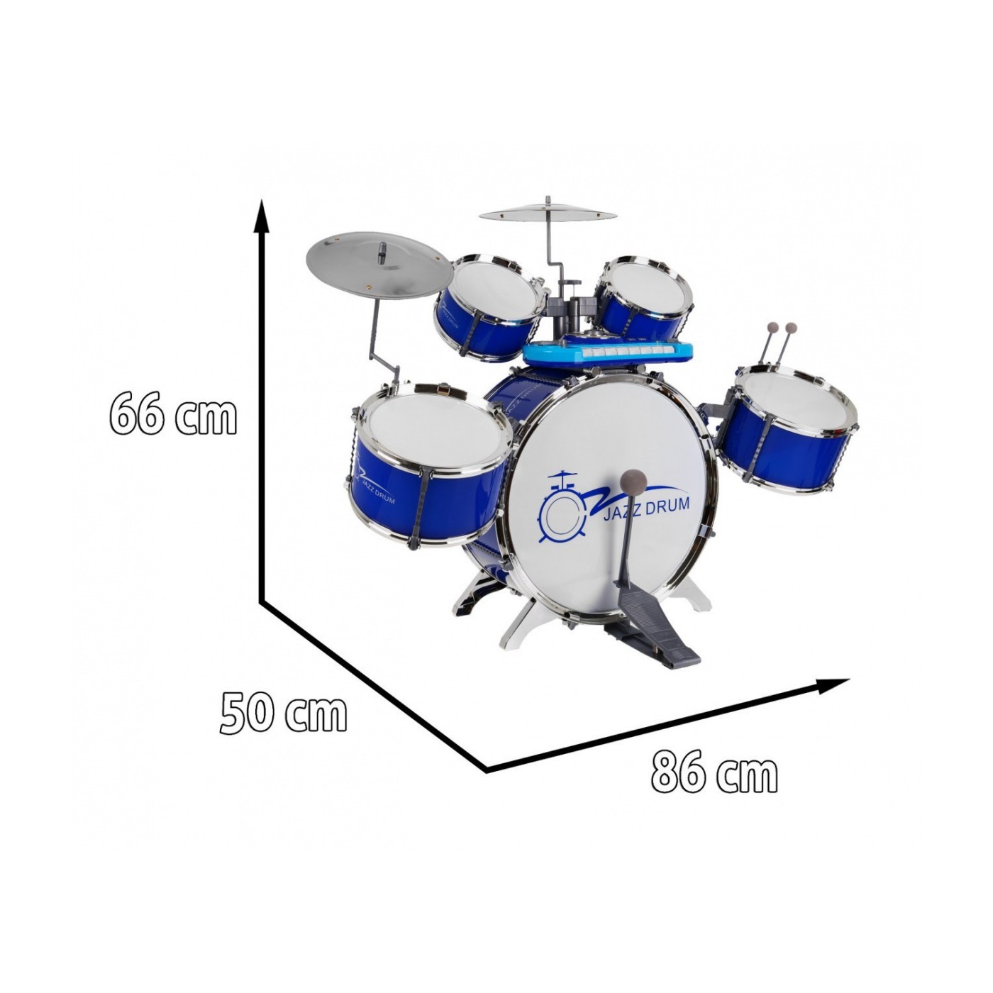 | Wymiary zestawu (perkusja + keyboard): - wysokość ok. 66 cm, - szerokość ok. 86 cm, - głębokość ok. 50 cm. Wymiary mikrofonu na stojaku: - wysokość ok. 108 cm, - szerokość ok.40 cm. Wymiary bębnów: - średnica dużego bębna ok. 37 cm, - średnica średniego bębna ok. 19 cm, - średnica małego bębna ok.15 cm. Wymiary stołeczka: - wysokość ok. 23 cm, - średnica podstawy ok. 23,5 cm, - średnica siedzenia ok. 20 cm. Wymiary opakowania: - wysokość ok. 53 cm, - szerokość ok. 53 cm, - głębokość ok. 24,5 cm. | |