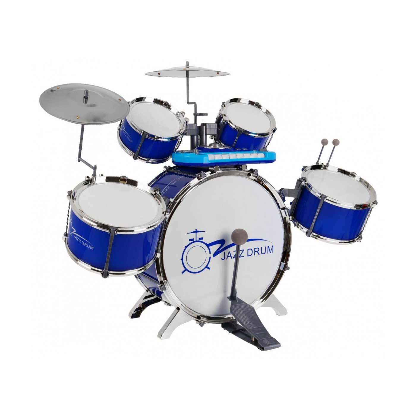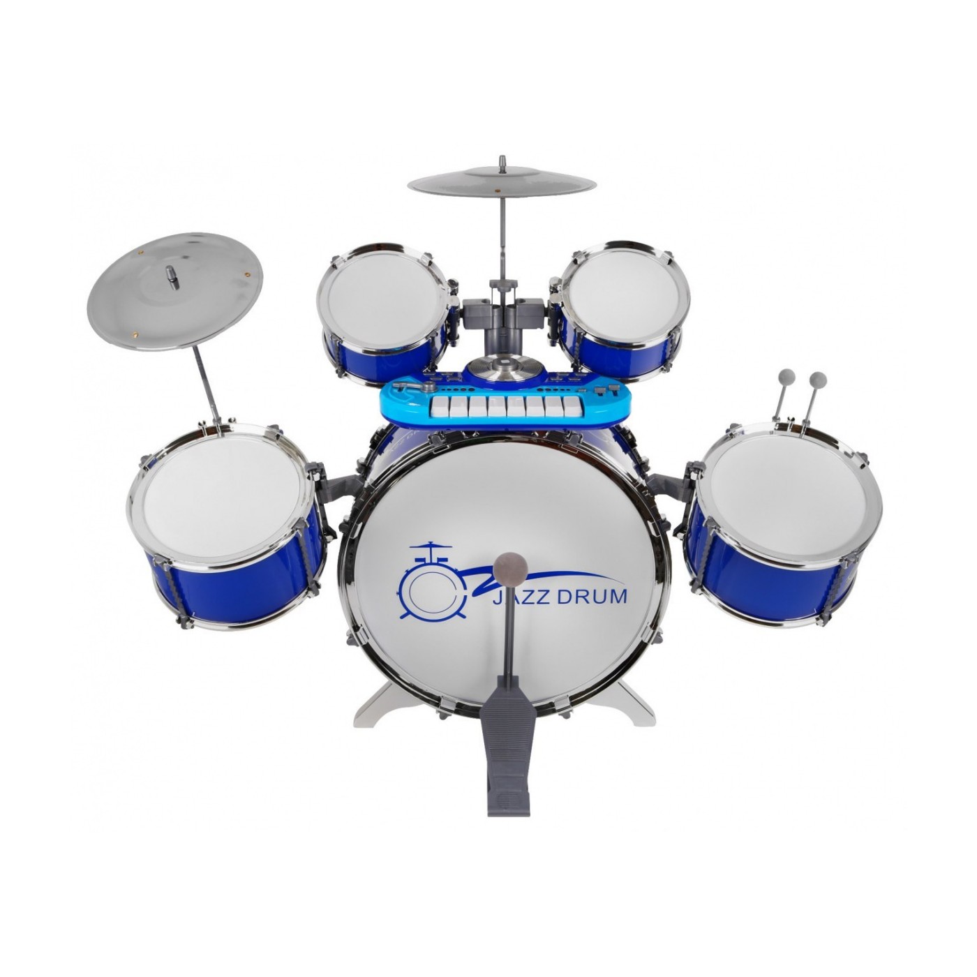 | | - 1 bęben duży z pedałem do uderzania, - 2 średnie bębny, - 2 małe bębny, - 2 pałeczki, - 2 x talerze, - keyboard z mixerem, - uchwyt na telefon, - mikrofon na stojaku z podstawką na nuty, - kabel MP3, - krzesło. |