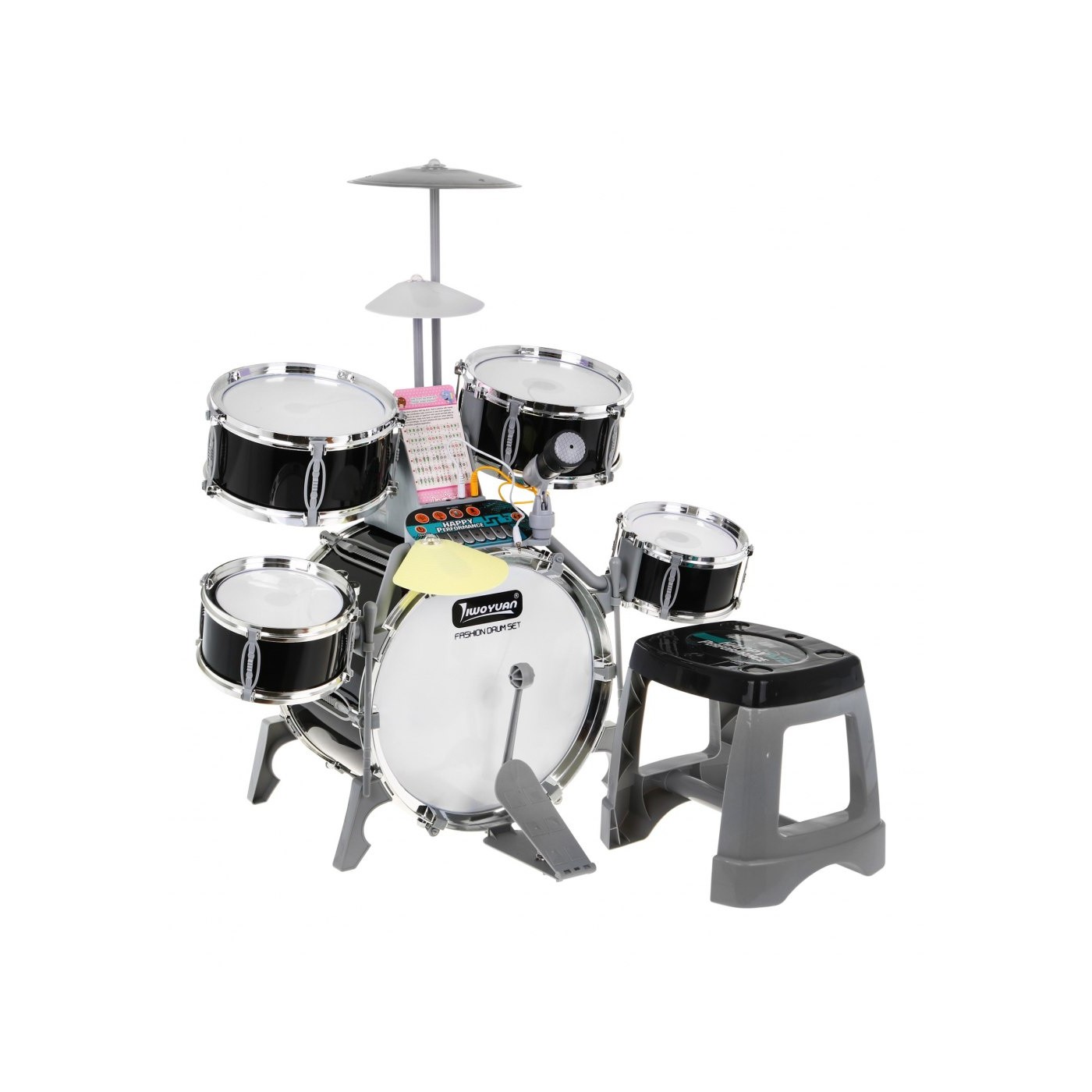 | Multifunkcyjna duża perkusja z profesjonalnym dźwiękiem i podświetlanymi bębnami to zabawka dla dzieci od 3 – go roku życia. Perkusja posiada 5 bębnów, 2 talerze elektroniczne (plastikowe) i jeden metalowy, panel sterujący, mikrofon, 2 pałki oraz 6 kart z nutami do nauki gry. W zestawie znajduje się również wygodny stołeczek. Ta rewelacyjna perkusja zasilana jest bateriami typu 3 x AA, ale może być również ładowana przez USB. Perkusja posiada efekty dźwiękowe i świetlne, widoczne podczas uderzania pałeczkami o bębny i talerze. W trybie połączenia perkusji z telefonem pojawiają się pulsujące rytmy oświetlenia bębnów i talerzy, aby Twoje dziecko, naśladując je nauczyło się grać na perkusji. Dzięki panelowi muzycznemu można podłączyć telefon lub słuchawki do perkusji, oraz dodać podkłady muzyczne. Prezentowana przez nas perkusja na pewno przypadnie do gustu każdemu młodemu perkusiście i zapewni mu mnóstwo frajdy. Funkcje perkusji: - pulsujące rytmy oświetlenia bębnów przy muzyce odtwarzanej z telefonu, - efekty świetlne i dźwiękowe podczas uderzania pałeczkami o bębny, - tryb podwójnego zasilania, - automatyczna funkcja oszczędzania energii, - dynamiczna melodia, - karaoke, - połączenie z telefonem, - wejście na słuchawki, - port ładowania ze wskaźnikiem ładowania, - regulacja głośności. | |