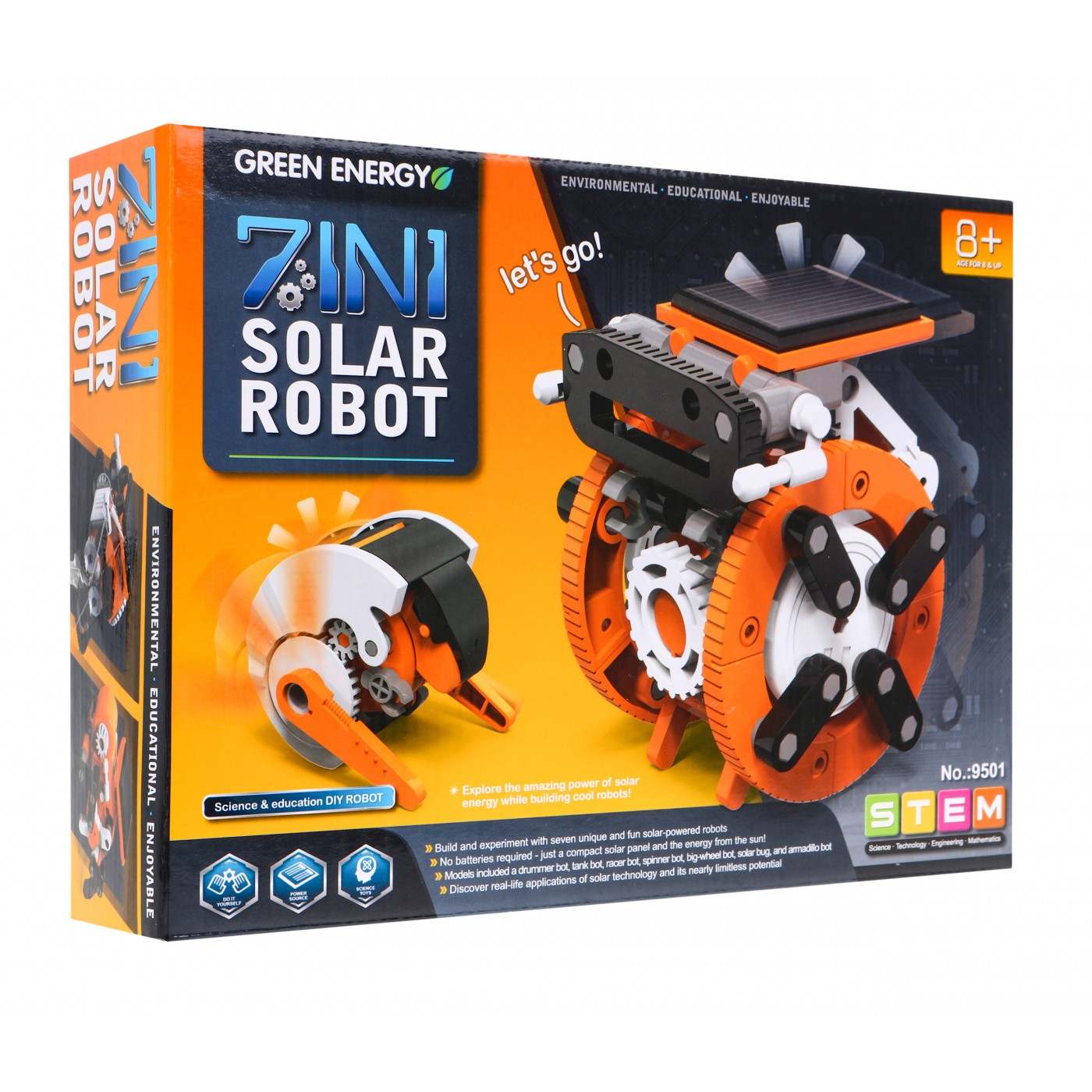 | Zestaw solarny 7w1 o tematyce budowlanej to propozycja dla dzieci od 8 – go roku życia. Z tym zestawem można zbudować 7 różnych pojazdów budowlanych zasilanych słońcem. Instrukcja zawiera wskazówki krok po kroku jak skonstruować każdego z robotów. Zestaw posiada panel słoneczny, która zbiera energię słoneczną w silnik z napędem elektrycznym, który napędza koła zębate, aby pojazd poruszał się. Zestaw rozwija zdolności manualne, ćwiczy logiczne myślenie, rozwija wyobraźnię. | |
