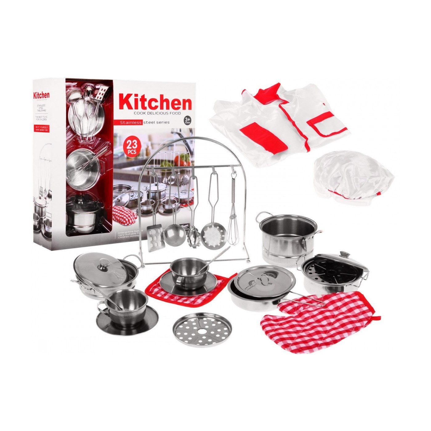 Šéfkuchárska sada pre deti 3+ Hrnce + Kuchynské náradie + Kuchársky odev + Príslušenstvo 23 ks.