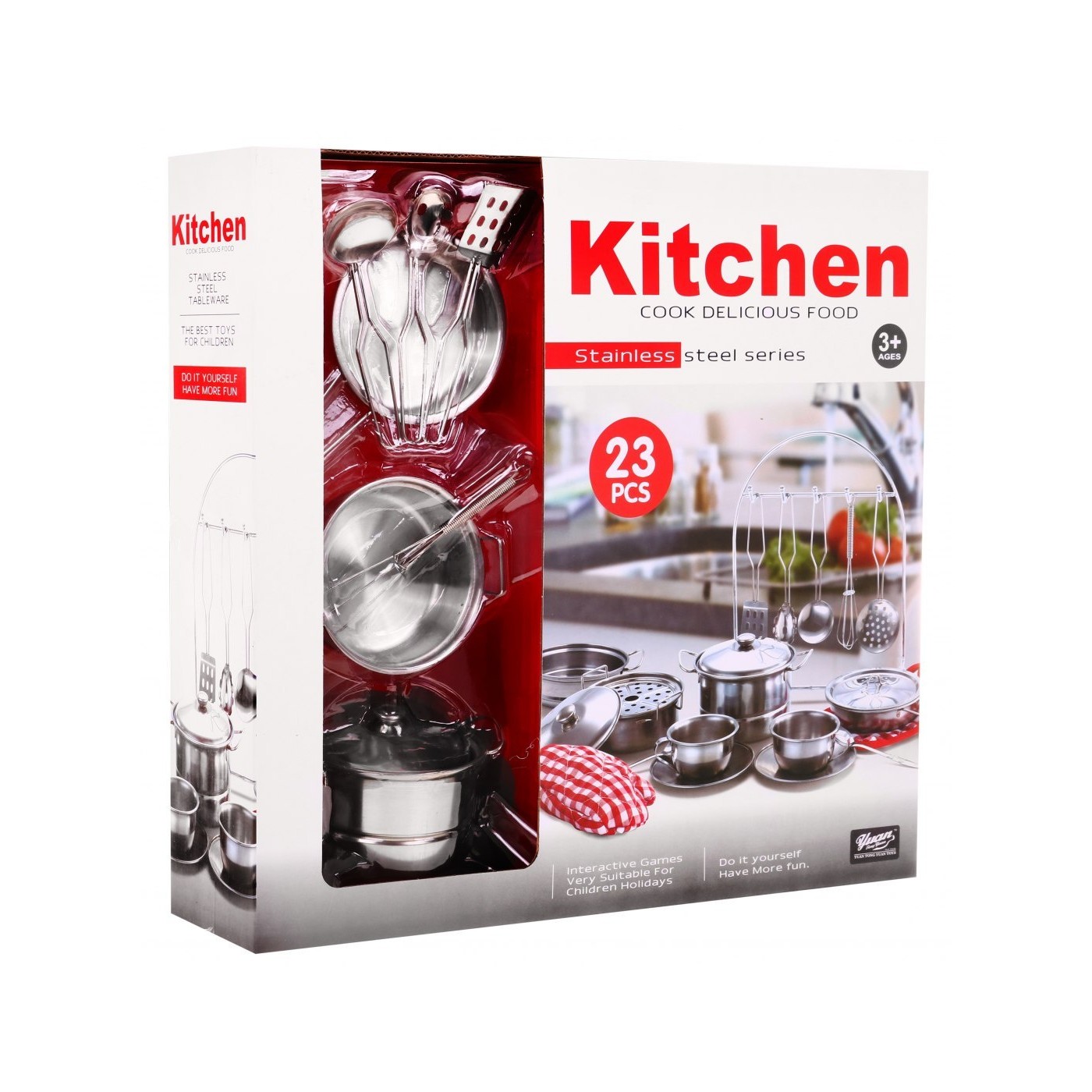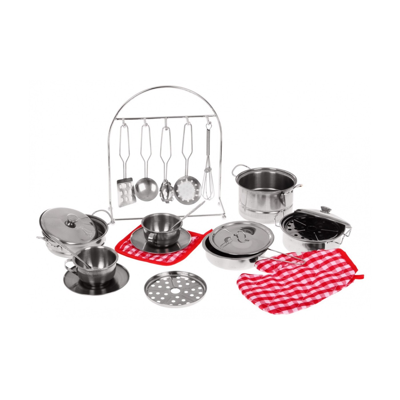 | | 23-elementowy zestaw wykonany z METALU. Dzieci uwielbiają podpatrywać otoczenie, dlatego też tak często bawią się w sklep, dom lub kuchnię. Odgrywają wówczas rozmaite role, wcielając się w różne postacie. Prezentowany zestaw kuchenny może stanowić doskonałe urozmaicenie takiej zabawy. |