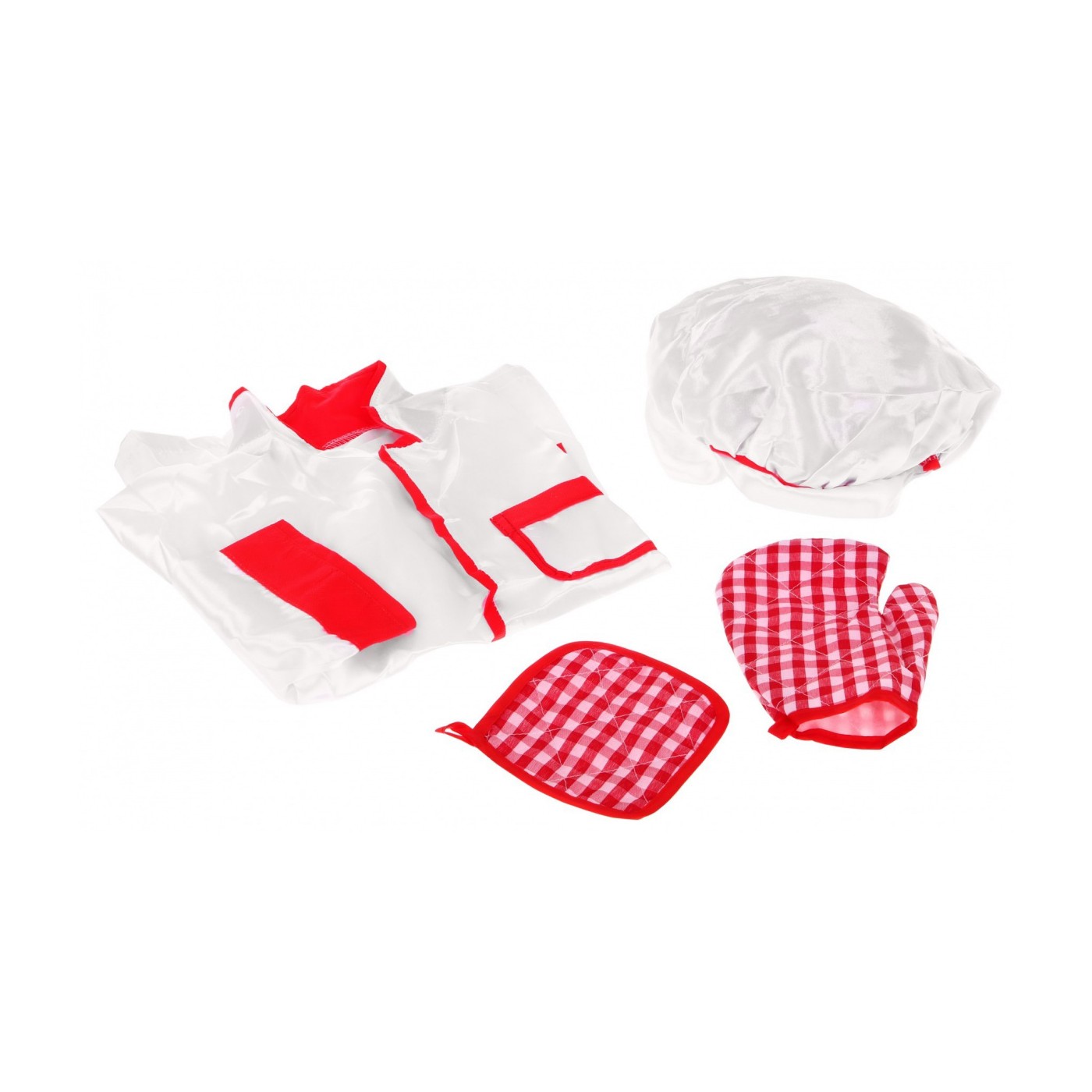 | - stojak na przybory kuchenne, - patka do smażenia, - chochelka, - cedzak, - podbierak do makaronu, - trzepaczka do ubijania, - duży garnek z pokrywką, - mniejszy garnek z pokrywką, - wok, - patelnia z pokrywką, - 2 kubeczki, - 2 talerzyki, - 2 łyżeczki, - 2 tacki – możliwość imitacji zdrowego gotowania na parze, - RĘKAWICA, - ŚCIERECZKA, - FARTUCH kuchenny Szefa Kuchni, - CZAPKA (czepek) Szefa Kuchni, | |