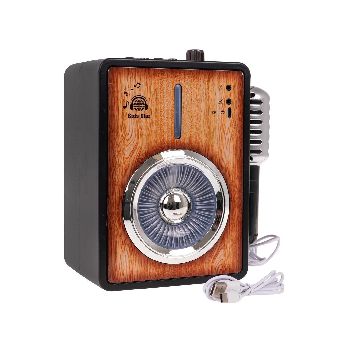 - vhodné pre deti od 3 rokov, - vyrobené z kvalitného materiálu, - mikrofón súčasťou balenia, - nabíjací vstup, - mikrofónový vstup, gitarový vstup, - 9 svetelných kompozícií, - 8 rockových skladieb, - 9 zvukových efektov, - 3 bubnové rytmy, - možnosť prepojenia zosilňovača s externým Bluetooth zariadením , - nahrávanie a prehrávanie zvuku. |