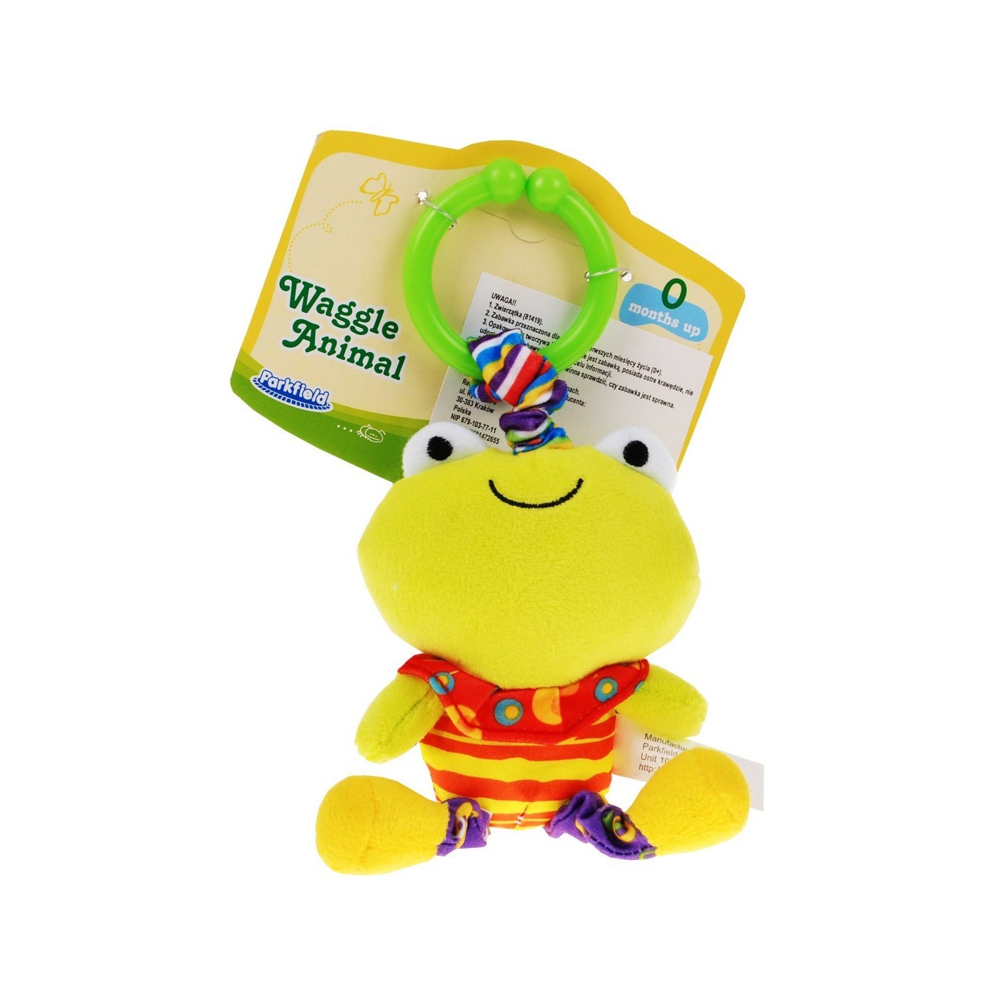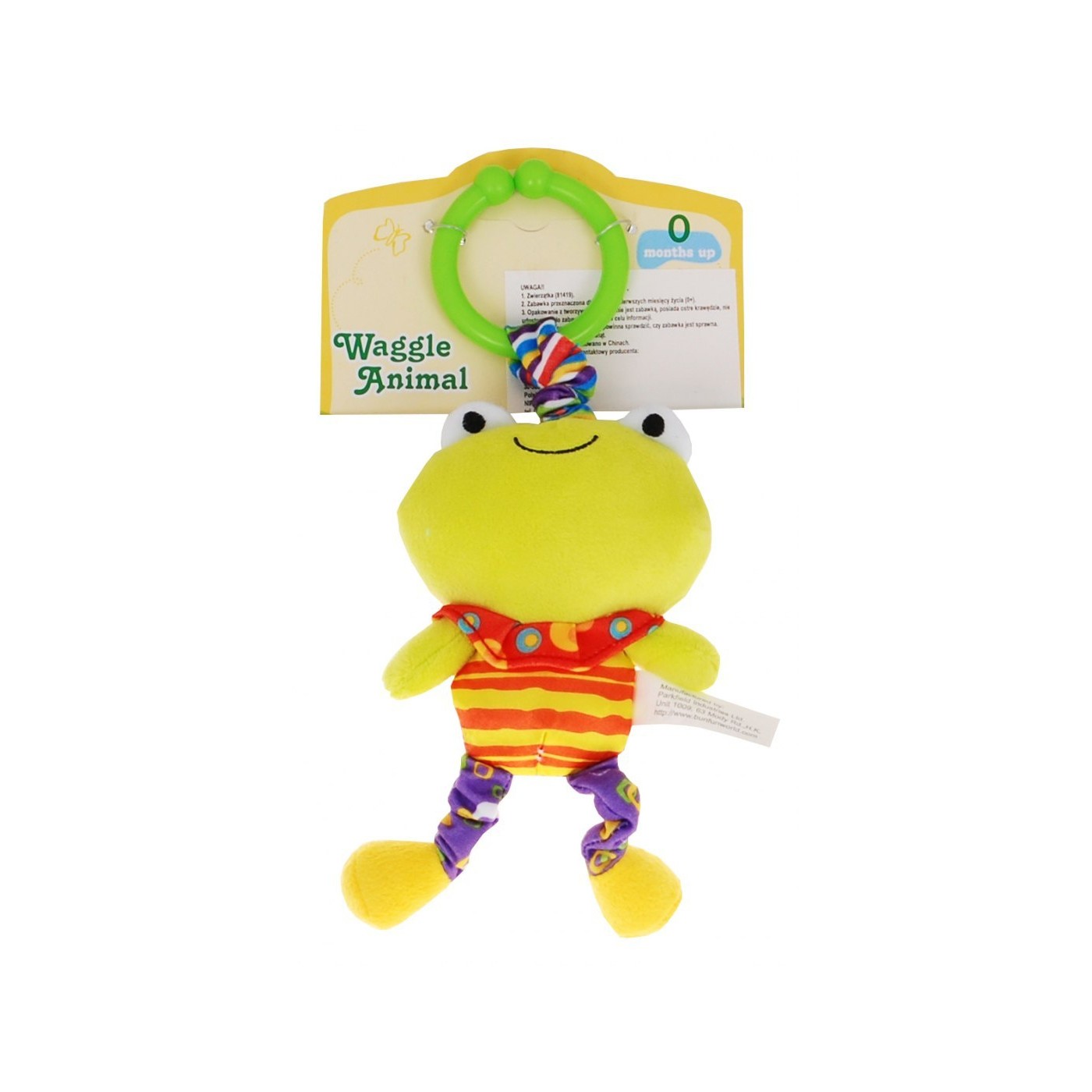 Zwierzątko, wykonane z wysokiej jakości materiału w pięknej żywej kolorystyce, przykuwa uwagę naszego szkraba.